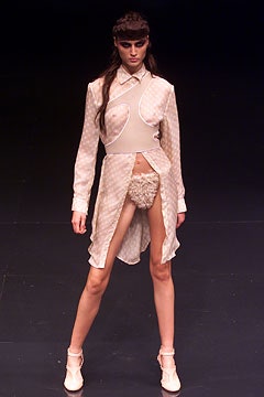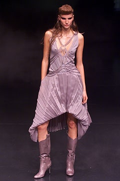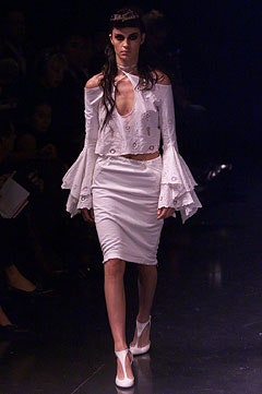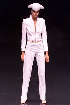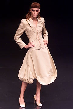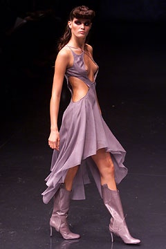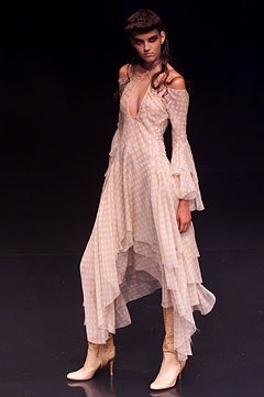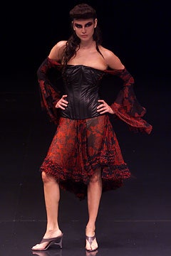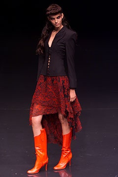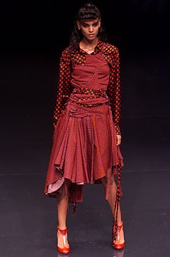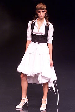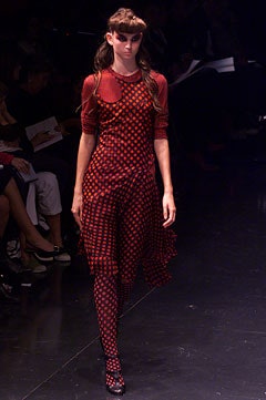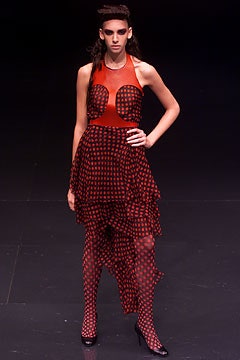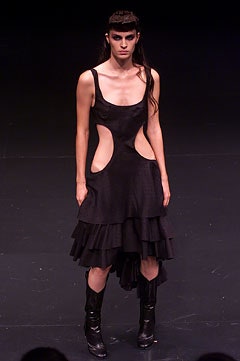Despite the spectacle, McQueen’s tailoring shone. Razor-sharp jackets paired with pleated skirts, corset-laced tops layered over crisp shirts, and polka-dot frocks cinched with holster-inspired straps highlighted his mastery of structure. The combination of deconstructed elements—like a blood-red señorita dress with an attached jacket—and wearable, well-crafted pieces proved McQueen’s commercial versatility.