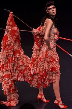 The Dance of the Twisted Bull, was a celebration of Spanish culture. Inspired by bullfighting and flamenco dancing, the show played on the tension between masculinity and femininity, a hallmark of McQueen’s work.