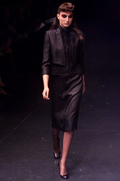 The runway was an ode to Spanish tradition, with scenes of bullfights projected on a screen and models wearing bicorn hats, matador jackets, and tiered flamenco skirts. Signature McQueen details—jewel-encrusted epaulettes, ruffles, and corsetry—brought drama to every look. One unforgettable dress, with banderillas supporting a dramatic train, exemplified McQueen’s flair for theatrical storytelling.