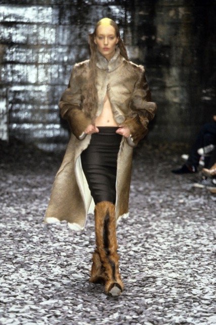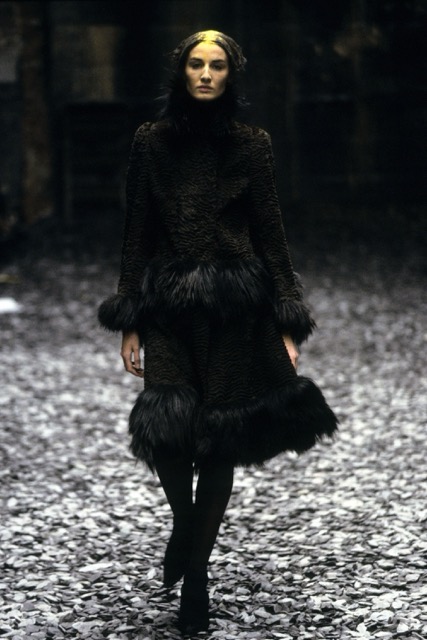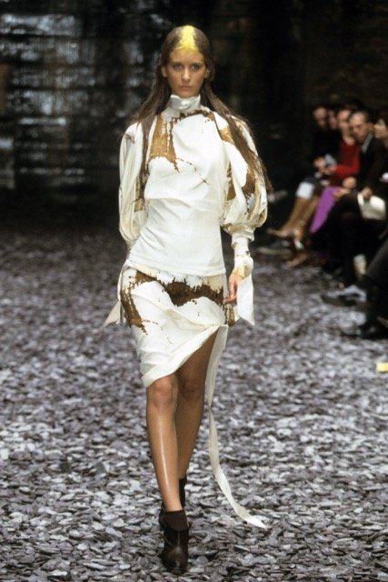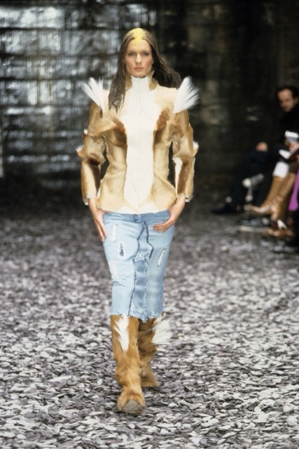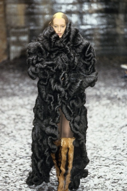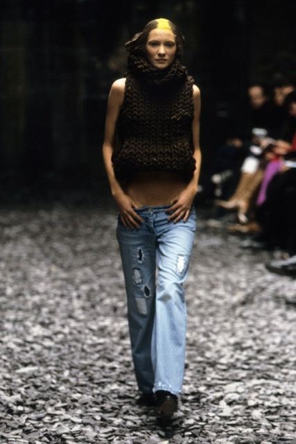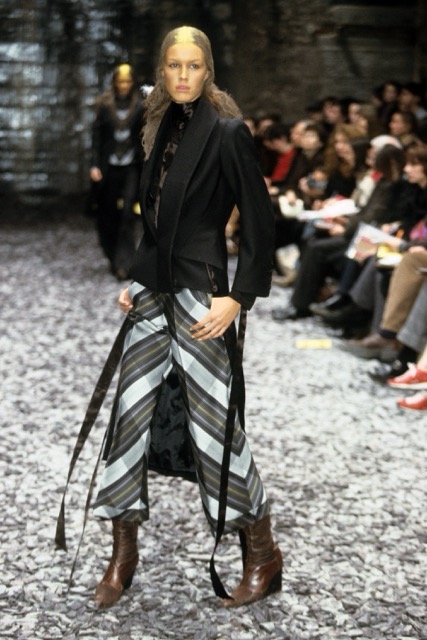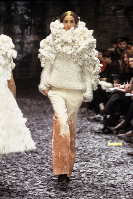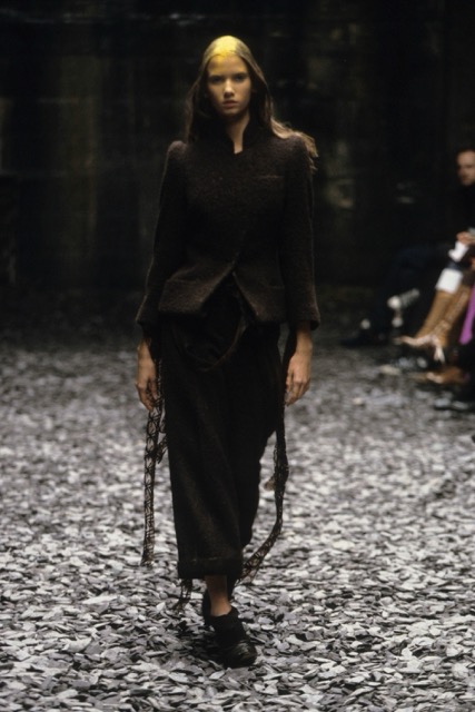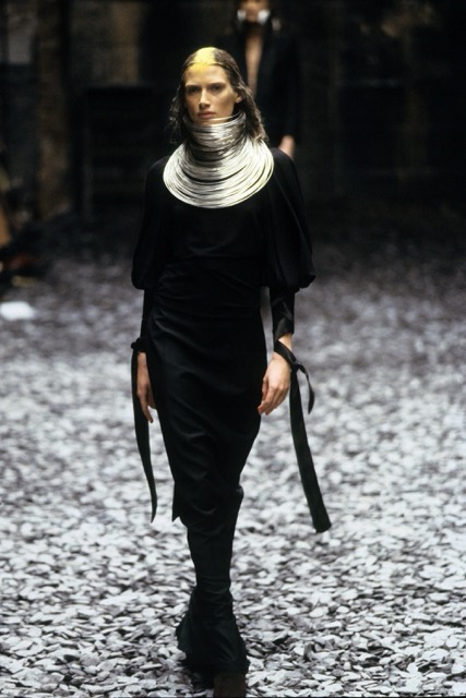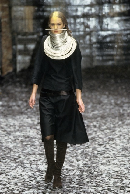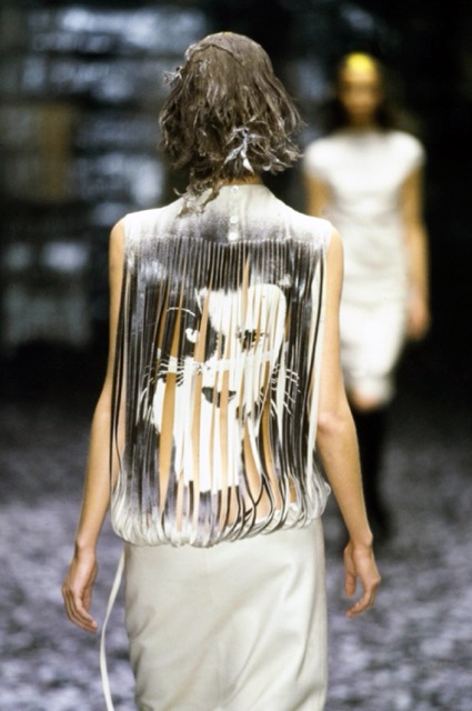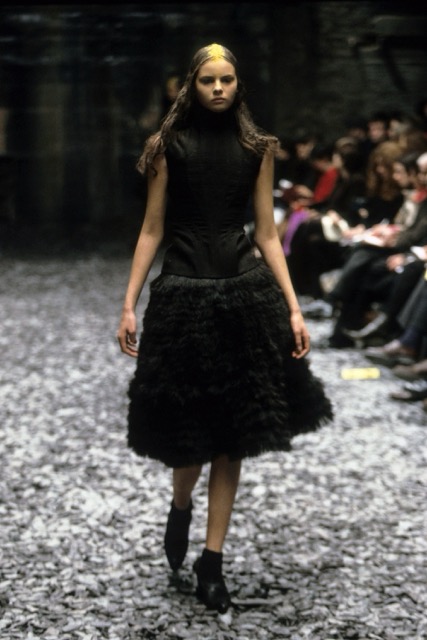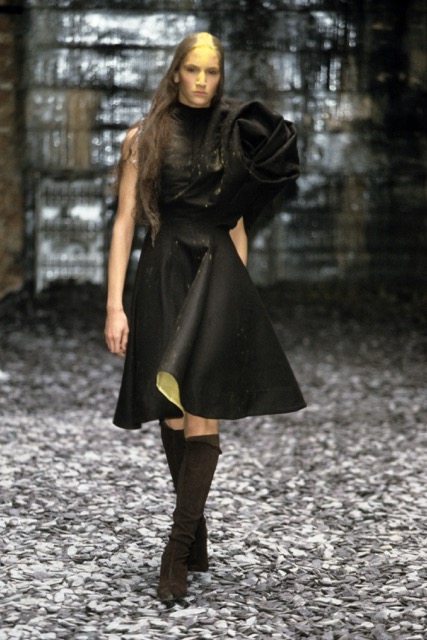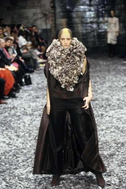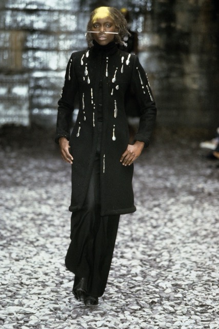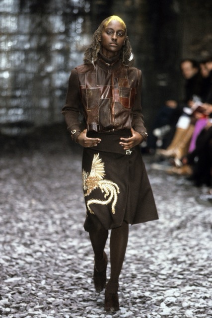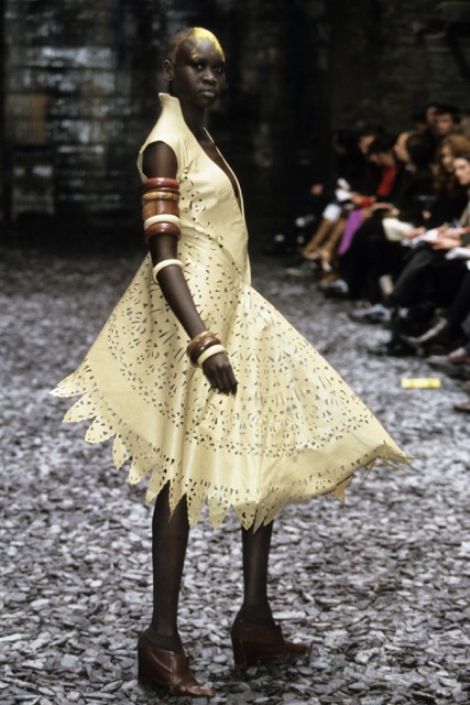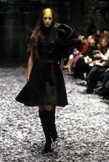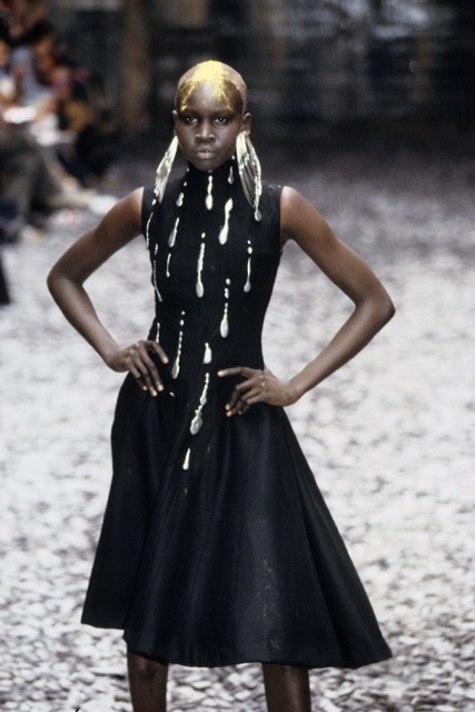 Inspired by the Yoruba deity Eshu, was an exploration of African aesthetics fused with Victorian influences. The show was undeniably striking, showcasing dramatic silhouettes like acid-wash denim hoop dresses and textural contrasts that demanded attention. Björk’s endorsement of one such piece highlighted the collection’s avant-garde appeal.