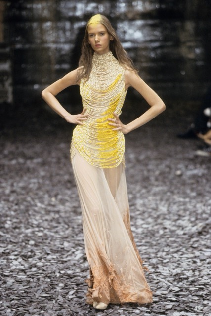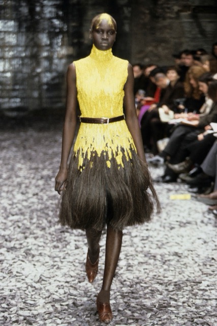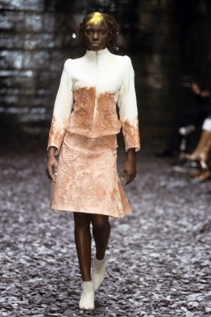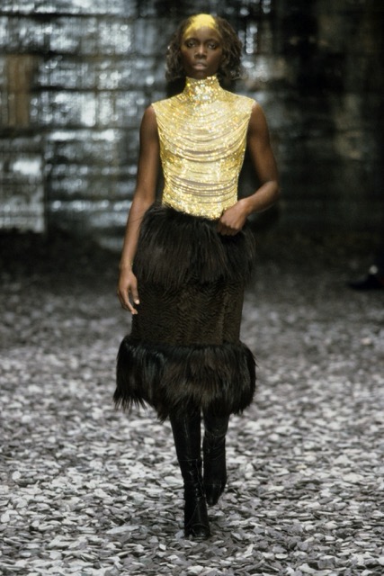 The use of traditional Yoruba elements, such as scarification motifs, horsehair headpieces, and beadwork, added depth and historical resonance. McQueen’s references to African rituals, from Yoruba masks to body modification, were rich in storytelling but sometimes veered into a chaotic mix of cultural symbolism. For instance, pairing Kenyan beading with Mursi lip plates and Victorian details created moments of brilliance, yet also felt jarring and disconnected.