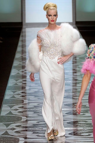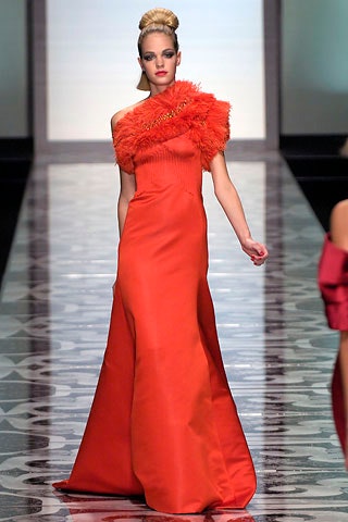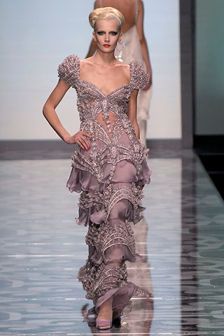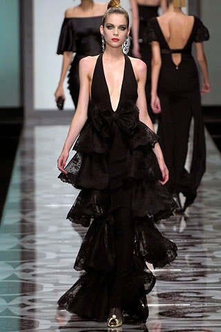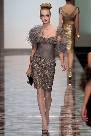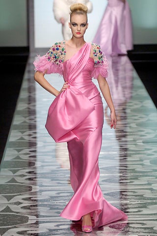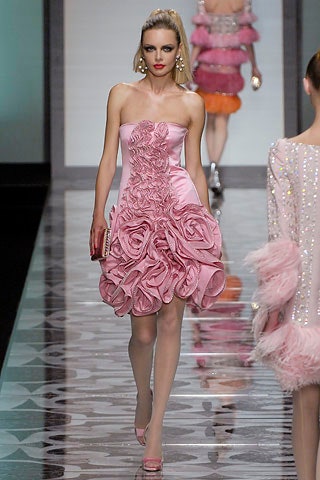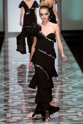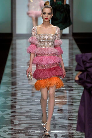 The designs were sleek, with a focus on simple yet rich colours like black, ivory, and sage, along with his signature red plus he ended the show with pink satin . The details were breathtaking, from shimmering fabrics to soft ruffles and intricate embellishments. The collection carried the charm of old-school glamour, with just the right touch drama. Valentino’s magic shone through in every piece, whether it was the fluttering organza layers or the subtle sheen of lamé fabrics. Valentino’s finale was amazing—the pink gowns were both fierce and soft, absolutely gorgeous. The evening wear was spot on, with a beautiful collection of minidresses. My favourites were the feathered ones in teal and plum, and there was also a stunning pink and orange dress.