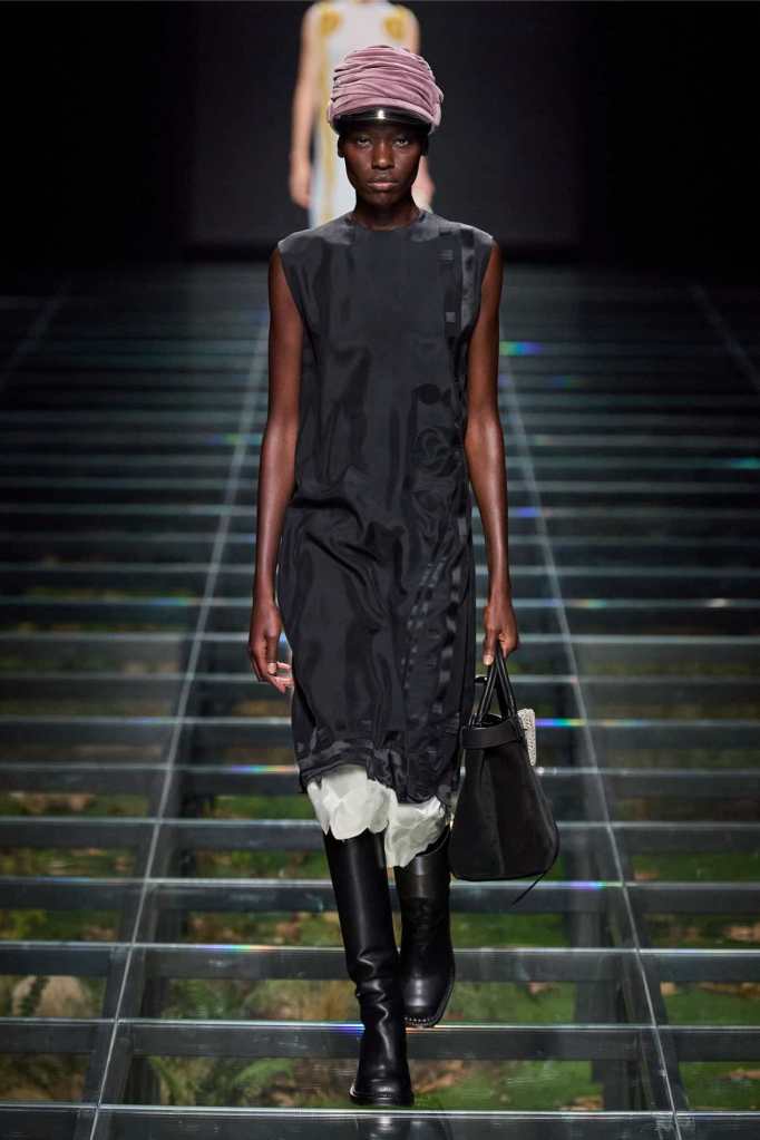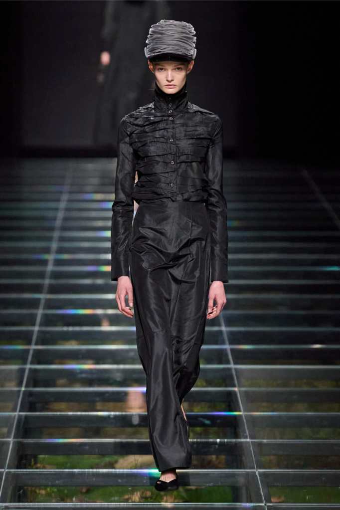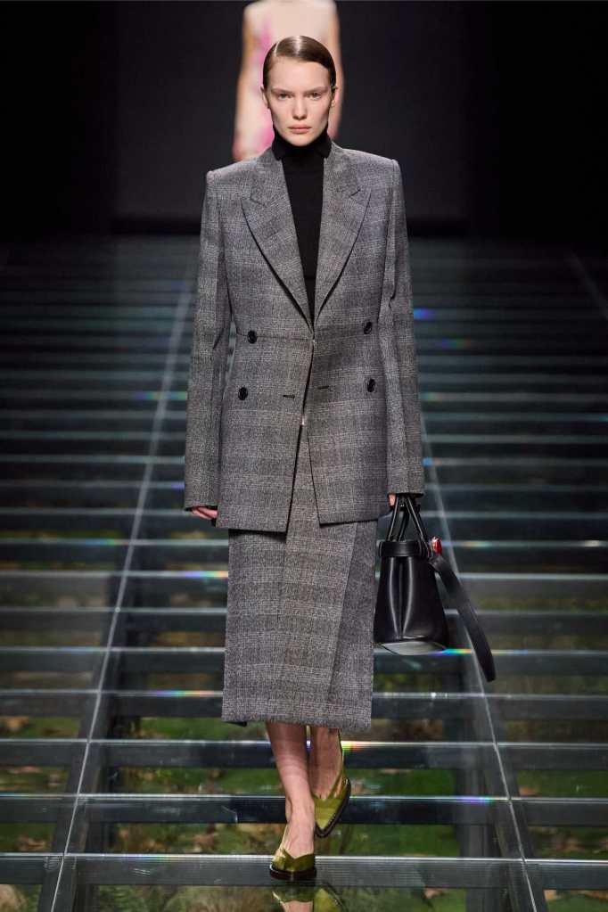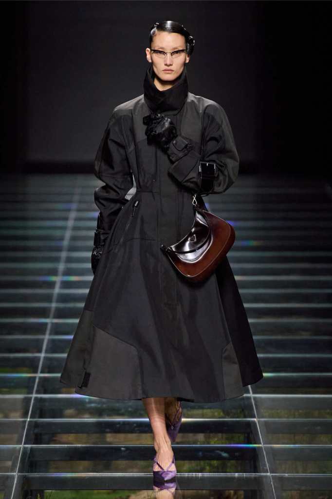 The silhouettes are another highlight. There’s a sense of exaggerated verticality in the lengthened hemlines, giving the collection a sense of timeless elegance. Dresses, skirts, and overcoats are all designed with clean, elongated lines that emphasize the wearer’s form, while vibrant hues of chartreuse, crimson, and lilac bring an unexpected pop against more muted tones. The combination of delicate silk skirts and chunky wool coats is a conversation between opposites, exploring the contrasts between fragility and resilience, tradition and modernity.