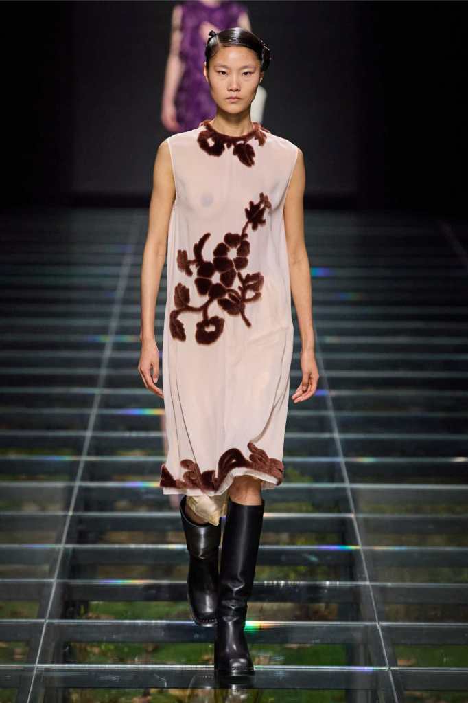 Miuccia Prada and Raf Simons use fragments of history—vintage leather jackets, 1950s-inspired knitwear, and shift dresses—to celebrate timeless beauty. Yet, the collection isn’t nostalgic for nostalgia’s sake. Instead, it’s an emotional response to how ideals of beauty have evolved and continue to resonate in today’s world.