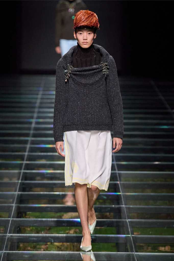 Through its exploration of femininity, Prada taps into something deeper—our connection to history and the natural world. The show’s set, with its greenery and mossy rocks, emphasizes this connection, highlighting the tension between indoor life and our instinctual ties to nature. Even the garments reflect this dialogue, with pieces like skirts that reveal hidden layers, giving a sense of unveiling and discovery.
