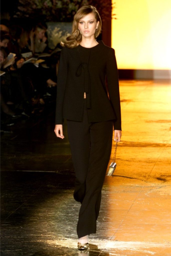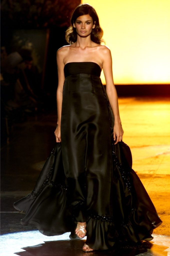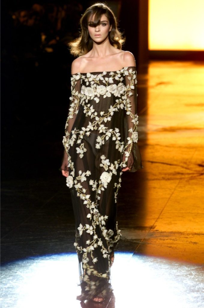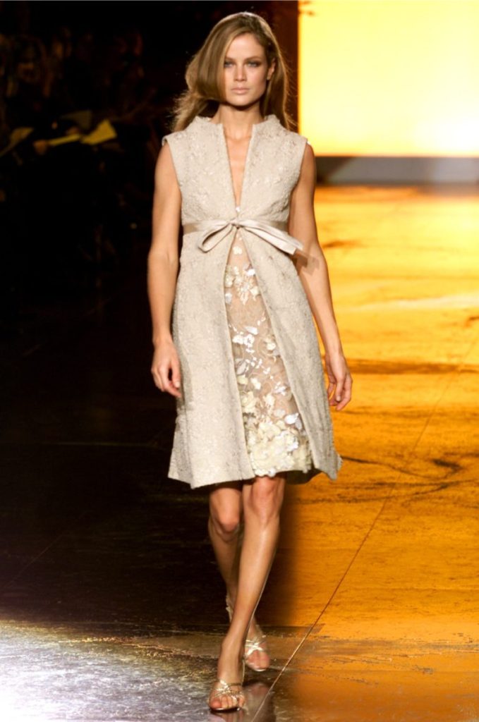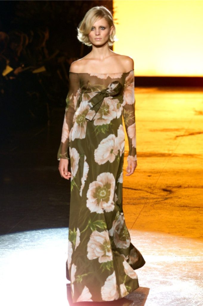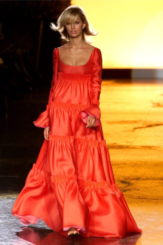 The gowns, delicately spotlighting the décolletage , exuded a sexy demure vibe. Simple, yet so pleasant, the collection was youthful. This balance made the looks feel fresh – with light fabrics like organza and cashmere. Plus the pantsuits were impeccably tailored. Standout pieces included a red jumpsuit with a soft, flowing fabric across the bust and an ivory coat over a delicate chiffon dress. Bold floral prints in soft pinks and greens added a fresh touch. Icons like Carmen Kass and Karolina Kurkova, brought the collection to life. It was a refreshing reminder of what makes runway shows so special.