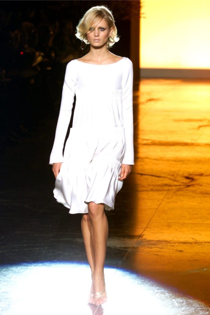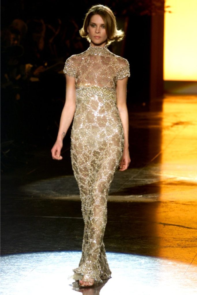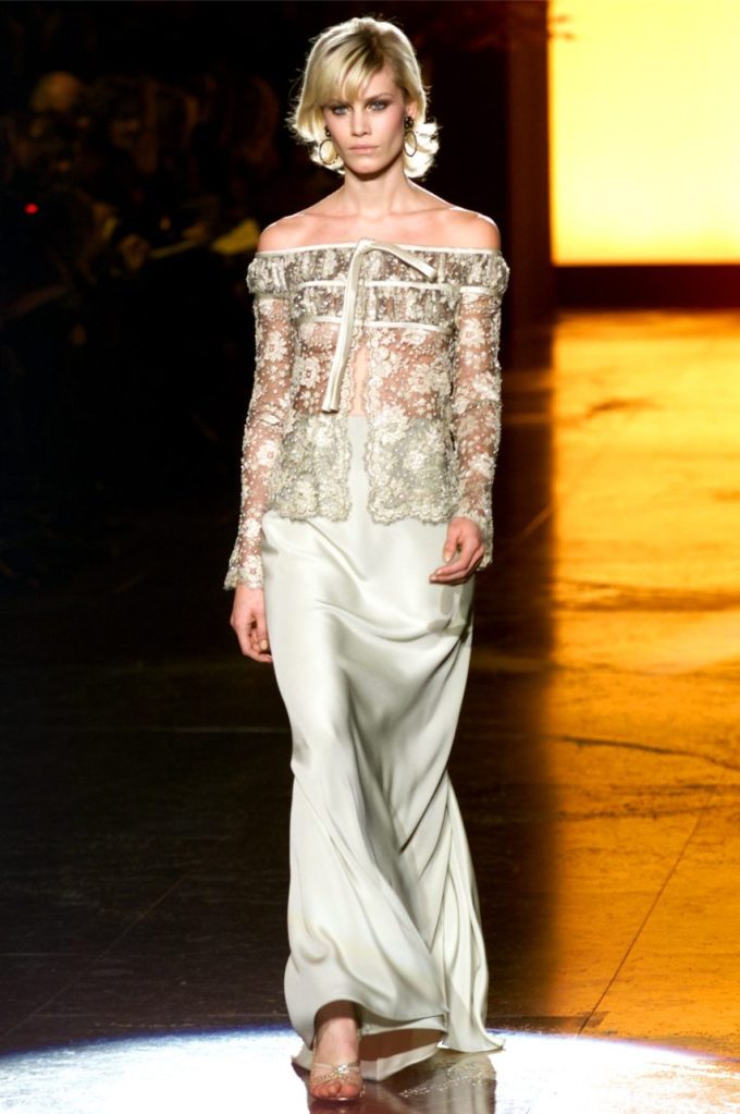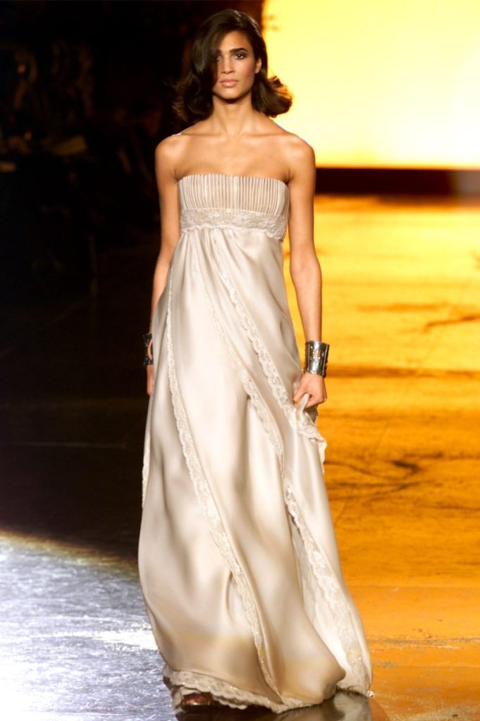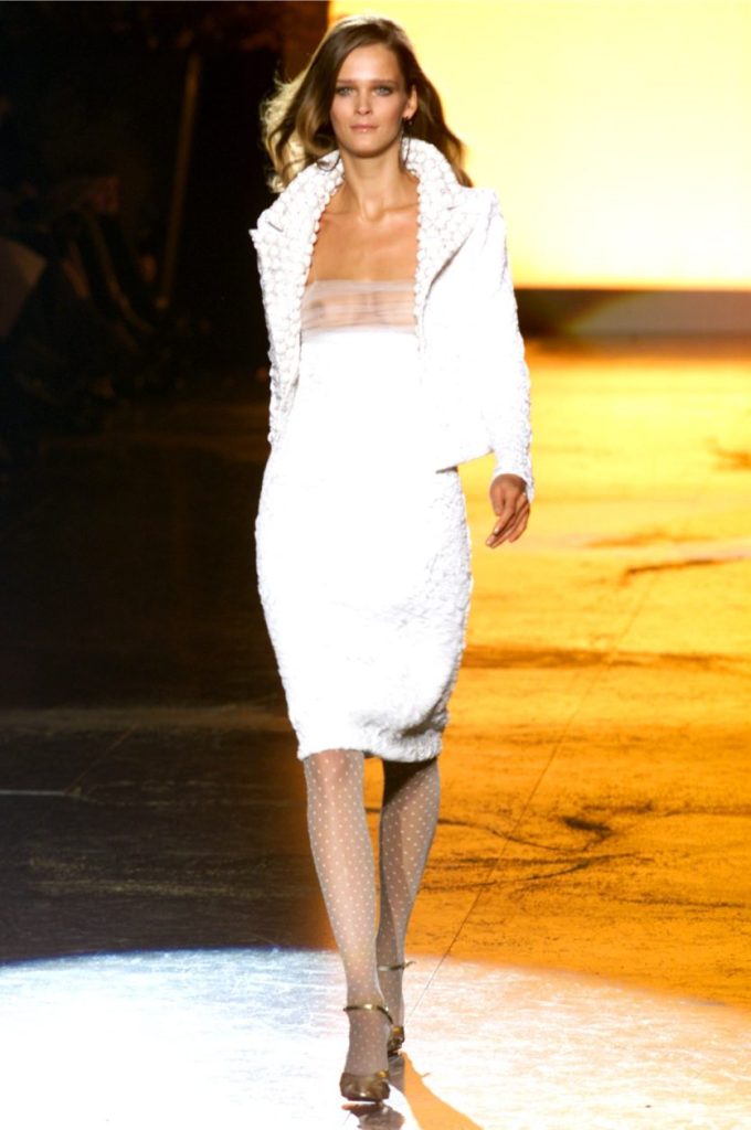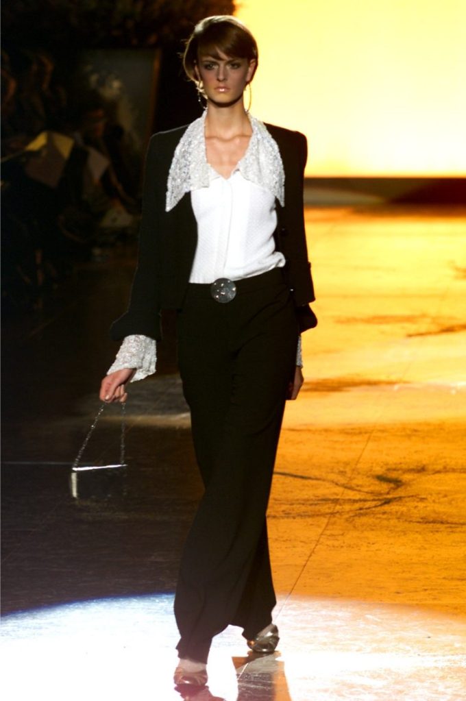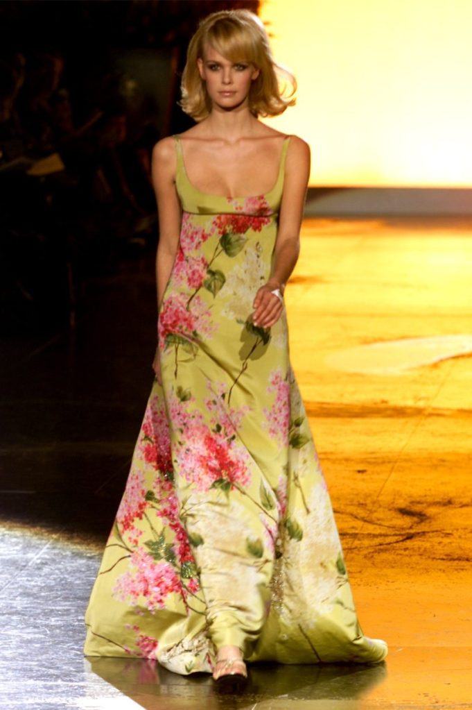 The gowns, delicately spotlighting the décolletage , exuded a sexy demure vibe. Simple, yet so pleasant, the collection was youthful. This balance made the looks feel fresh – with light fabrics like organza and cashmere. Plus the pantsuits were impeccably tailored. Standout pieces included a red jumpsuit with a soft, flowing fabric across the bust and an ivory coat over a delicate chiffon dress. Bold floral prints in soft pinks and greens added a fresh touch. Icons like Carmen Kass and Karolina Kurkova, brought the collection to life. It was a refreshing reminder of what makes runway shows so special.