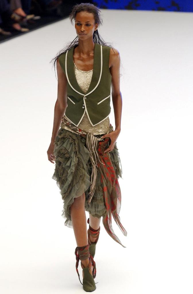 Irere was a journey of contrasts: chaos and beauty, survival and rebirth. McQueen’s masterful craftsmanship, from the historical nods to the intricate detailing, was evident throughout showcasing chiffon dresses, tie-dye jumpsuits, and boleros adorned with feather motifs.