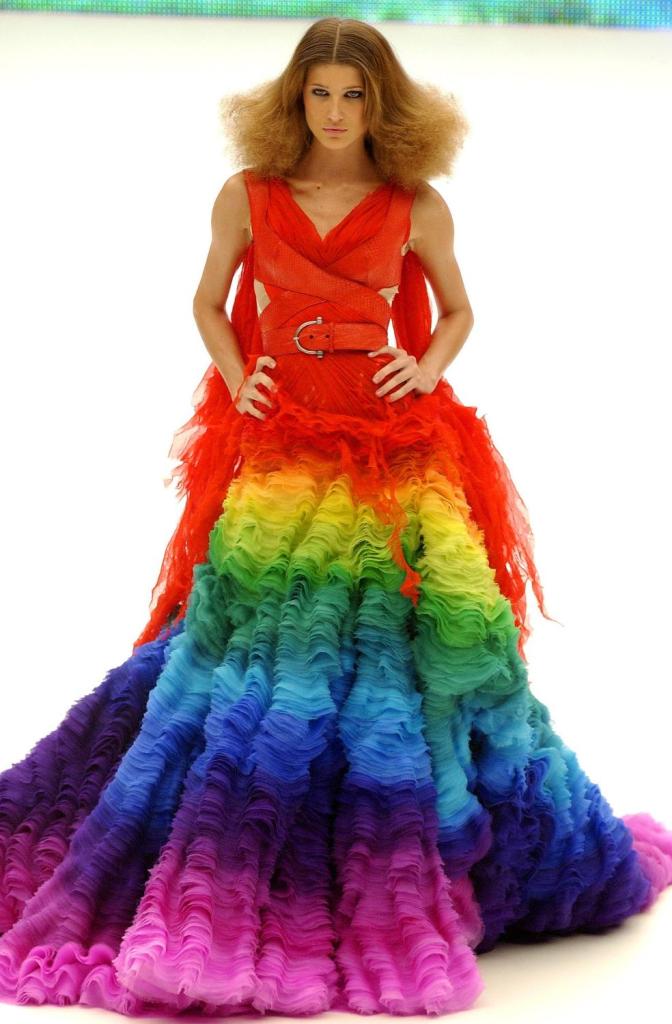 Then came the grand finale: a burst of color and life inspired by the Amazon’s flora and fauna. Feathered headpieces and vibrant dresses mimicked tropical birds, with a breathtaking gown featuring rainbow tulle ruffles stealing the show. Transparent block-heeled shoes, complete with butterflies inside, added whimsical charm. The mood was celebratory—a metamorphosis from chaos to beauty.