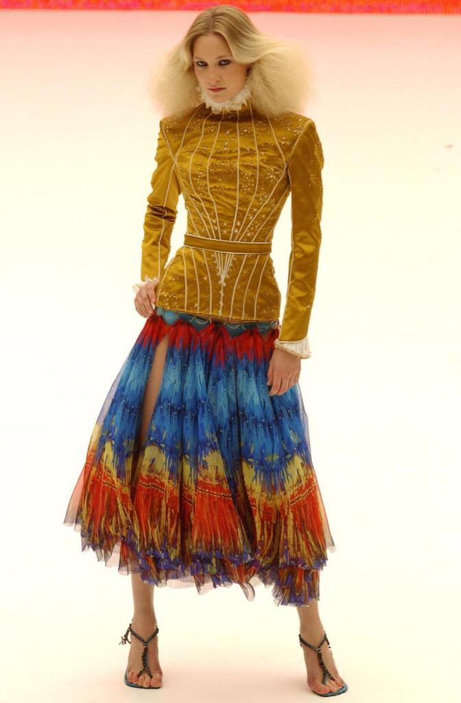 Irere, was an ambitious blend of storytelling and sartorial artistry. Through three distinct acts—shipwrecked pirates, somber conquistadors, and vibrant birds of paradise—McQueen wove a tale of survival and transformation, inspired by the Age of Discovery and the lush Amazon rainforest.