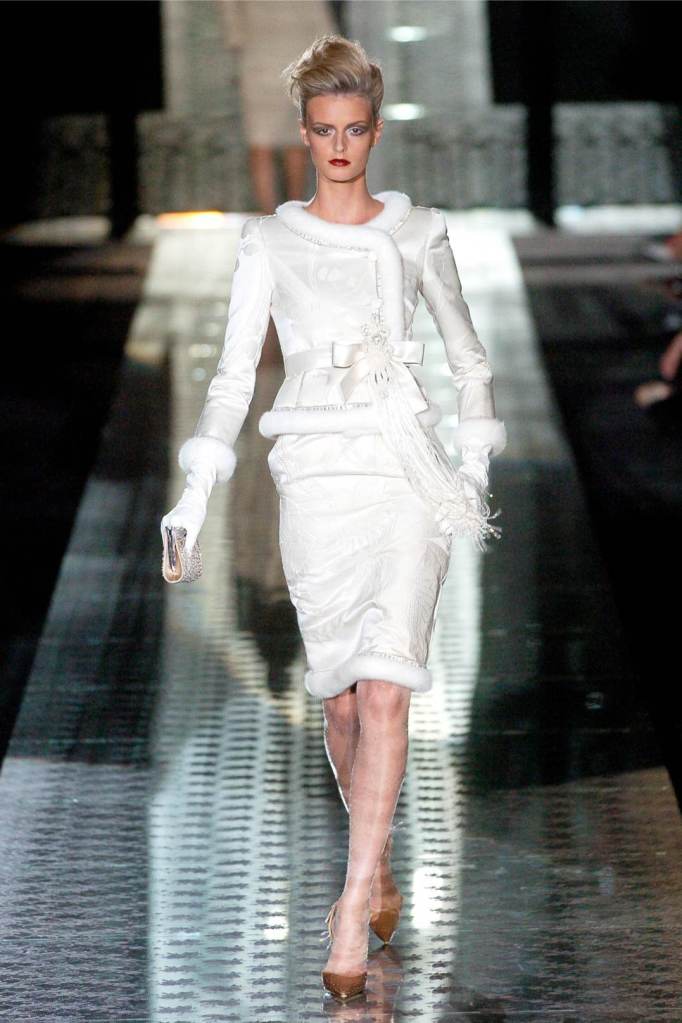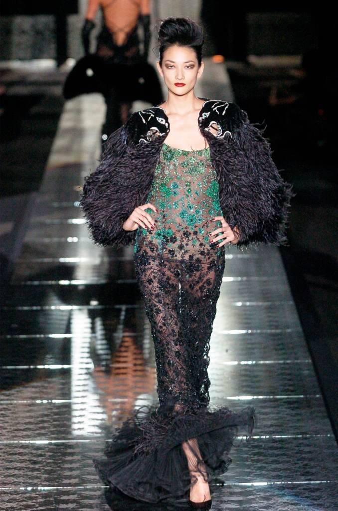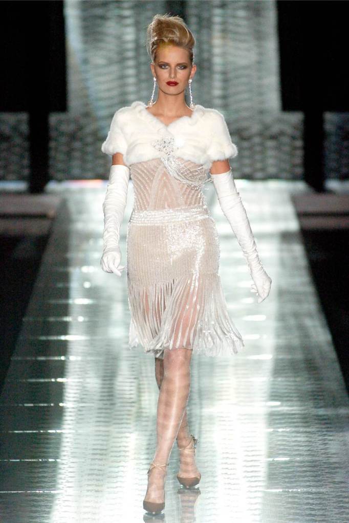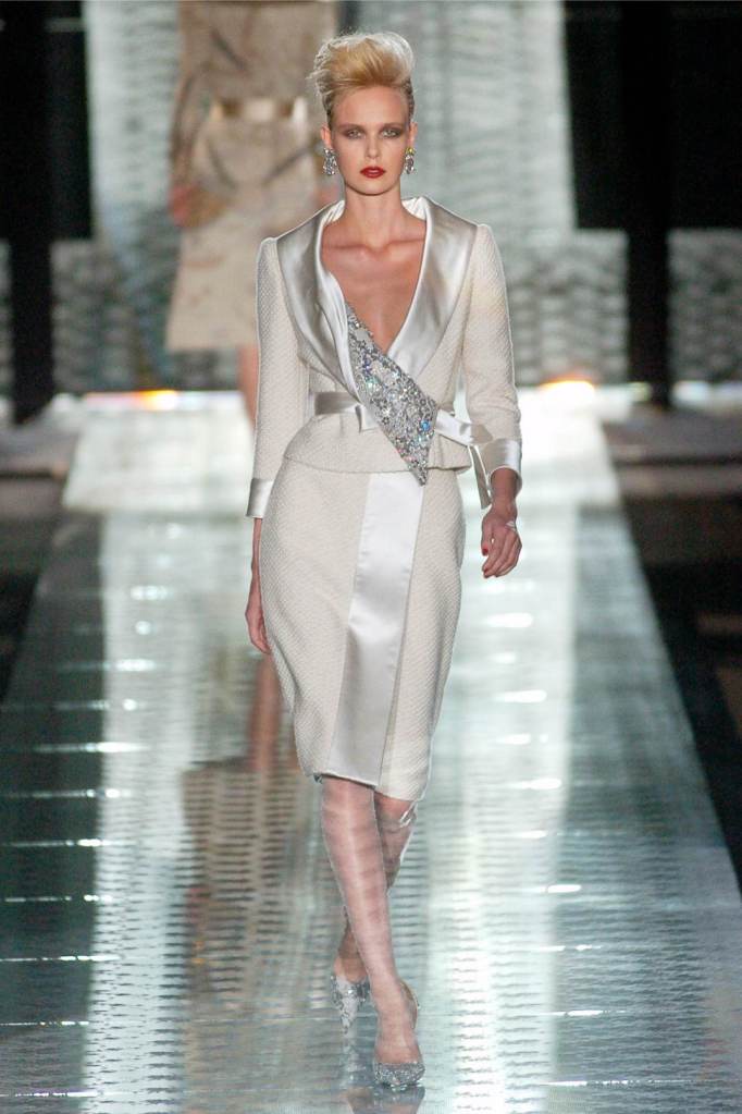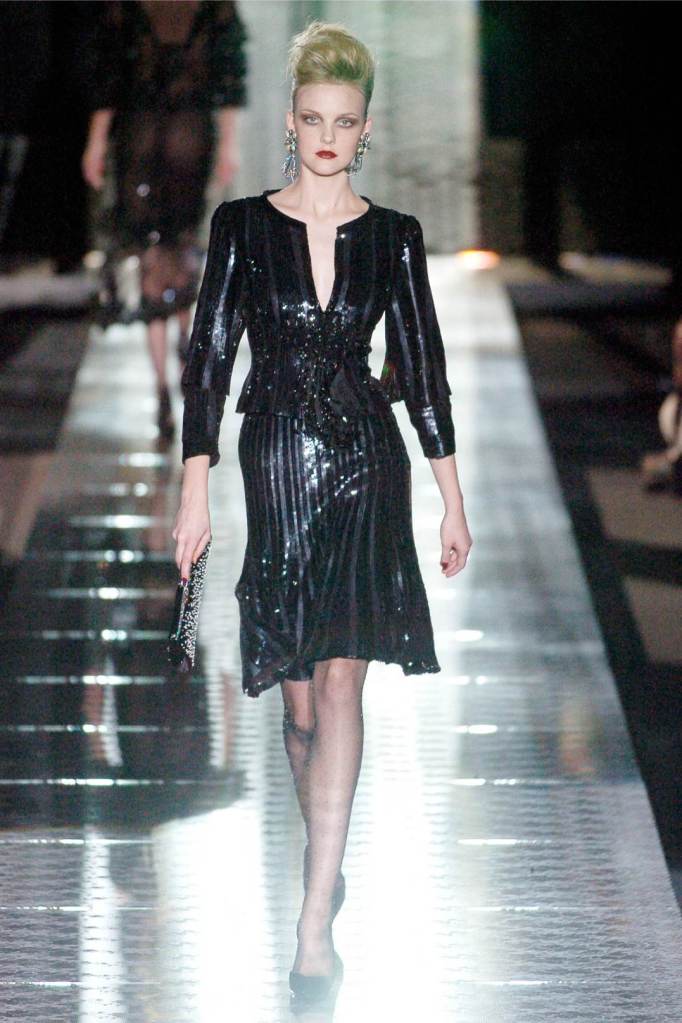 This collection is nothing short of sublime, radiating 50s glamour with a retro charm that feels both gorgeous and effortlessly peaceful. It ticks every box for a perfect couture collection—there’s an elegant play with colour, stunning silhouettes, and craftsmanship that speaks for itself. The fur detailing is a standout feature, appearing throughout in ways that feel luxurious and deliciously indulgent. His designs, like sparkling dresses and fur-trimmed coats, bring back the glamour of a bygone era. With Shirley Bassey’s “Diamonds Are Forever” playing, his show felt like a tribute to classic elegance—perfectly styled hair, red lips, and stunning details. While it’s a style few can live today, it’s a beautiful reminder of how special it once was. One of the most unforgettable looks for me was a black sheer skirt suit, beautifully decorated with lace and sequins; glamorous, dramatic, and easily one of my all-time favourite Valentino looks.
