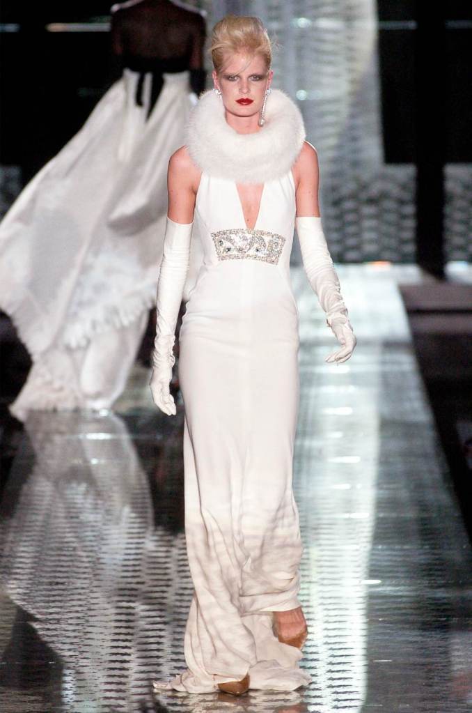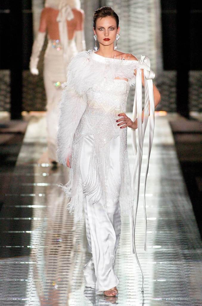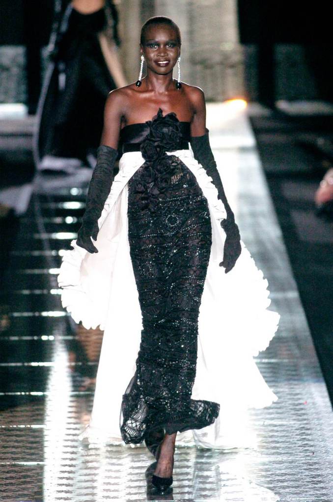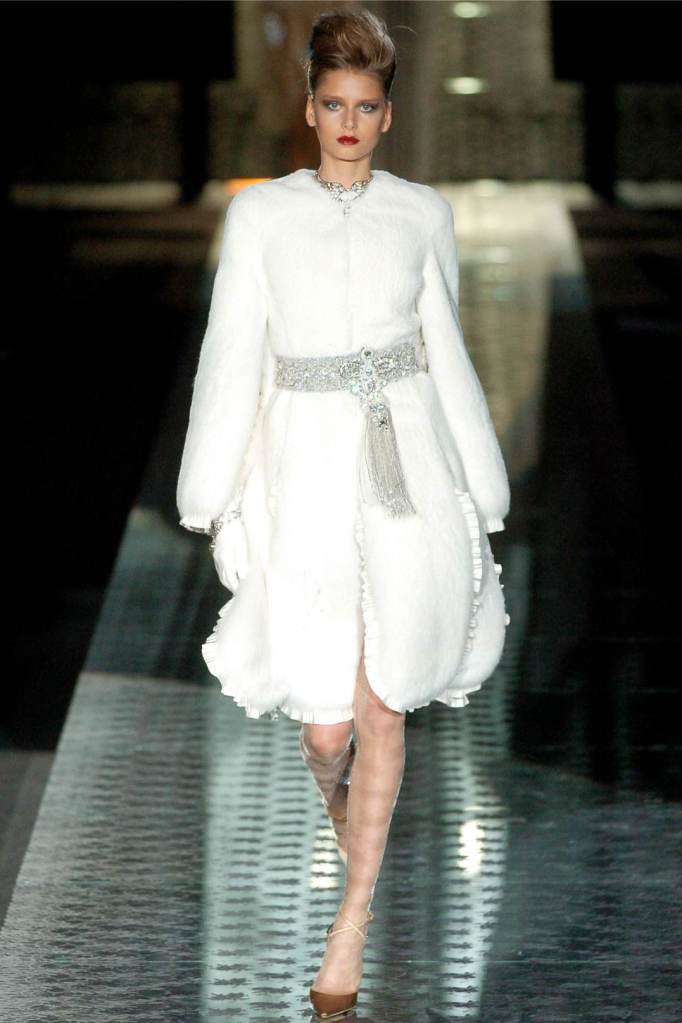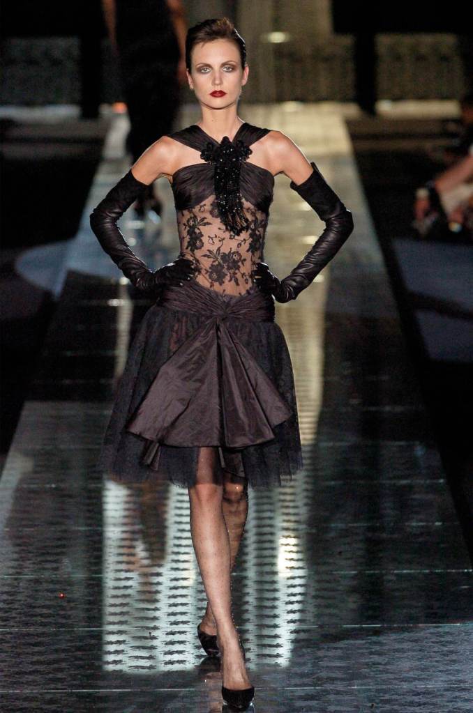 This collection is nothing short of sublime, radiating 50s glamour with a retro charm that feels both gorgeous and effortlessly peaceful. It ticks every box for a perfect couture collection—there’s an elegant play with colour, stunning silhouettes, and craftsmanship that speaks for itself. The fur detailing is a standout feature, appearing throughout in ways that feel luxurious and deliciously indulgent. His designs, like sparkling dresses and fur-trimmed coats, bring back the glamour of a bygone era. With Shirley Bassey’s “Diamonds Are Forever” playing, his show felt like a tribute to classic elegance—perfectly styled hair, red lips, and stunning details. While it’s a style few can live today, it’s a beautiful reminder of how special it once was. One of the most unforgettable looks for me was a black sheer skirt suit, beautifully decorated with lace and sequins; glamorous, dramatic, and easily one of my all-time favourite Valentino looks.