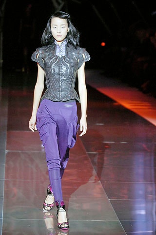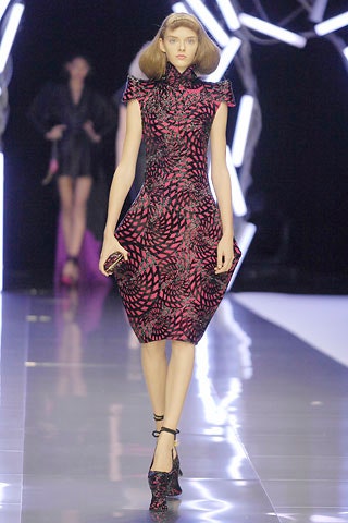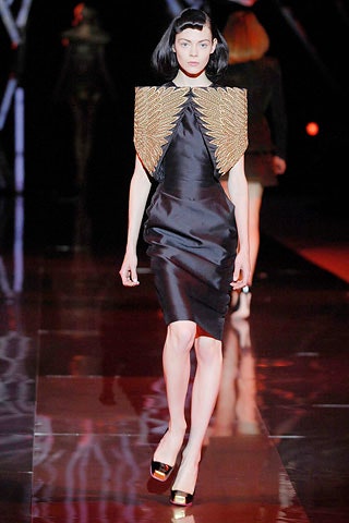 Avian and butterfly motifs carried symbolic weight, appearing not only in prints but in the movement and shape of the garments themselves. Trapezoidal coats and kimono-inspired dresses nodded to McQueen’s past collections.
