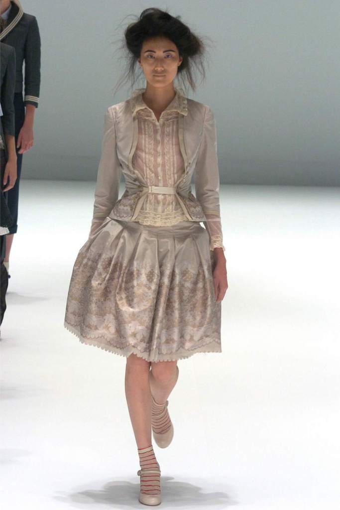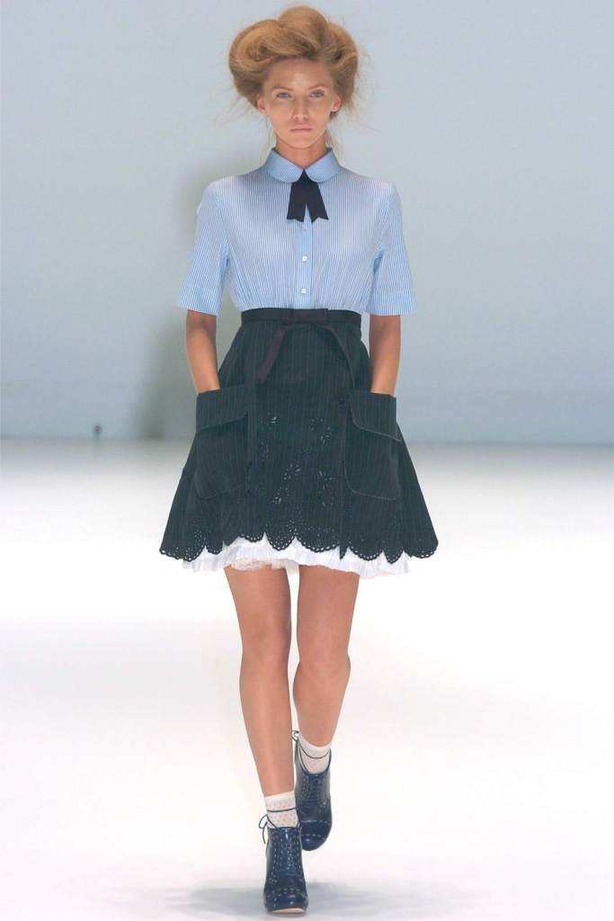 Inspired by the human chess scene in Harry Potter and the Philosopher’s Stone, the models moved like life-sized chess pieces across an illuminated chessboard. The collection unfolded in two acts. The show began with light, wearable pieces rooted in Edwardian romance. Sailor jackets, smartly tailored trousers, and knee-grazing shorts paired with frilly blouses and sheer dresses exuded femininity with a playful, schoolgirl-inspired twist. Nautical touches and striped patterns added charm, while obi belts brought a touch of Japanese elegance.