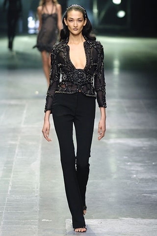 McQueen called this collection a “transitional” one, where he was figuring out his direction. He focused on making sexy, wearable clothes, which was a smart move for selling pieces. But for a designer known for pushing boundaries, this collection felt a little underwhelming.