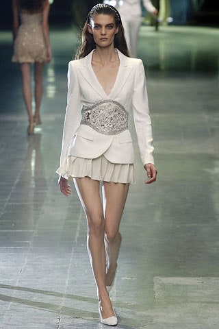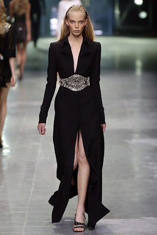 This collection felt like a big shift from his usual dramatic style. The collection was inspired by the 1980s—think power suits, bold glamour, and figure-hugging designs—mixed with touches of ancient Greek fashion.