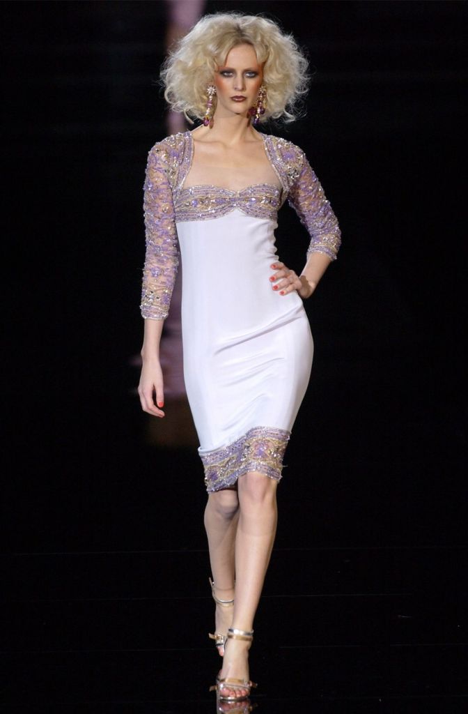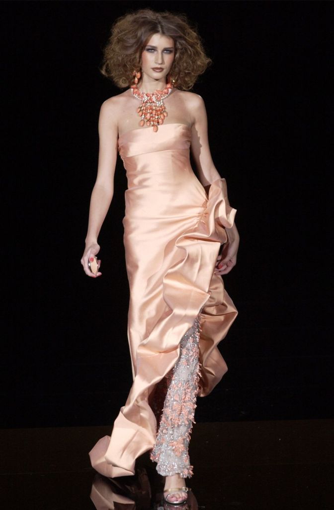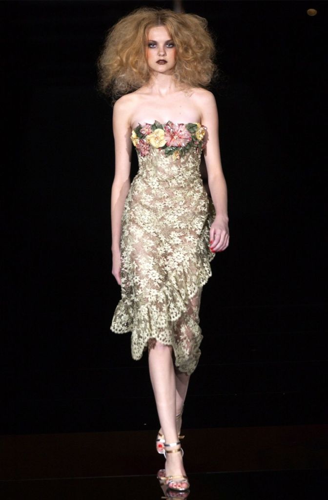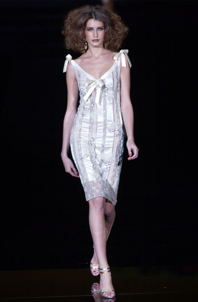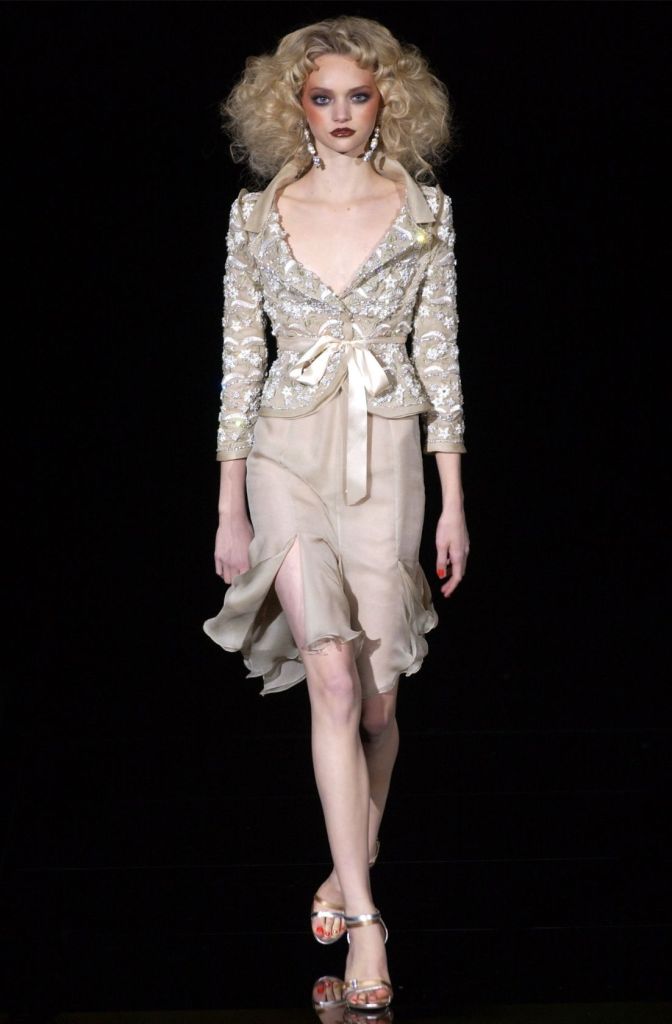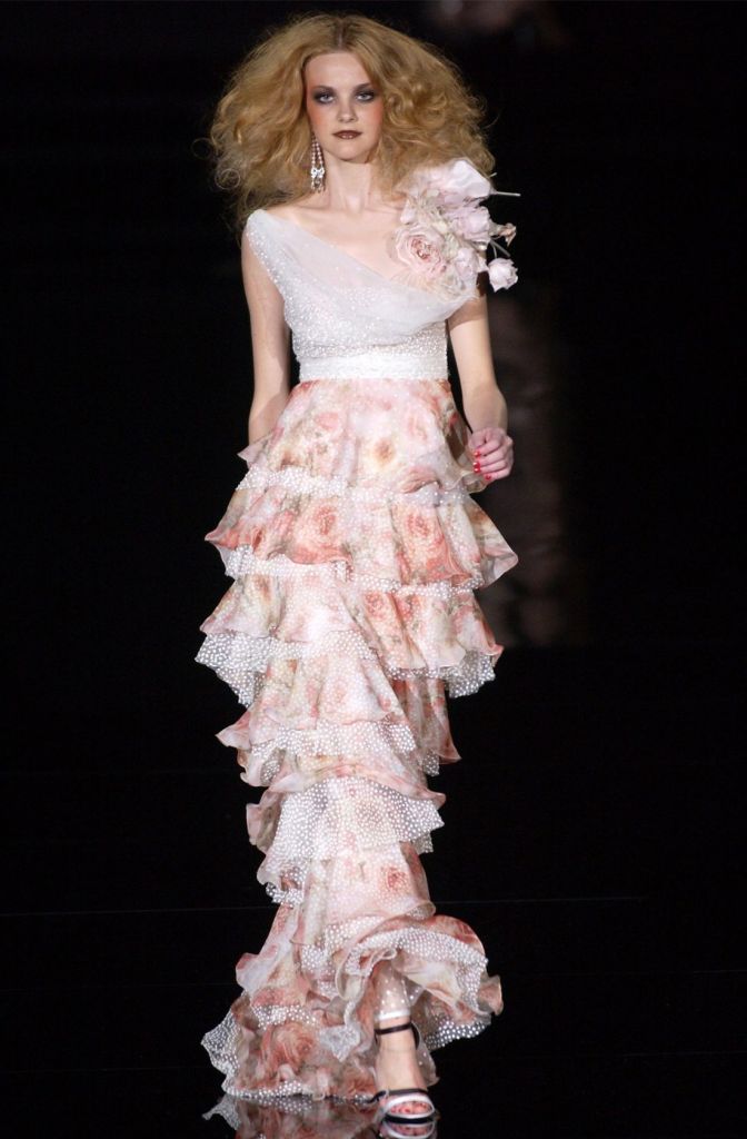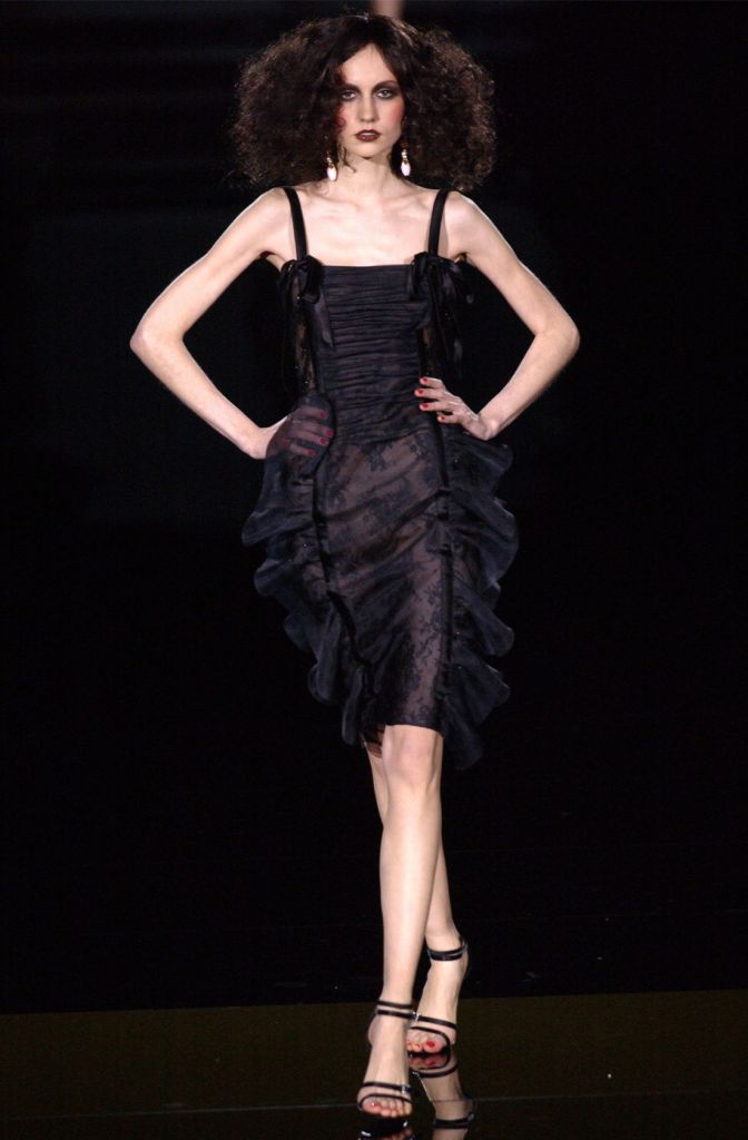 Known for his romantic bows, lace, and refined suits, he brought a fresh twist this season by adding a bold touch of sex appeal. The models, with their seventies-inspired frizz and dramatic makeup, exuded confidence and playfulness. Valentino cleverly mixed delicate details like lace and bows with daring sheer fabrics, highlighting the décolleté and creating a seductive yet sophisticated vibe. While there were some traditional pieces, like flowered silk dresses, the collection felt modern and empowering.