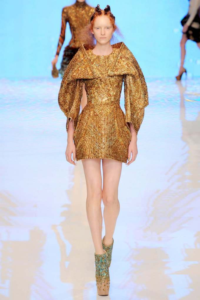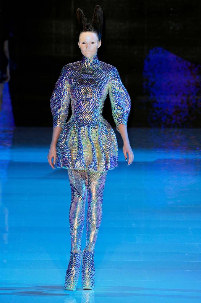 Plato’s Atlantis, was nothing short of revolutionary. Drawing inspiration from the mythical Atlantis and Darwin’s theory of evolution, McQueen envisioned a future where humanity adapts to a flooded world, evolving into aquatic beings. The show was both a commentary on climate change and a celebration of technological innovation, leaving an indelible mark on fashion history.
