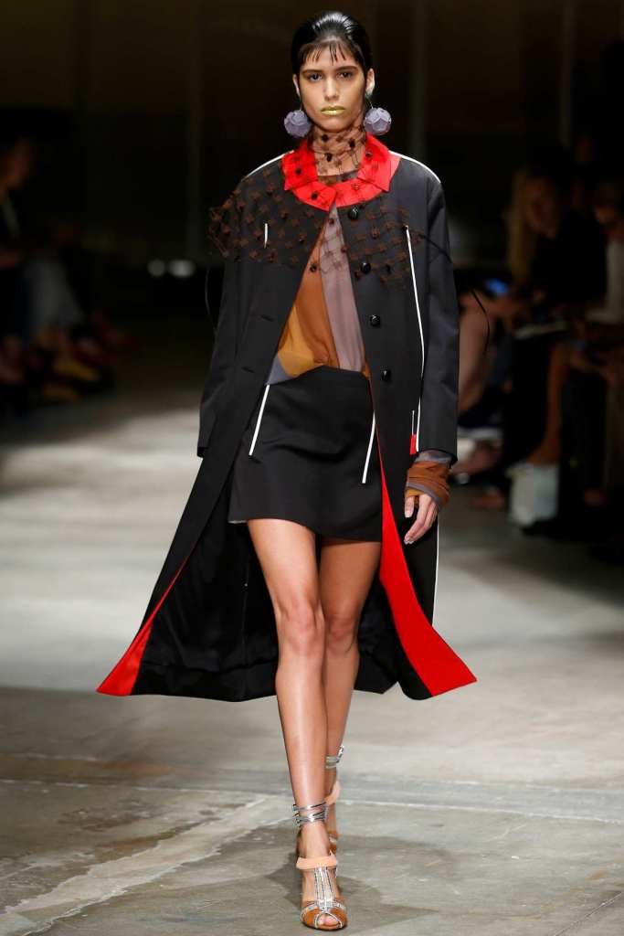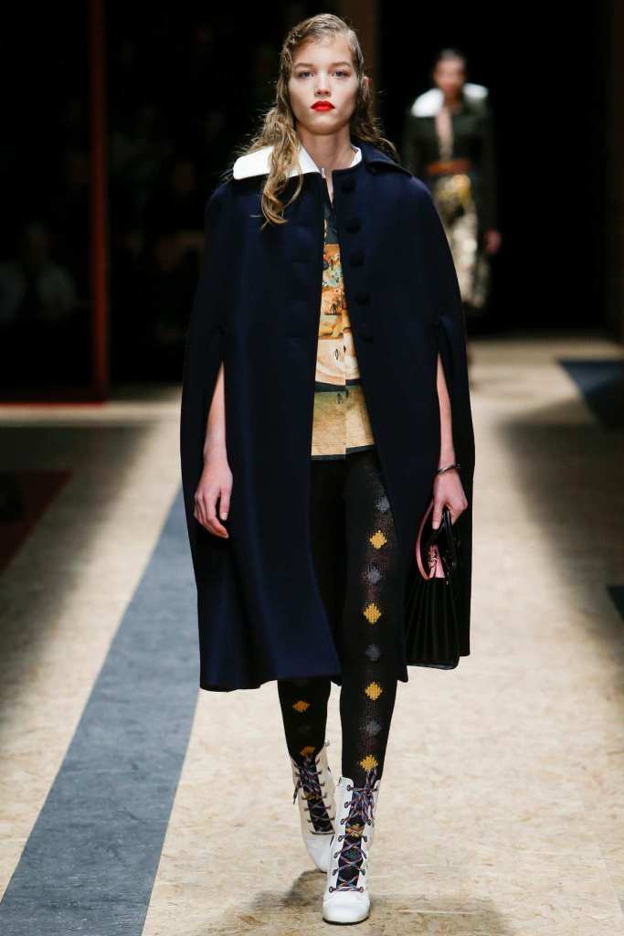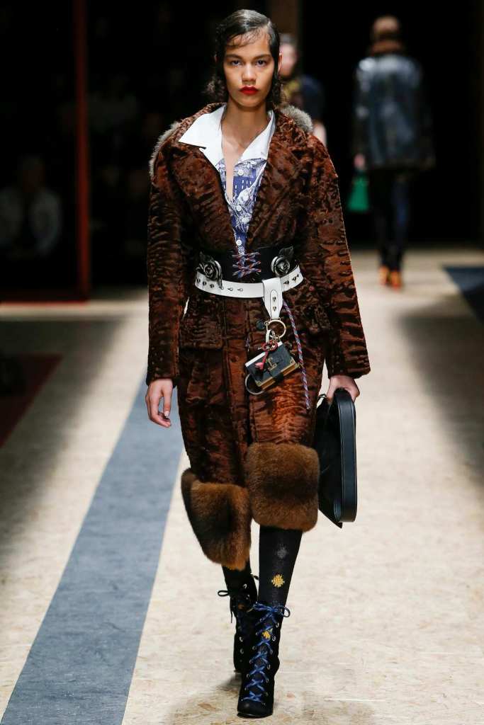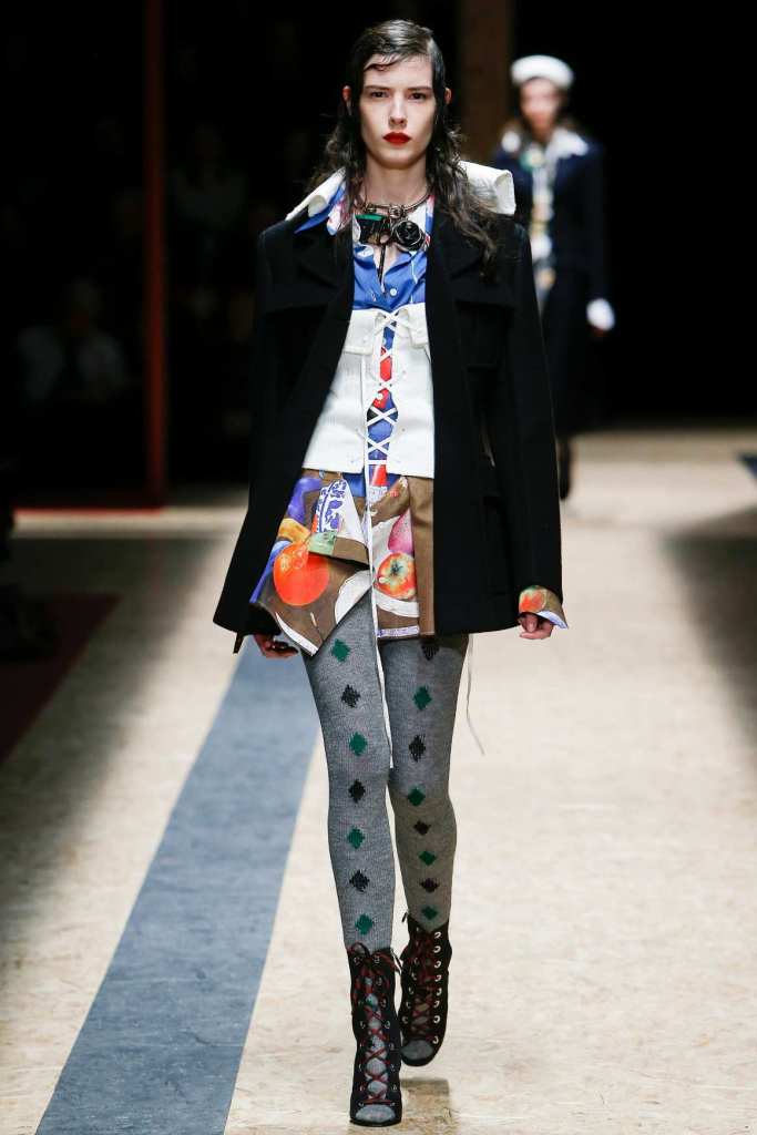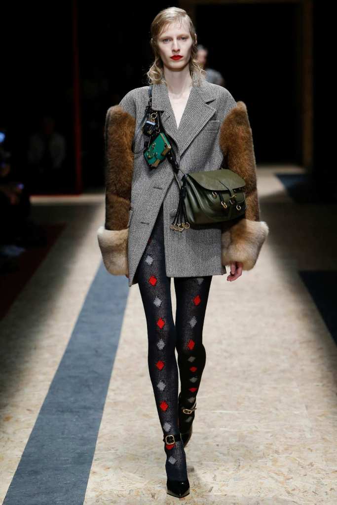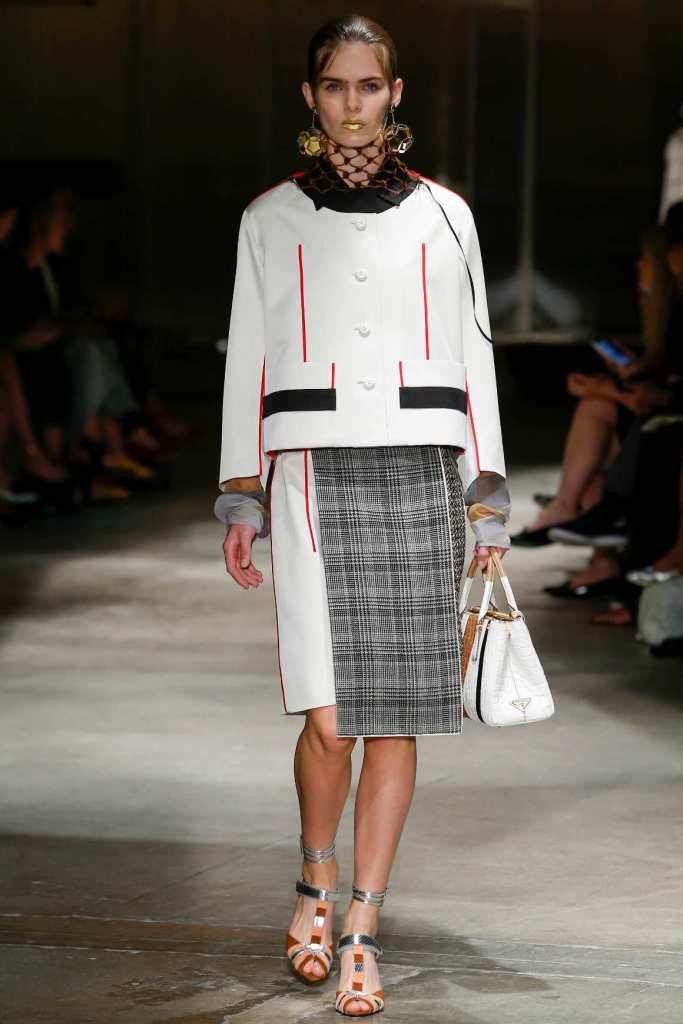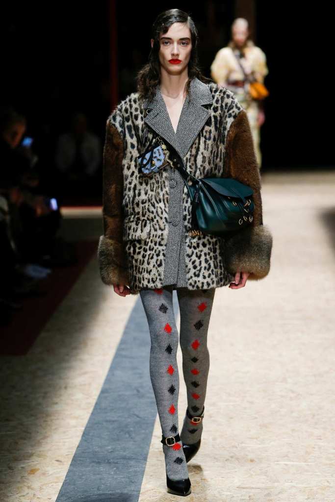 Accessories played a major role, with metallic boots, ankle-wrap flats, and statement collars adding to the collection’s overall impact. Earrings, often large and round like disco balls, added an extra layer of fun to each look. These quirky details made the collection feel both avant-garde and playful, capturing the spirit of the Prada woman—confident, stylish, and never afraid to stand out.