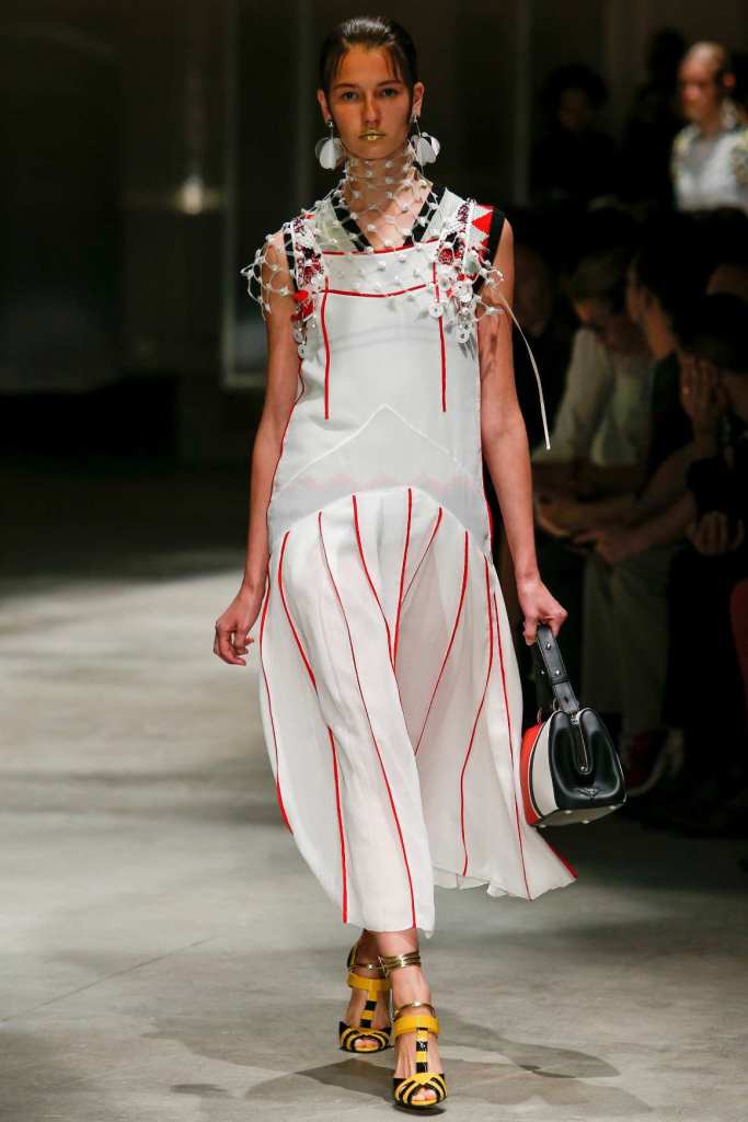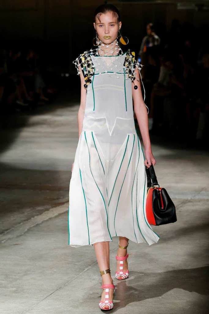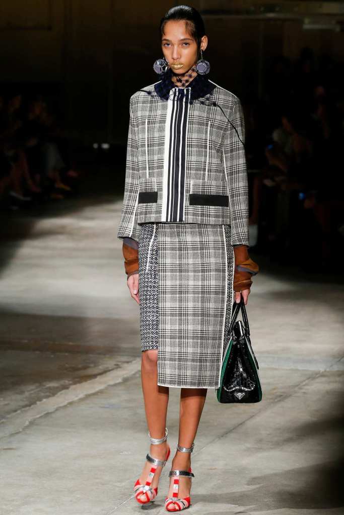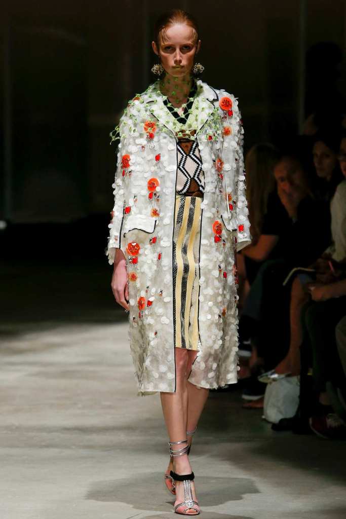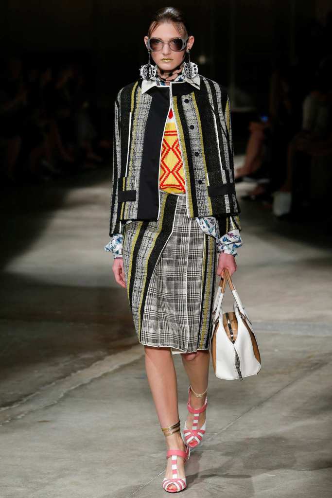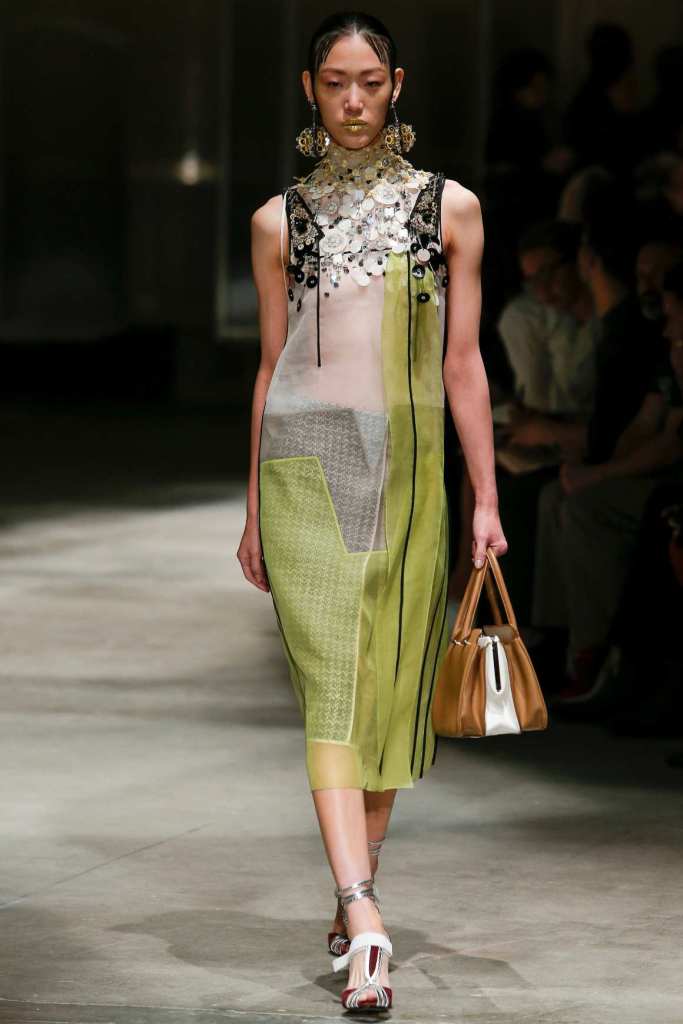 The use of stripes, often seen as a fashion cliché, was elevated in this collection. Prada subverted the pattern with innovative textures like fur and translucent materials, incorporating layers of sheer transparency that gave the stripes a new life. The precision in these designs was remarkable, reminiscent of constructivism and geometric art, where colors and shapes were carefully considered to create a cohesive whole.