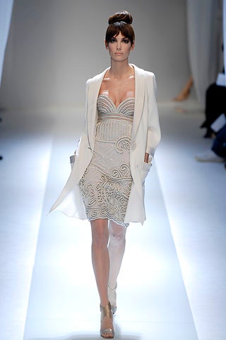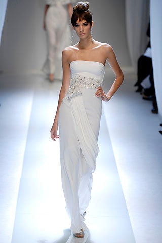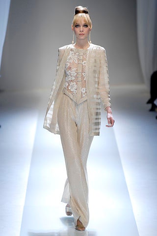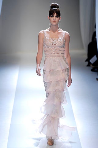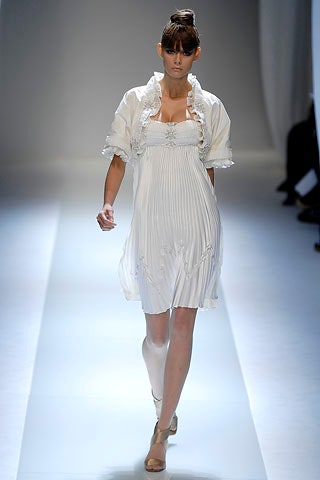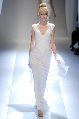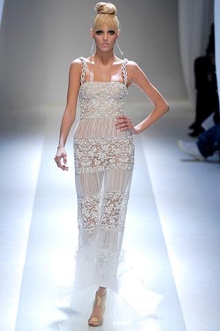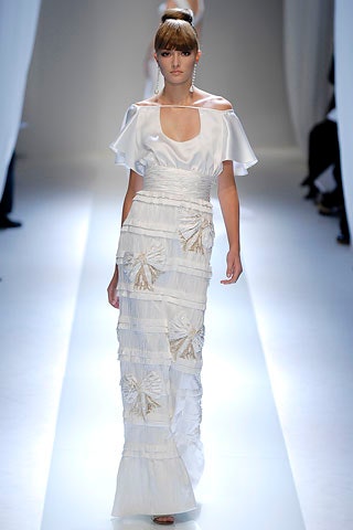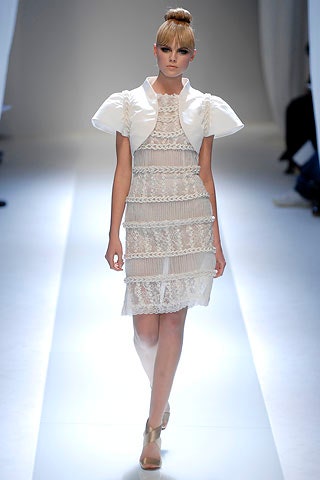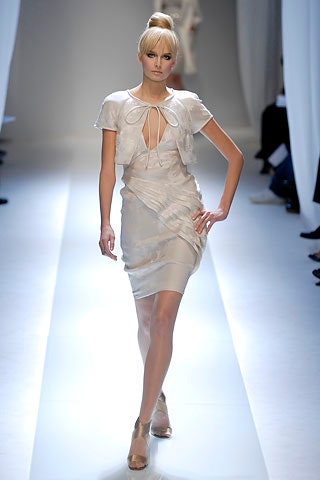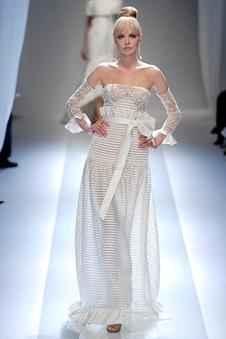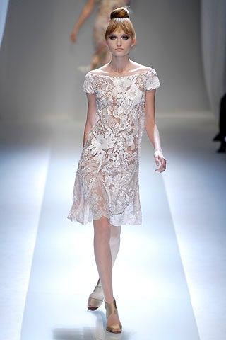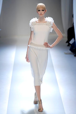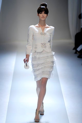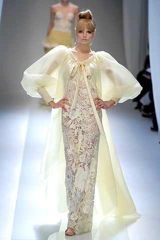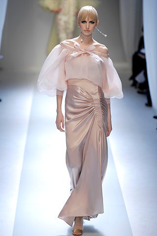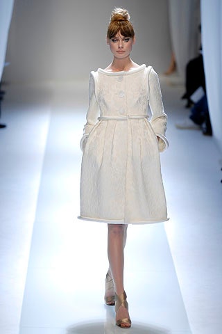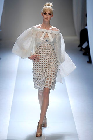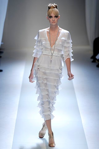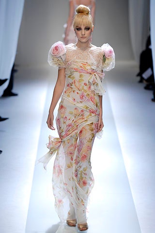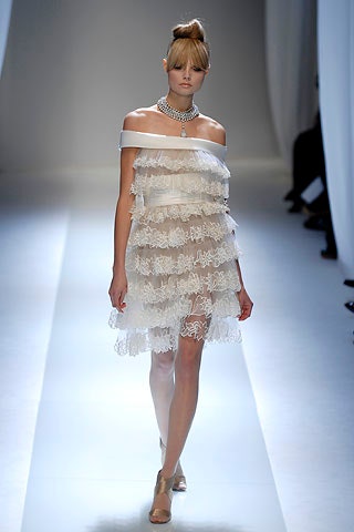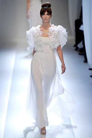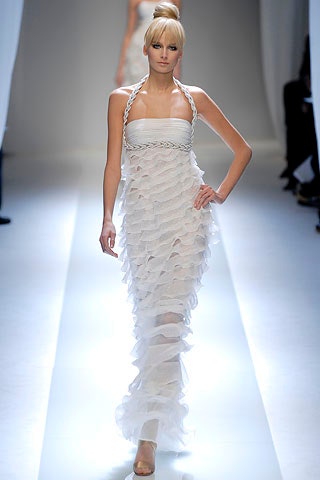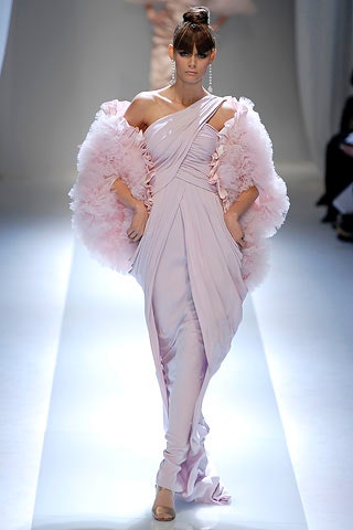 Valentino’s Spring Couture collection is all about purity(?) and elegance, with a focus on all-white designs that feel fresh and dreamy. The collection mixes old-school glamour with a playful, feminine touch, making it feel both classic and fun. The white gowns, delicate tulle, and satin details are a nod to Valentino’s famous 1968 collection, especially the wedding dress he designed for Jackie Kennedy. It feels like a modern take on bridal fashion—perfect for a girl who wants to stand out, whether it’s for a beach wedding in a mini dress or a city celebration in a satin tiered gown; it features signature elements like satin edges, silk draping, and soft ruffles that give each piece a timeless feel. One of the standout pieces is a soft pink princess coat, which adds a beautiful touch of color. It’s the kind of collection that makes you dream of a delicate, dainty silhouette, perfect for special occasions. While it’s mainly white, it’s the subtle details and thoughtful designs that make it feel so special.