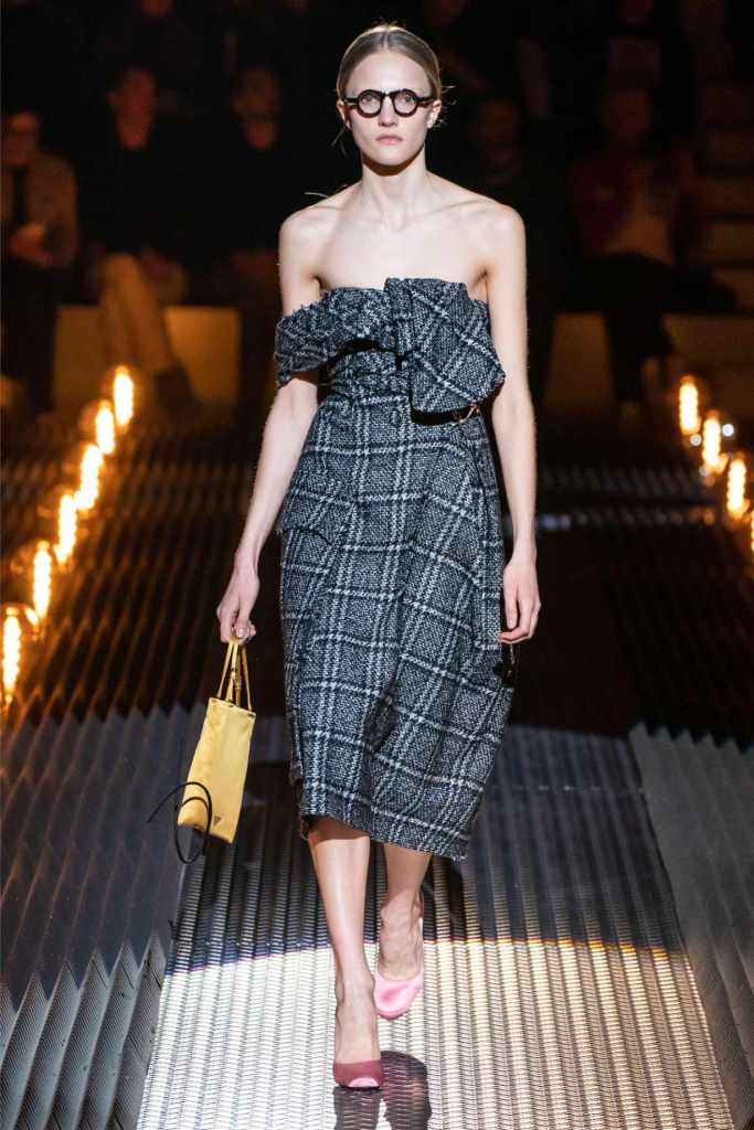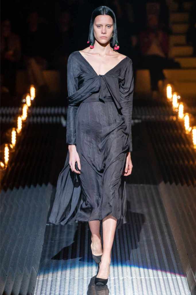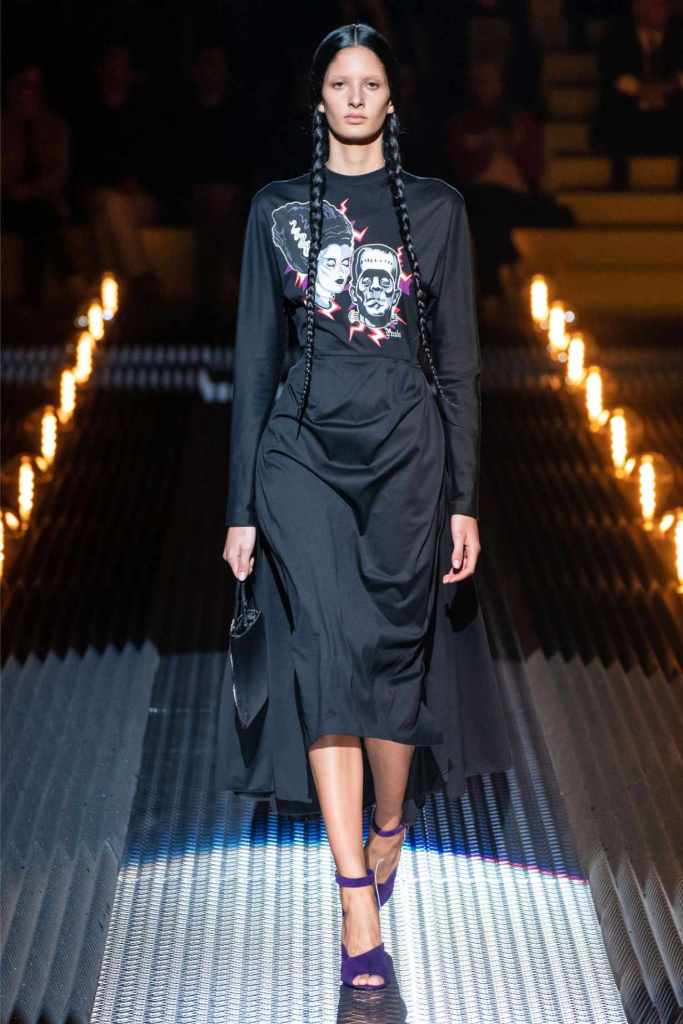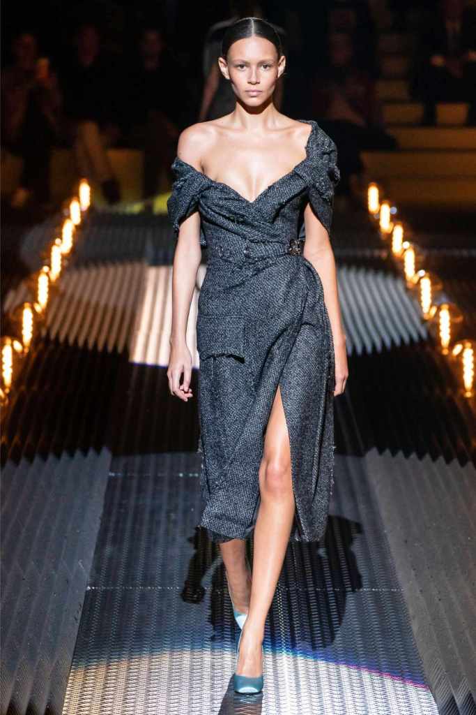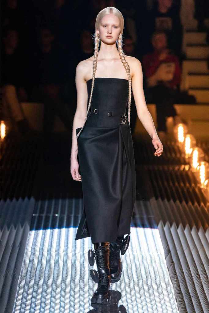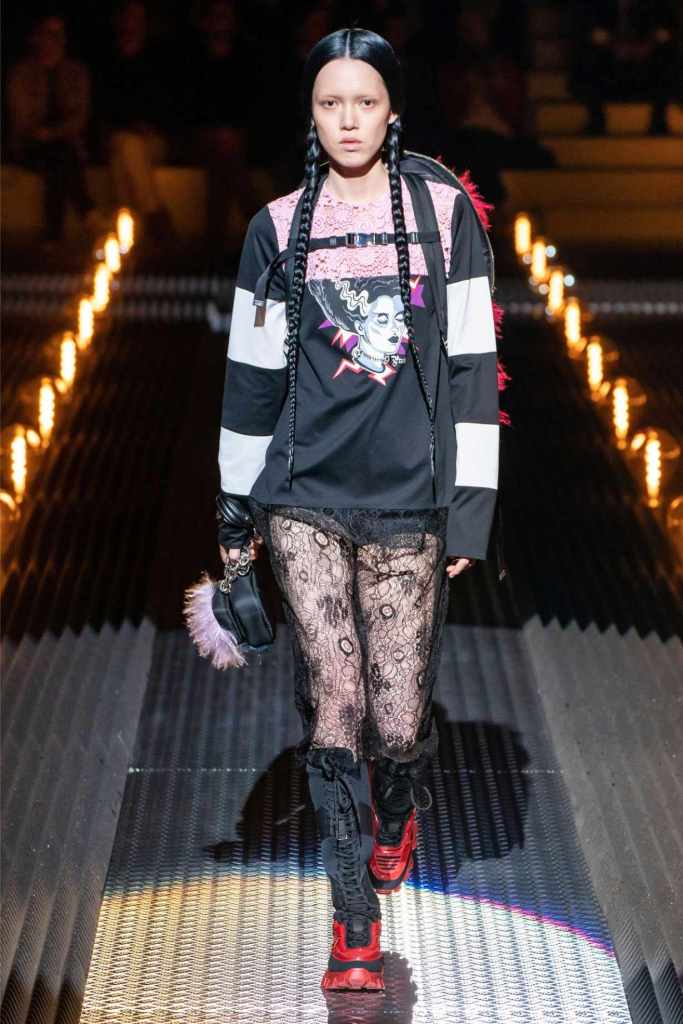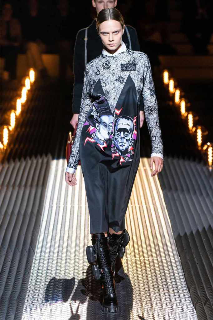 This was an exploration of contrasts, blending romance with darkness, softness with edge, and utilitarian grit with delicate beauty. Drawing inspiration from Mary Shelley’s Frankenstein—a theme she began with her menswear collection—Prada took us on a journey through the “Anatomy of Romance,” creating a world where love and fear coexist in every stitch and seam.