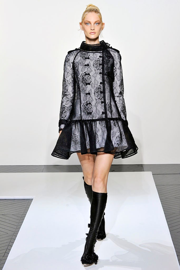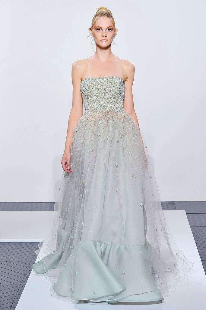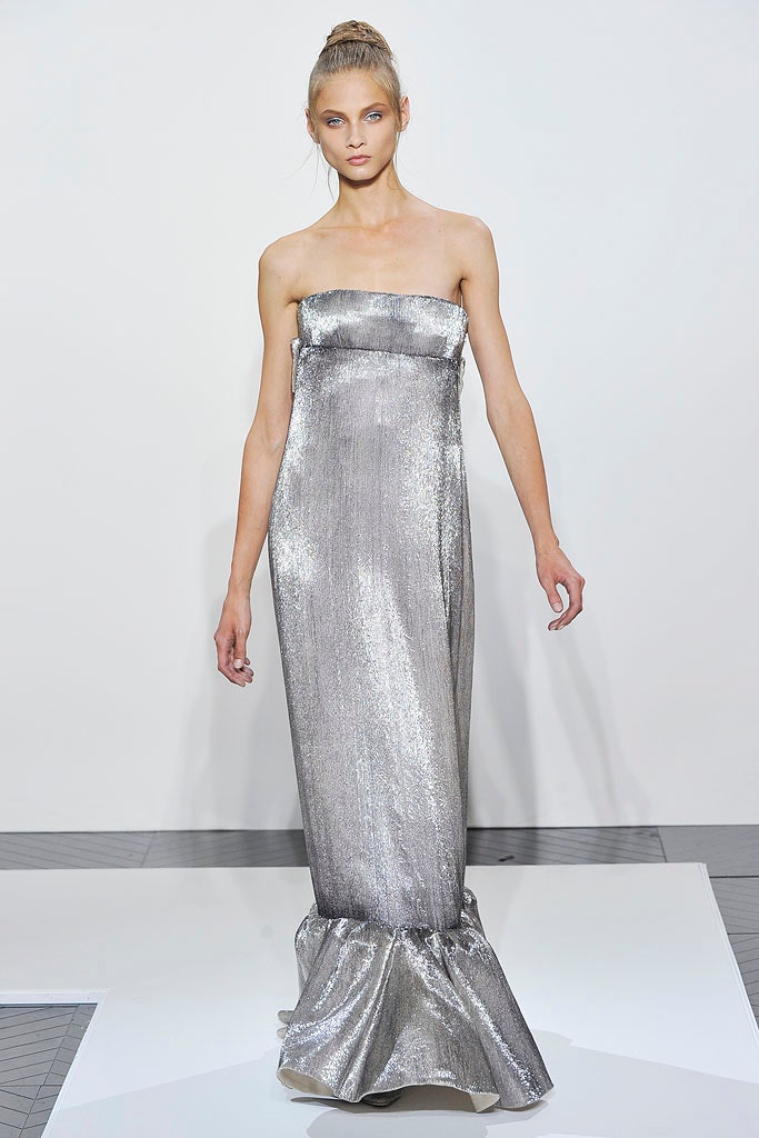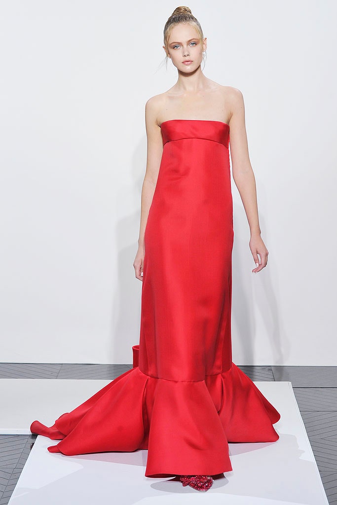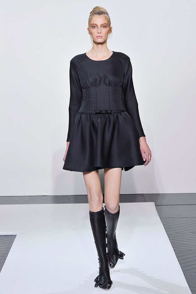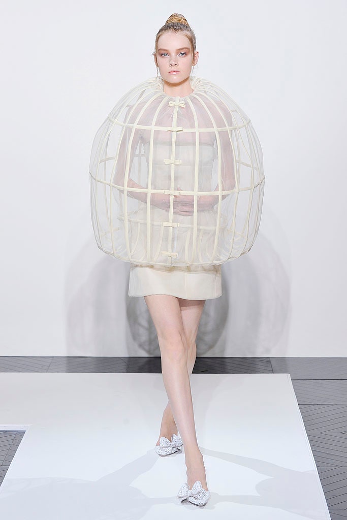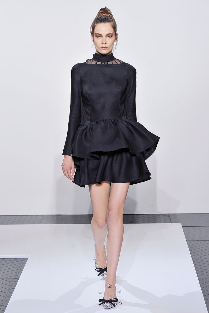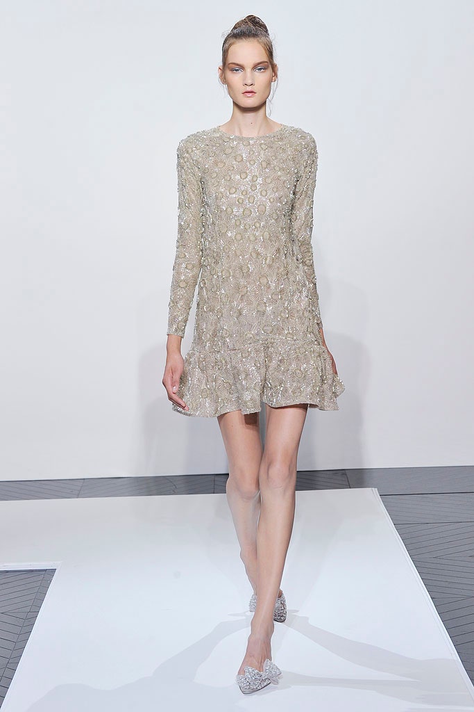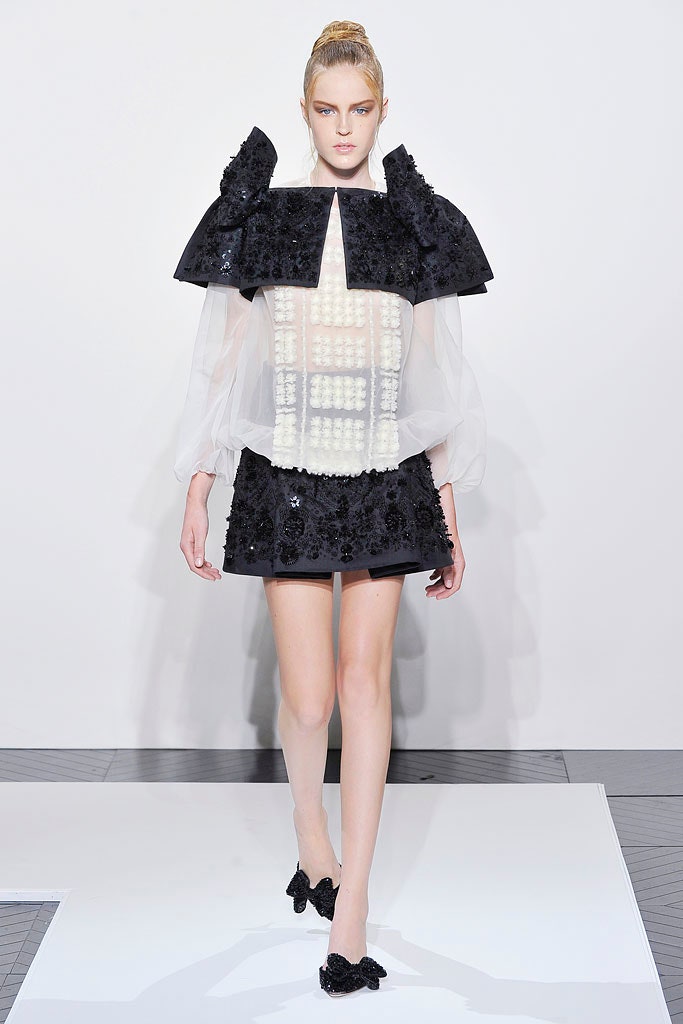 The reimagined Valentino collection takes a playful, youthful turn, with its Lolita-inspired dolly bird aesthetic. Featuring short skirts, dropped waists, and baby-doll silhouettes, the collection is undeniably fun, embracing bold shapes and preppy energy. The pieces exude “pretty couture” energy, with every look showcasing a whimsical, statement-making element. However, while the clothes are beautiful, they feel perhaps too youthful for a couture line. It’s an interesting departure from Valentino’s usual lines, but the collection falls short in delivering the wow factor. Maria Grazia Chiuri and Pier Paolo Piccioli’s focus on ultrashort, sometimes high-waisted baby-doll shapes is smart, but the collection leans heavily on dropped waistlines and bows, making it feel a bit bland. The collection feels almost infantilizing, but not to a fault.