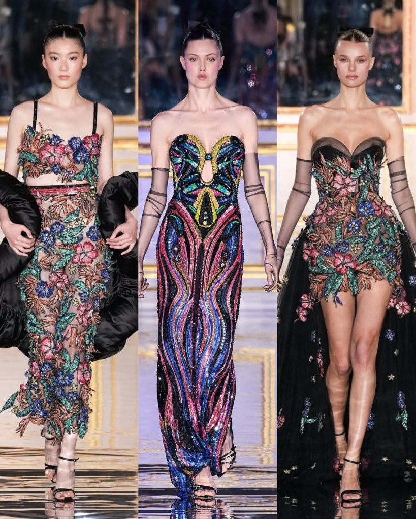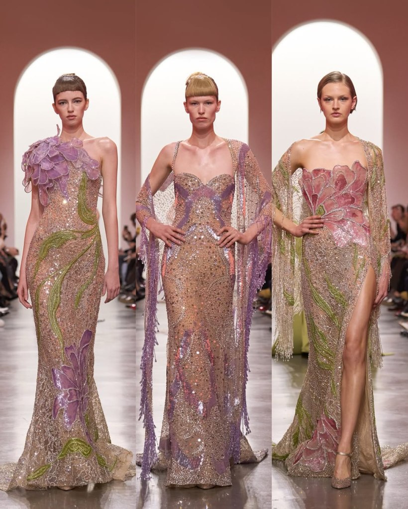 Elie Saab: Elie Saab has once again created a stunning collection. Honestly, I can’t remember the last time he had a weak season. This time, Saab took inspiration from the beauty of an Impressionist garden, with each outfit designed like a brushstroke in a painting. After celebrating his label’s 45th anniversary in Riyadh last year, his couture collection felt fresh and full of joy.