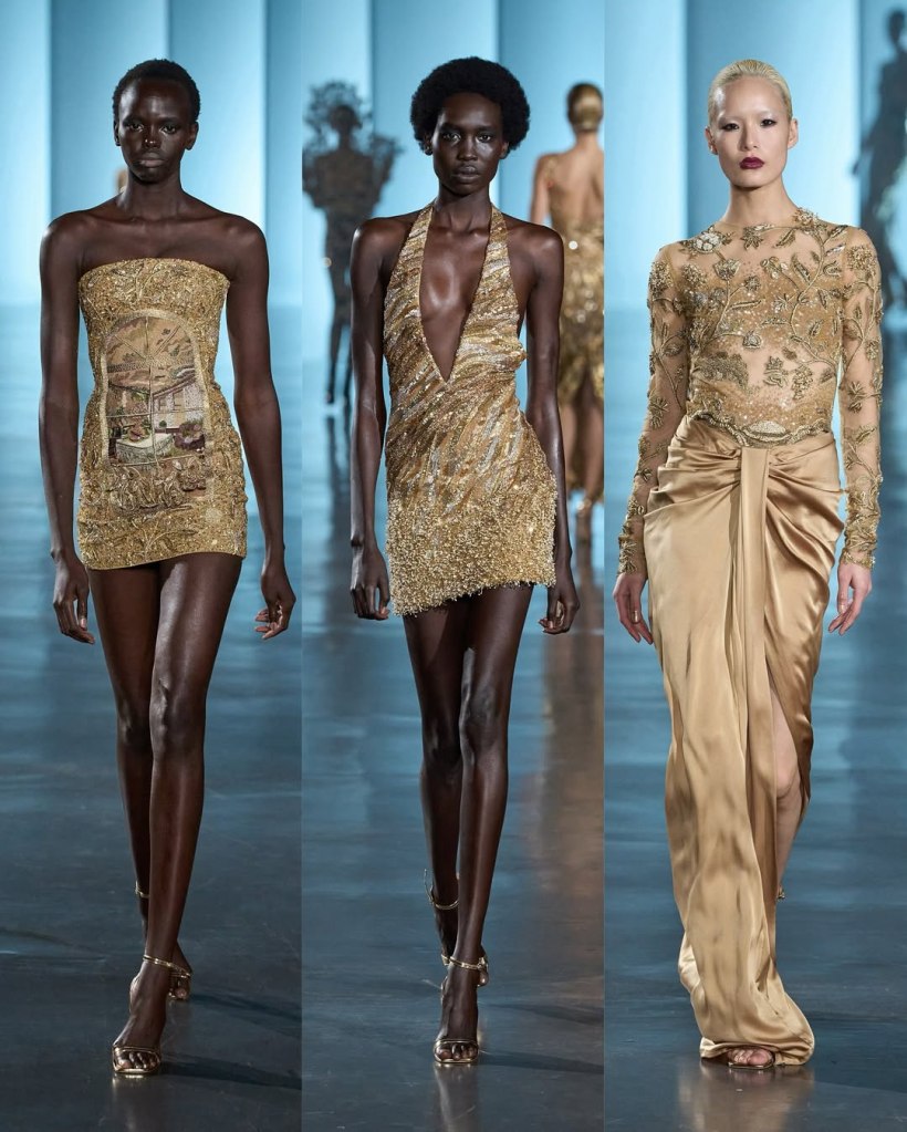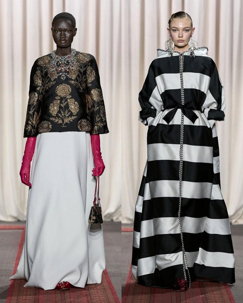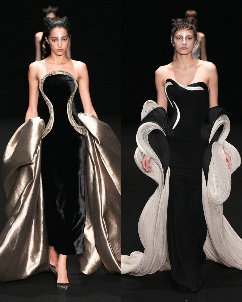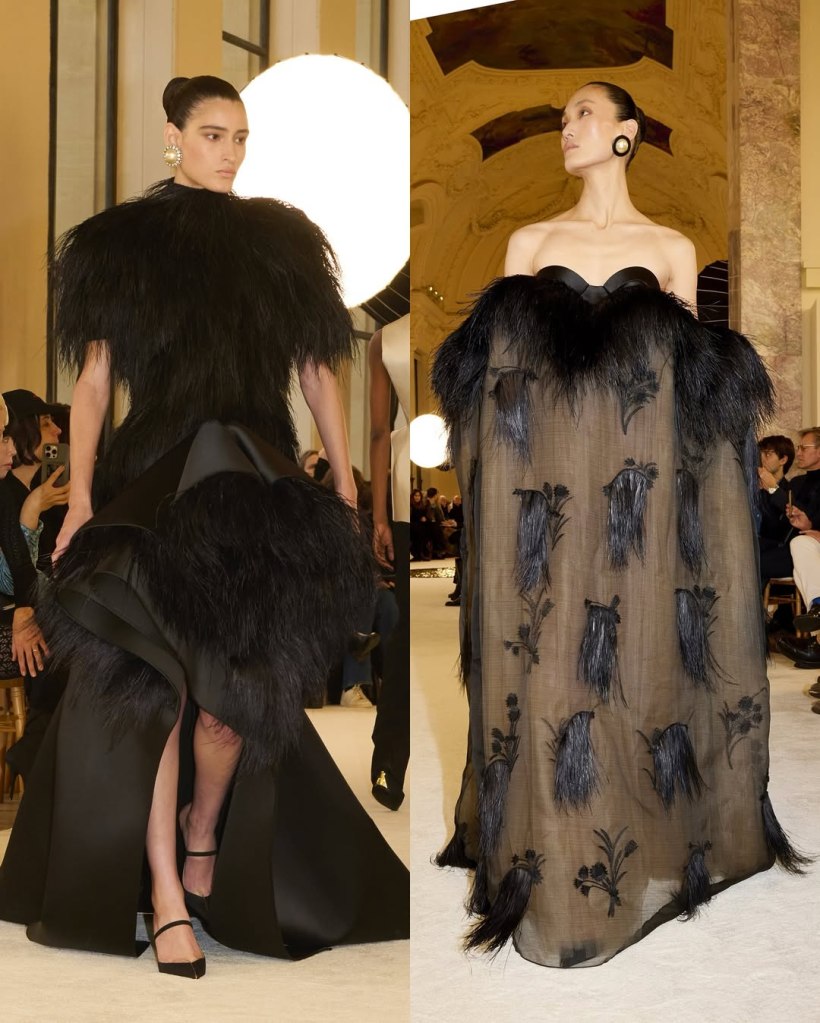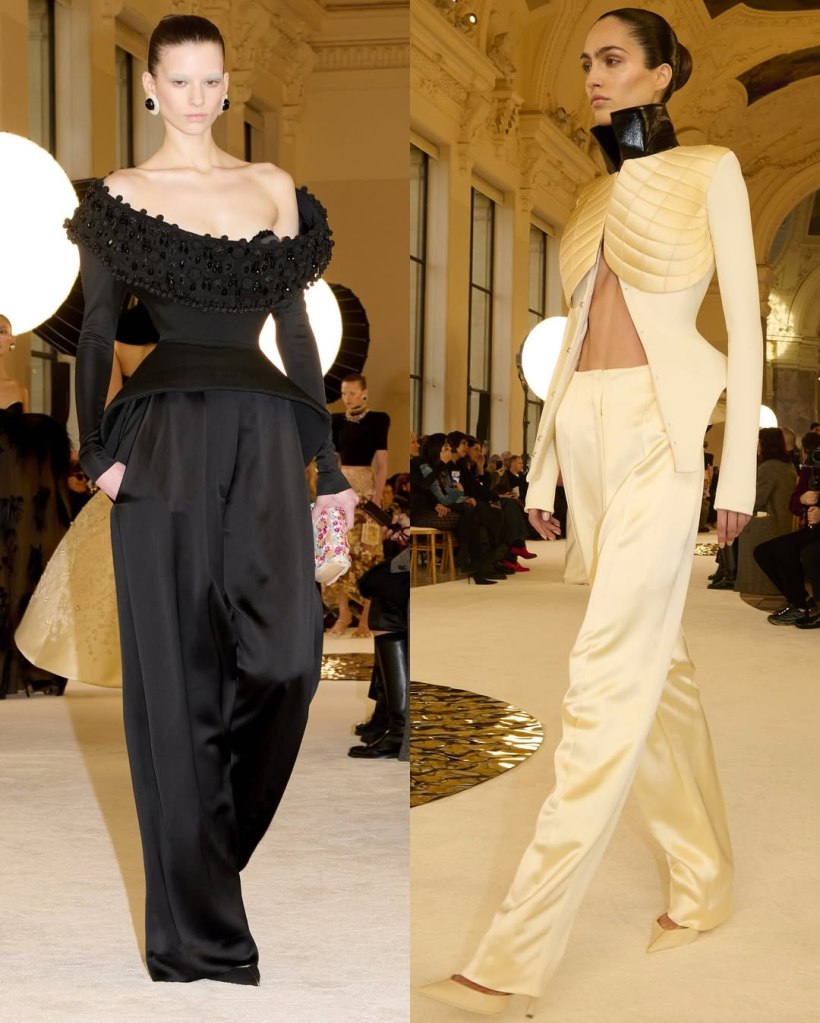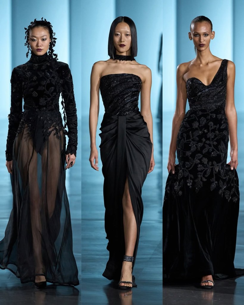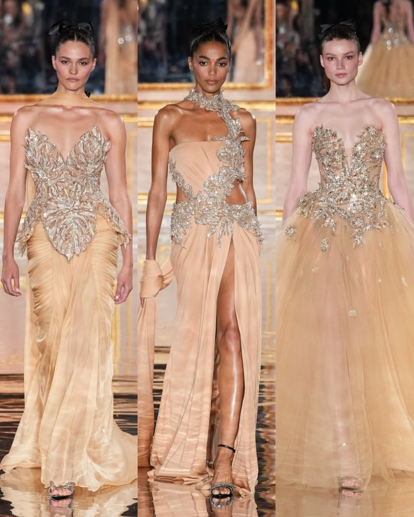 Zuhair Murad: This season, Zuhair Murad took a step back from his signature body-hugging silhouettes and instead embraced softer, more classic shapes. Think Audrey Hepburn in “Breakfast at Tiffany’s”—elegant, refined, and timeless.