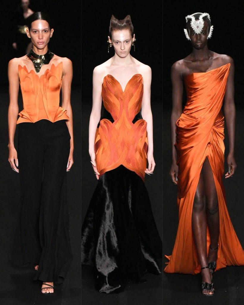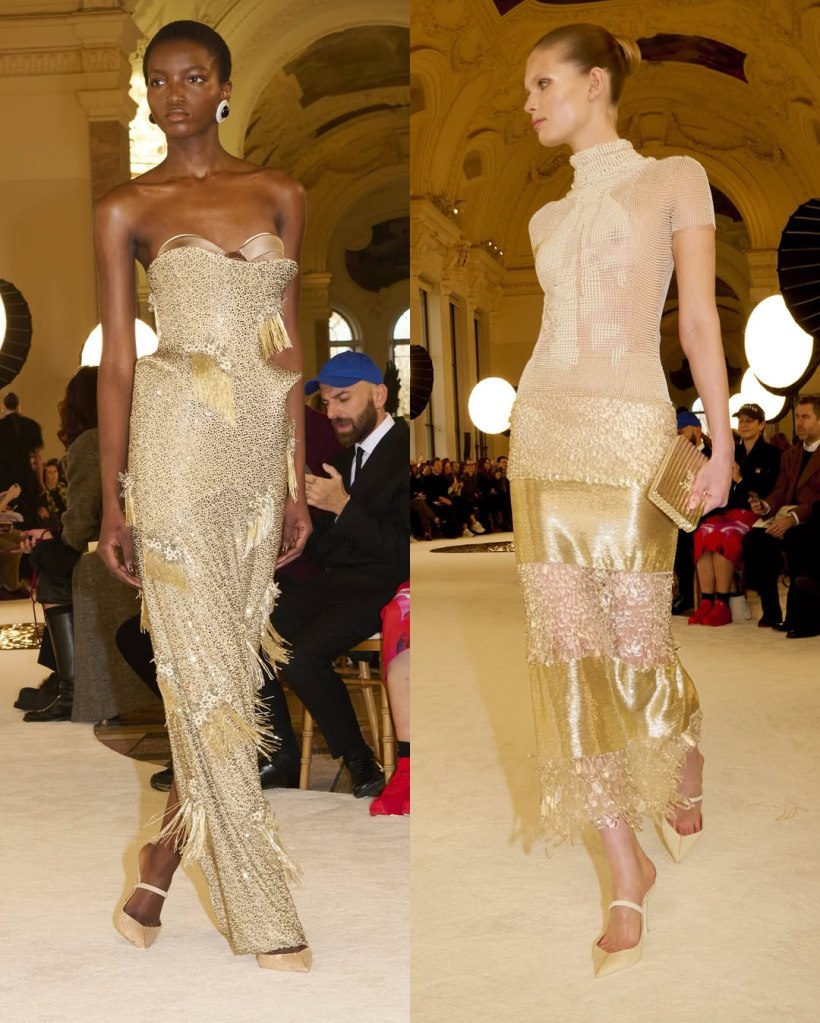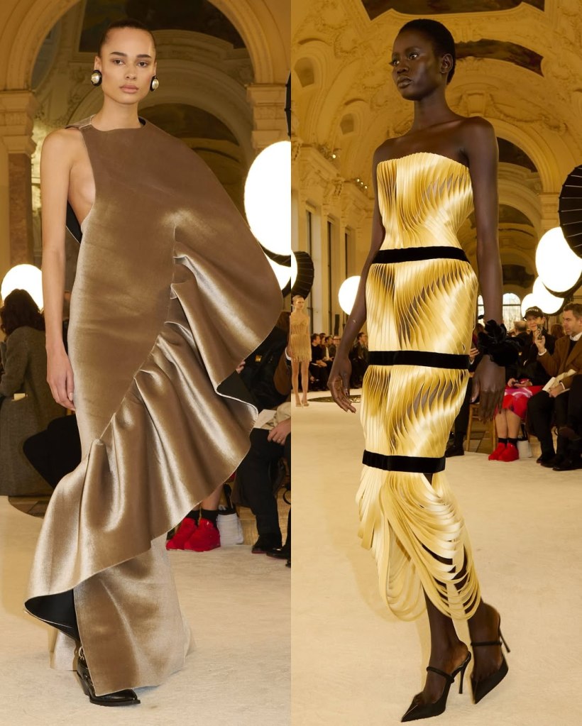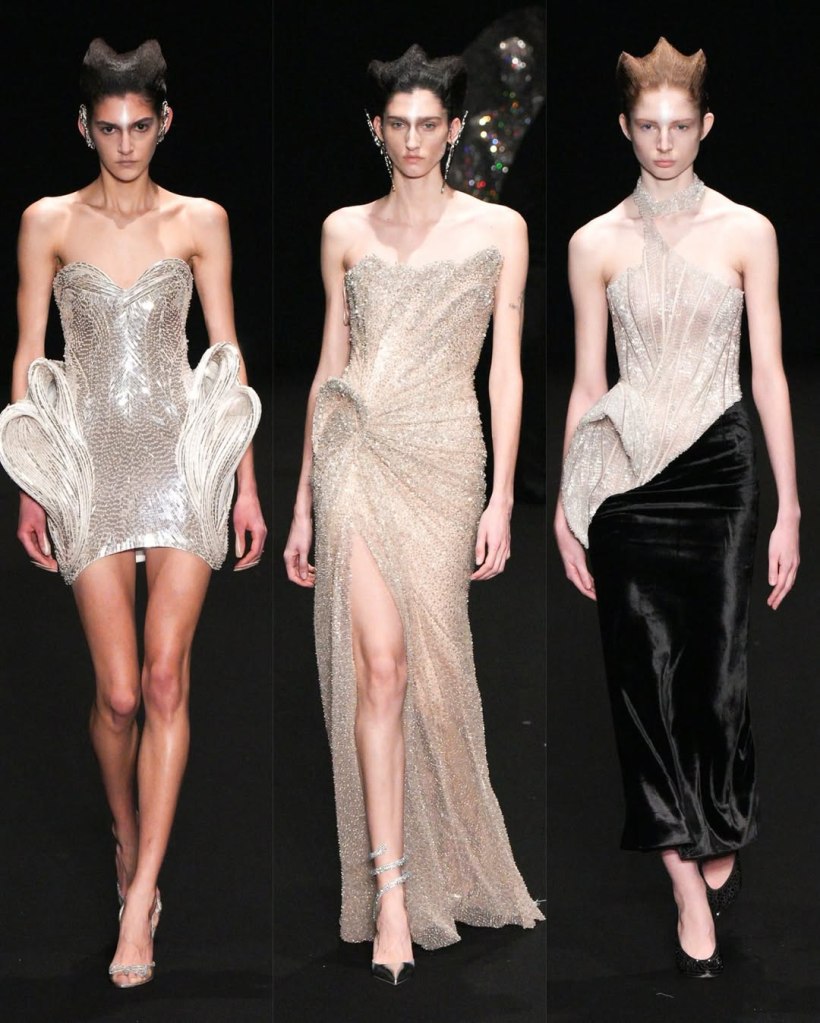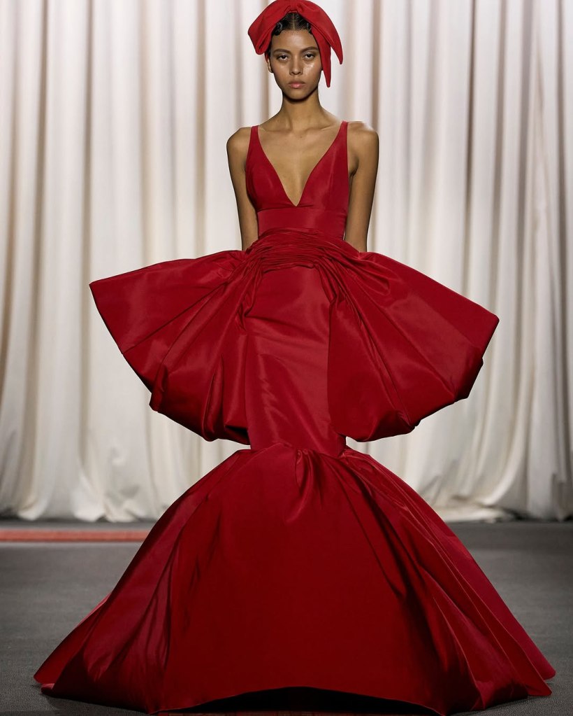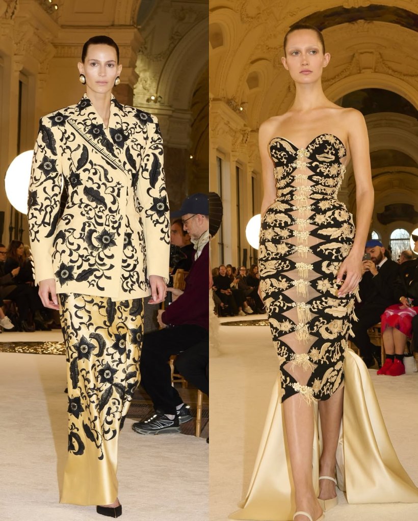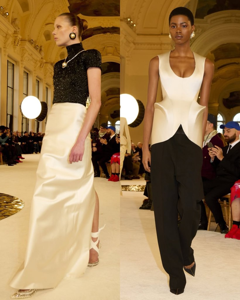 Alexandre Vauthier: This Alexandre Vauthier collection marked a shift in direction—less overtly sexy, more refined, but just as striking. With Revolve now backing his brand, the designer took a measured approach, focusing on exquisite tailoring and lux fabrics rather than all-out drama.