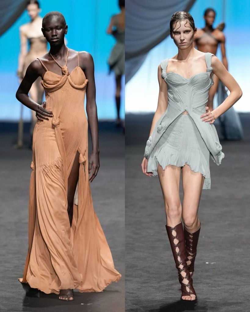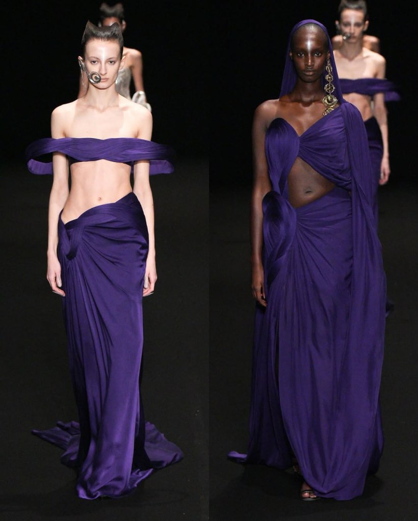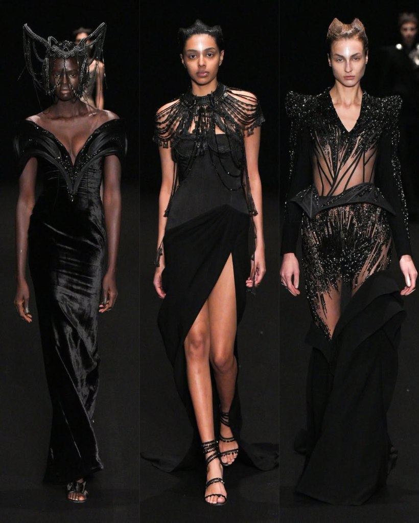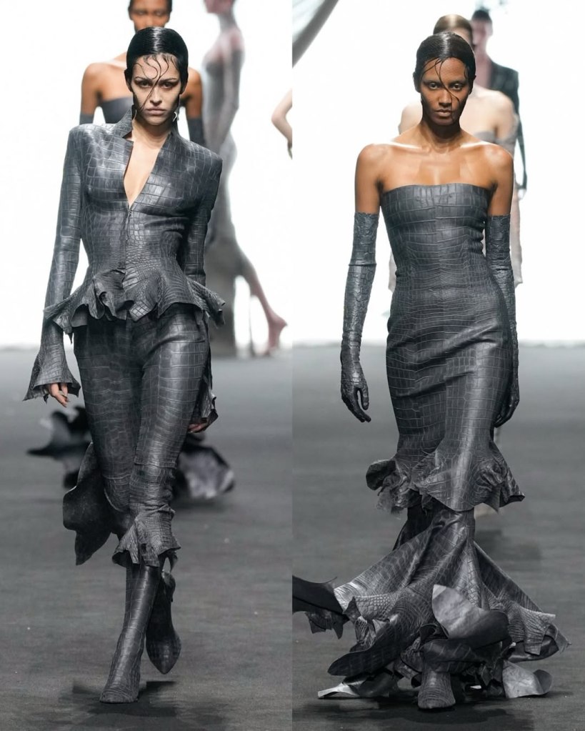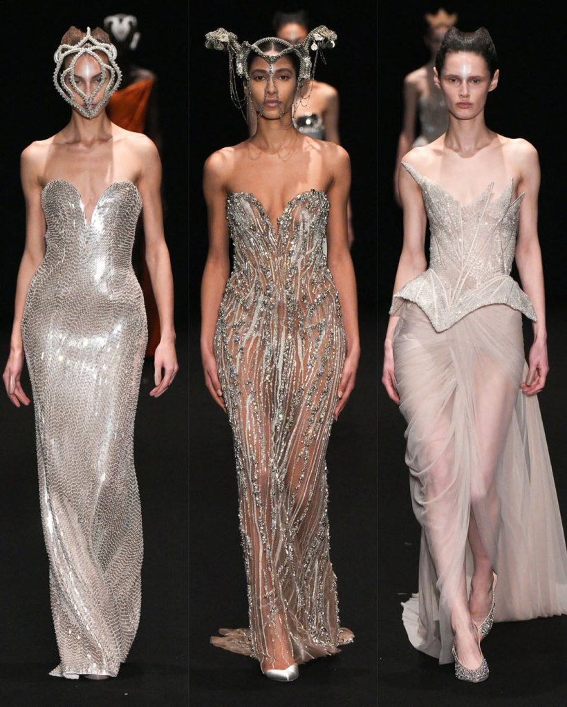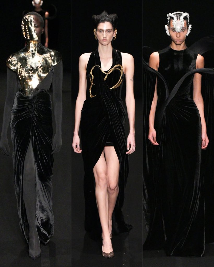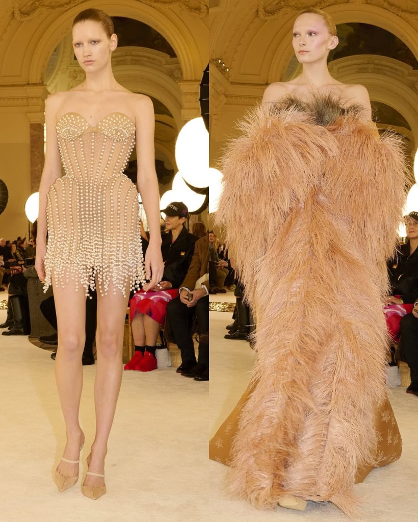 Alexandre Vauthier: This Alexandre Vauthier collection marked a shift in direction—less overtly sexy, more refined, but just as striking. With Revolve now backing his brand, the designer took a measured approach, focusing on exquisite tailoring and lux fabrics rather than all-out drama.