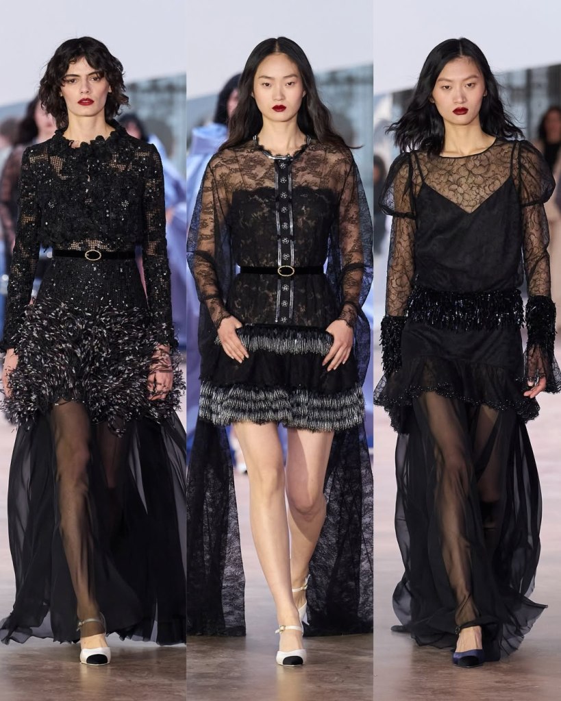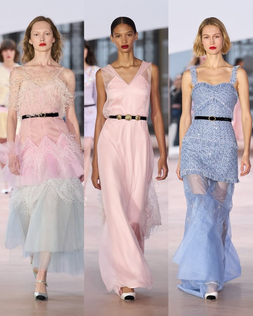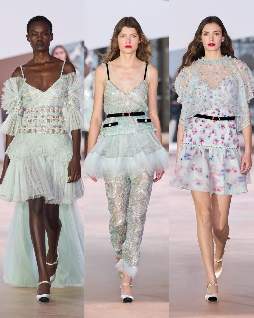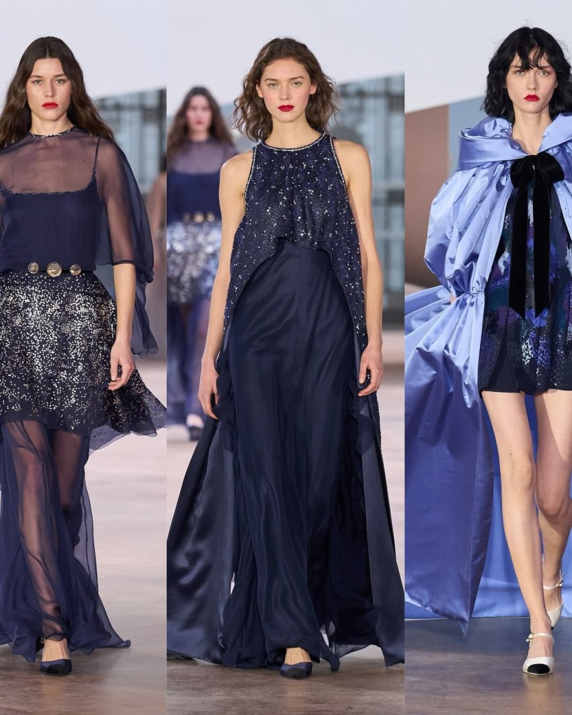 Chanel: This collection aimed to be about girly lightness and an effortless sense of cool. With the studio team holding down the fort before Matthieu Blazy’s arrival, the collection felt like a (more fun) continuation of Virginie Viard’s Chanel. The most striking aspect of this collection was its refreshing use of color. Though often associated with black and white, Gabrielle Chanel was a true colorist, working with everything from sugared almond pastels to deep midnight blues. This show celebrated that understated legacy.