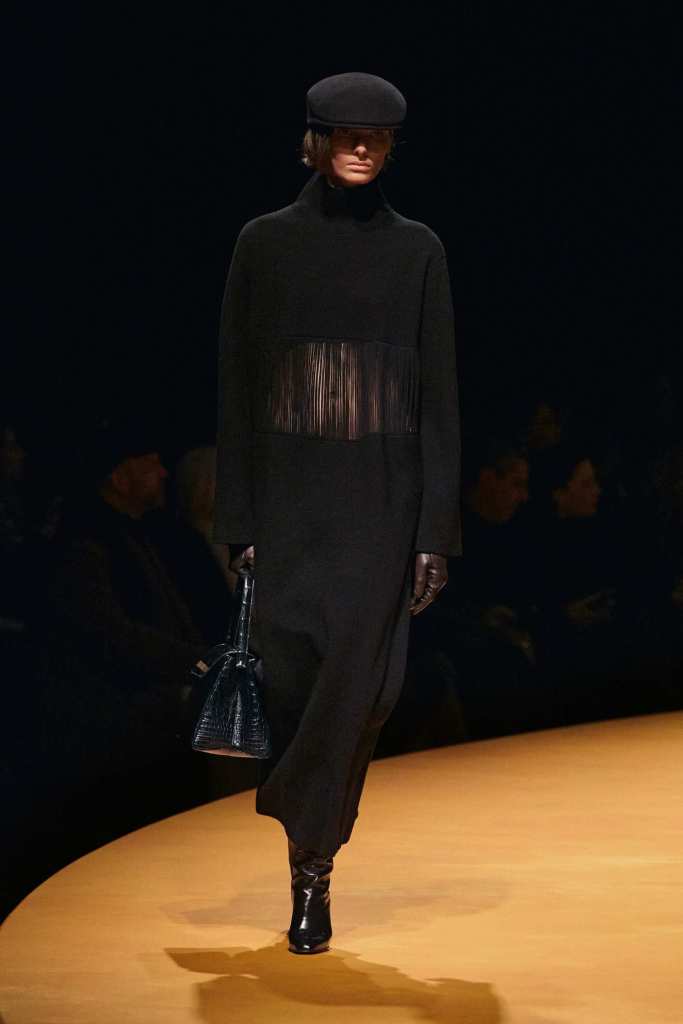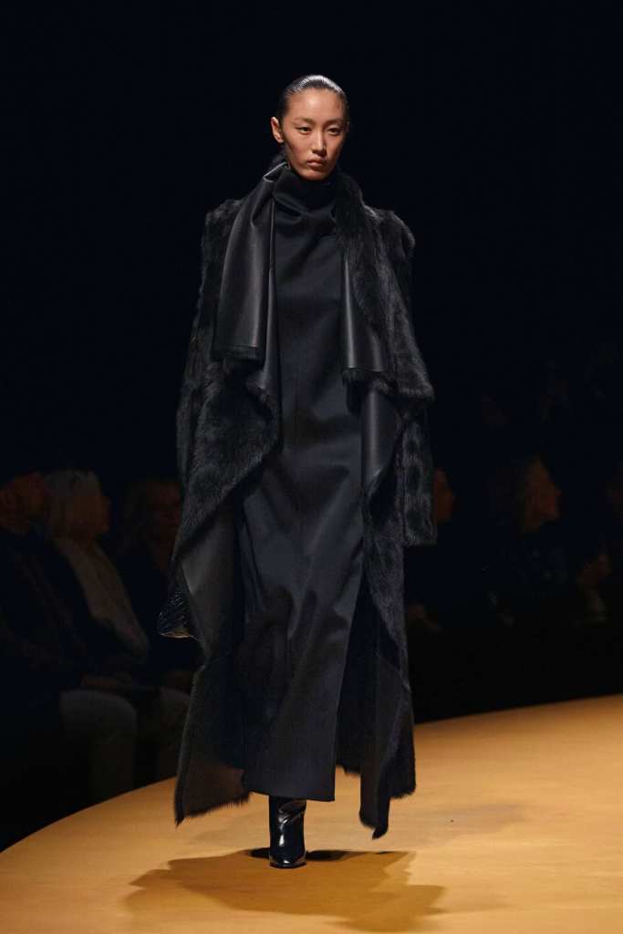 One of the standout elements of the collection was its textures. Plush furs, buttery leathers, and distressed silks gave the pieces depth and a sense of lived-in luxury.
