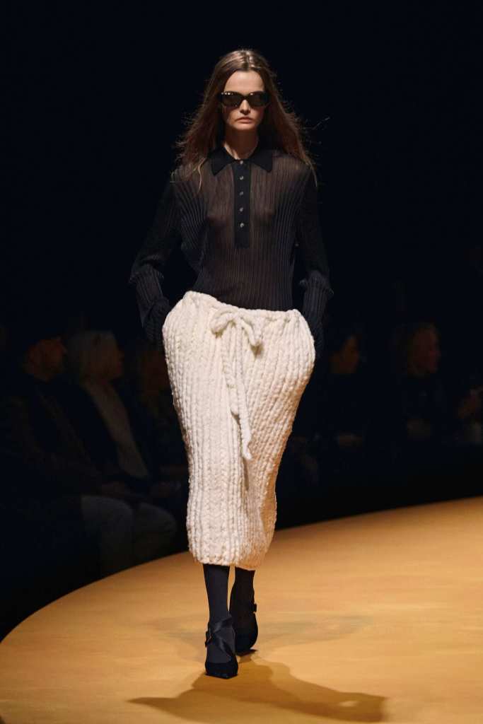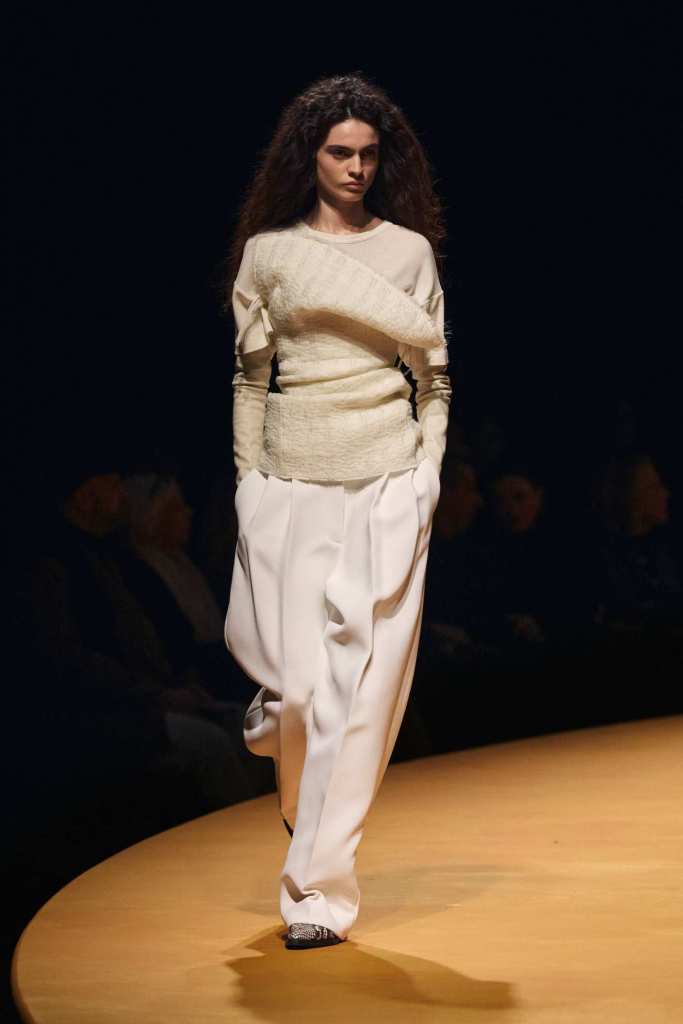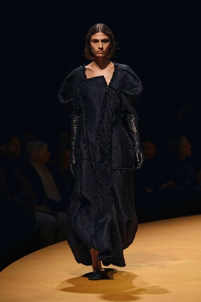 Khaite has long been the gold standard of New York Fashion Week, and this season proved why. Holstein understands how women want to dress in real life—powerful, confident, and slightly undone. Whether it was a structured shrug over a pencil skirt or a draped dress layered with opera gloves, every look felt intentional yet effortless.