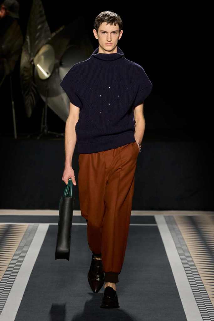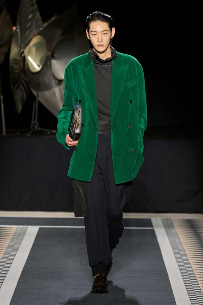 His use of Jeanne Lanvin’s personal colour, a sea-meets-sky blue, on accessories and subtle details, was another nod to heritage.