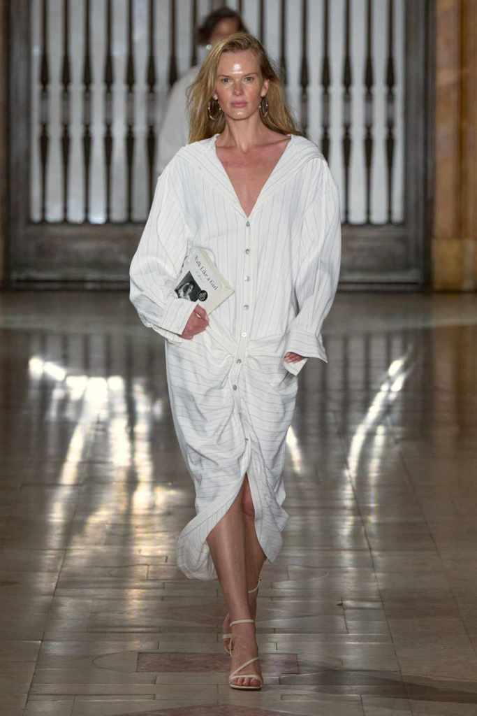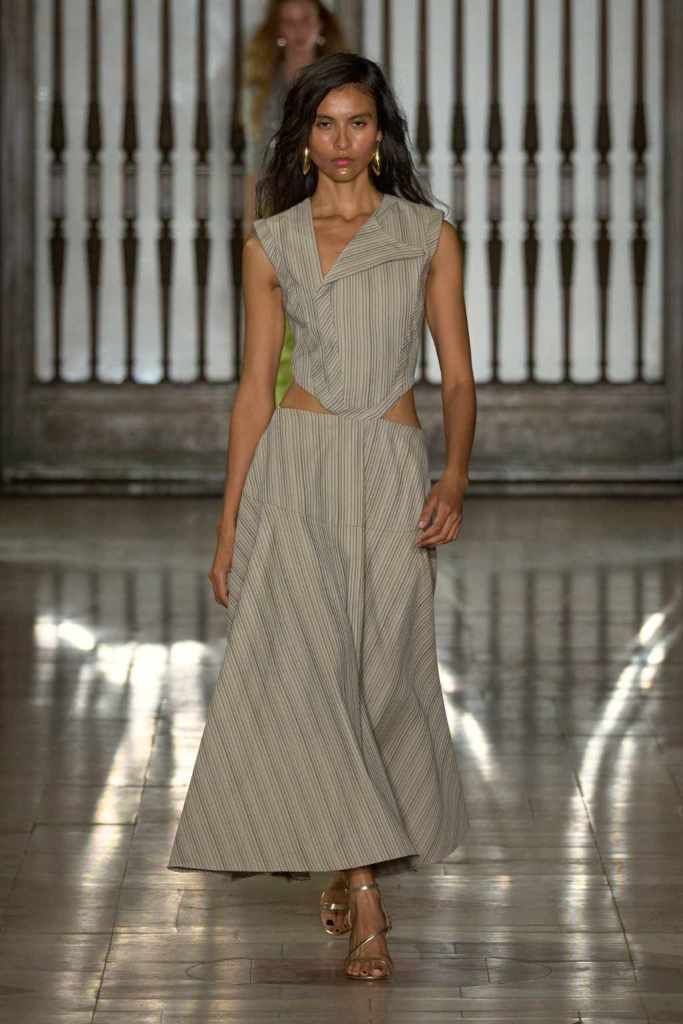 The best moments of the collection came in the form of outerwear. Whether it was a sharply structured blazer, a kimono-style coat, or a beautifully draped double-faced cashmere topper, these pieces exuded a sense of protection and comfort in uncertain times. They were the collection’s saving grace, embodying the idea of fashion as armor, a theme Gurung touched on in his show notes.