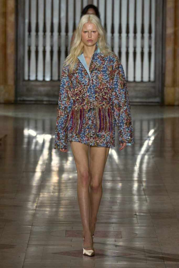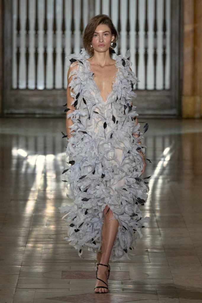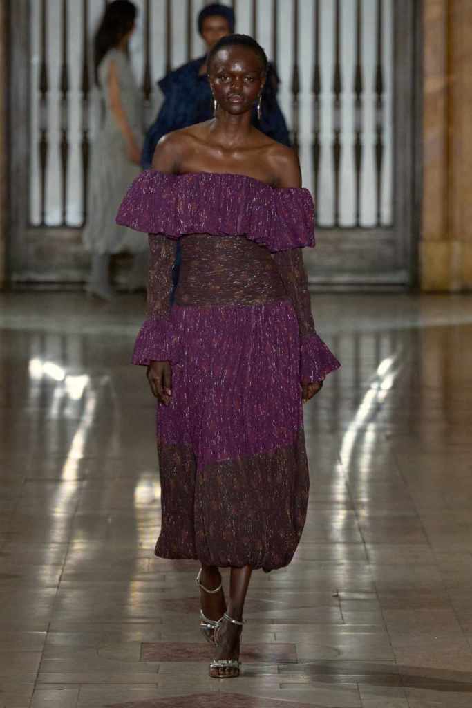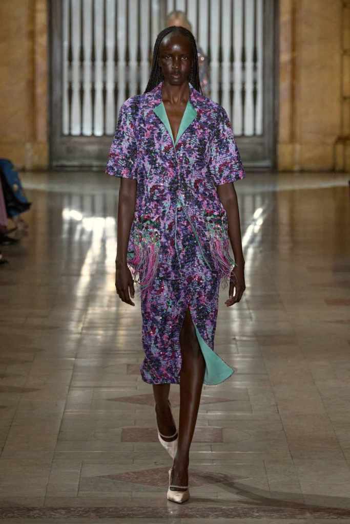 The menswear elements brought a new dimension to Gurung’s usual aesthetic, but they didn’t always feel cohesive with his signature ultra-feminine pieces. Tuxedo-inspired minidresses, metallic plissé corset dresses, and bubble skirts attempted to provide balance, yet some felt gaudy rather than glamorous—an unexpected turn for Gurung, who typically executes eveningwear with elegance.