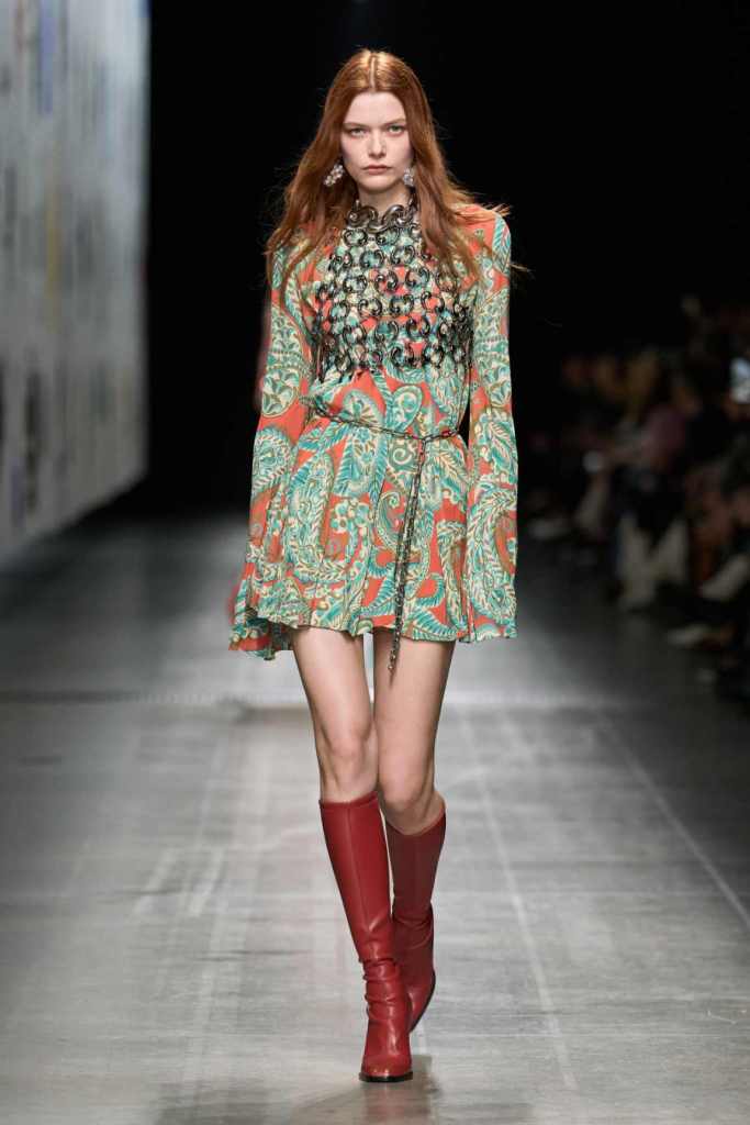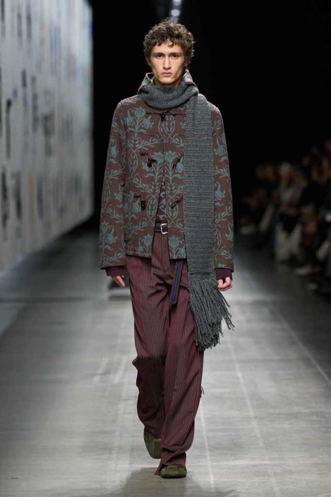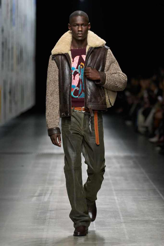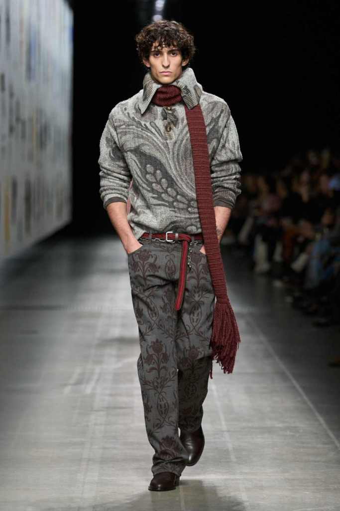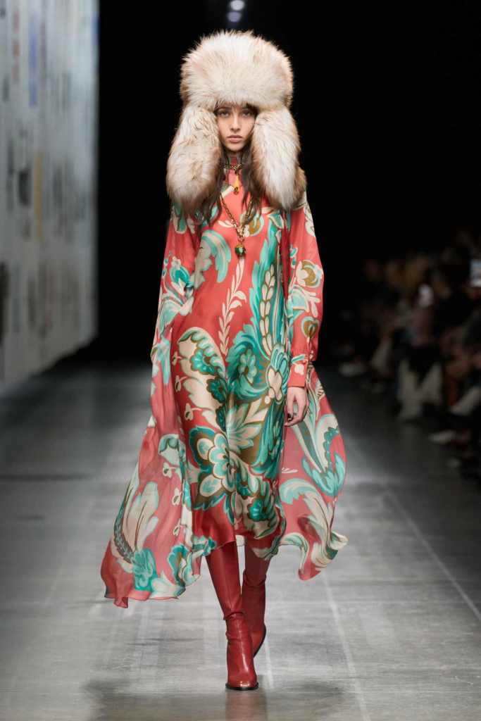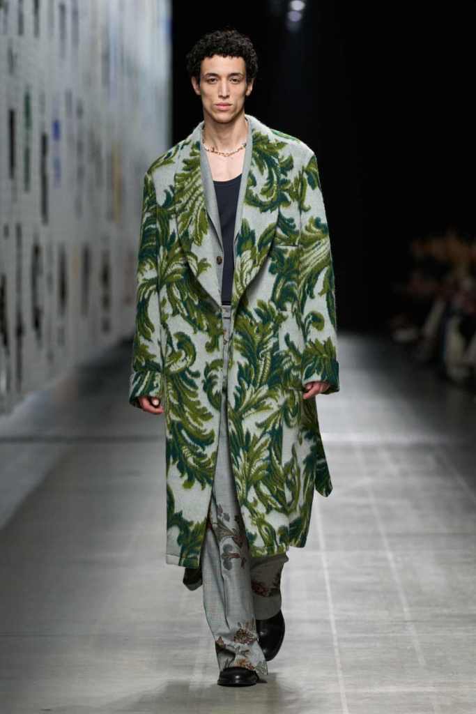 This collection was one of the best-styled shows of the season—effortless, cool, and brimming with whimsy. Marco De Vincenzo played with textures and prints in a way that felt both rich and restrained, making every look feel incredibly intentional yet completely wearable. The show opened with a knockout: a bold black-and-white striped wool fur coat, layered over slouchy paisley trousers and a knitted waistcoat. It set the tone for a collection that embraced the brand’s signature maximalism while keeping the silhouettes deeply sleek.