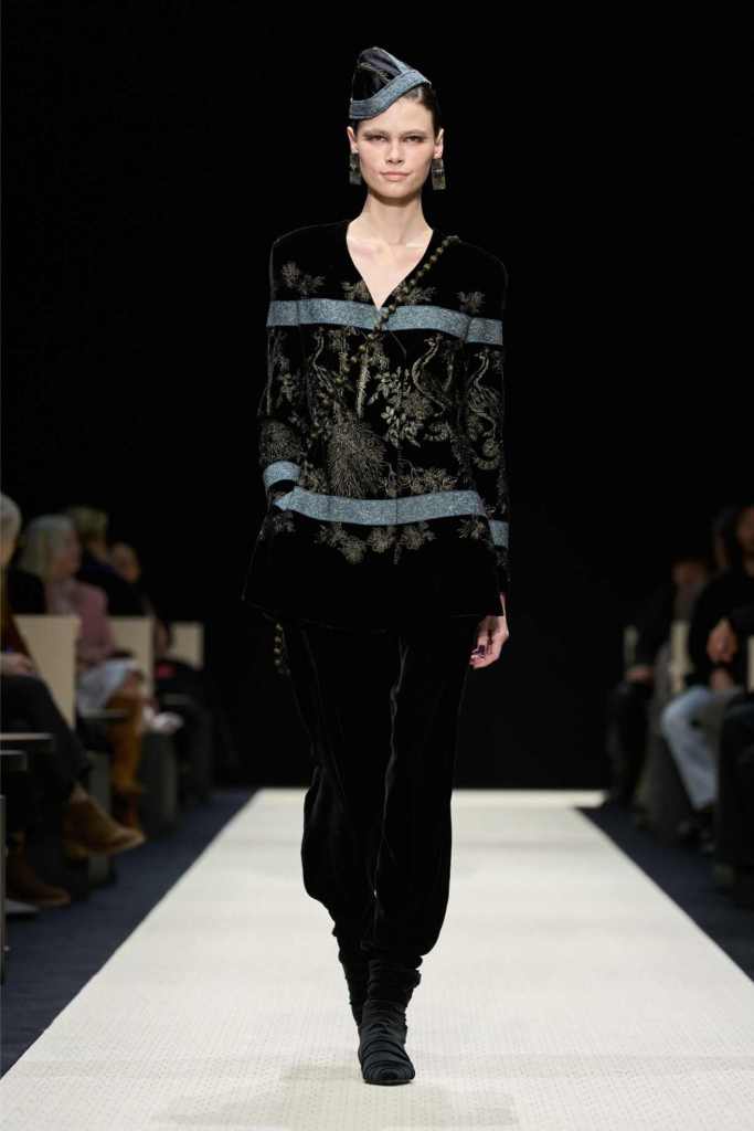 Titled “Radici,” or “Roots” in Italian, the collection was a tribute to the elements that have defined Armani’s aesthetic: fluid silhouettes, rich textures, and a refined color palette.