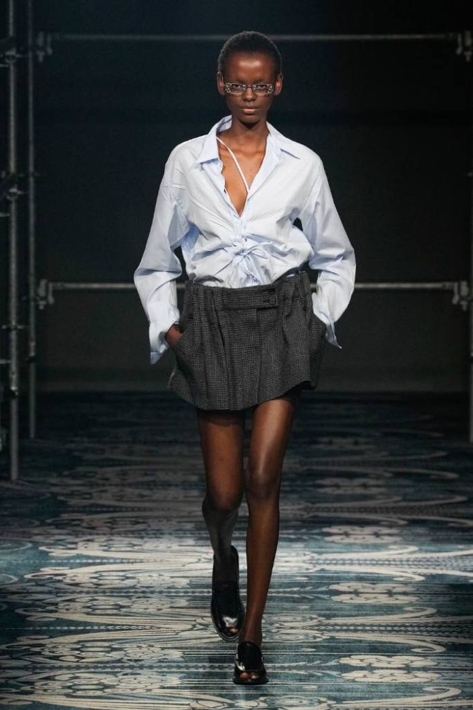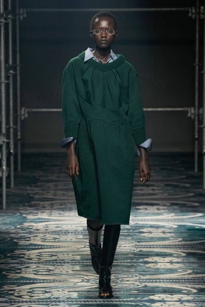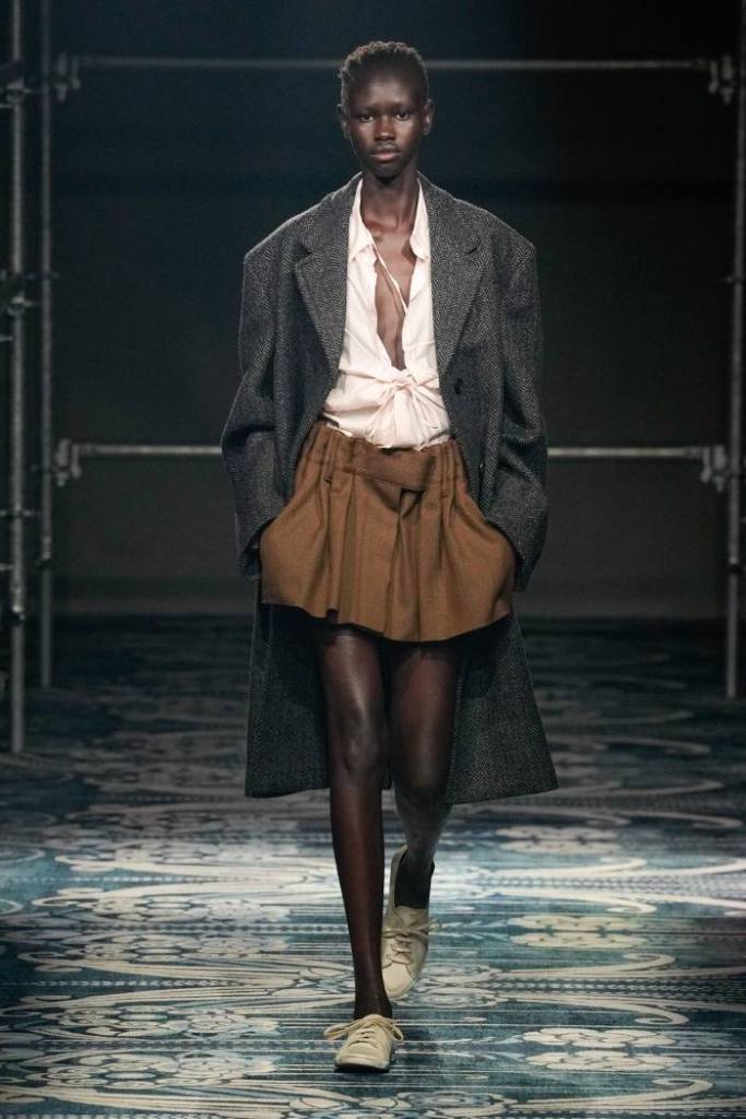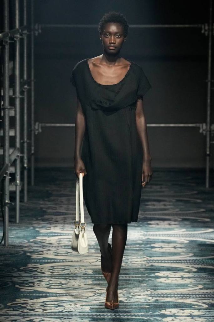 While the collection carried Prada’s signature intellectualism, it at times teetered on self-indulgence. The deconstructed dresses, the rough-hewn tailoring, the intentionally “off” proportions. Prada has always been about friction, about balancing the cerebral with the desirable, and this season, the scales tipped toward theory rather than practicality. Even when the clothes feel challenging, the brand’s influence remains undeniable. The Prada woman isn’t dictated by what’s “in” right now; she wears past collections with the same ease as current ones, seamlessly mixing eras and ideas.