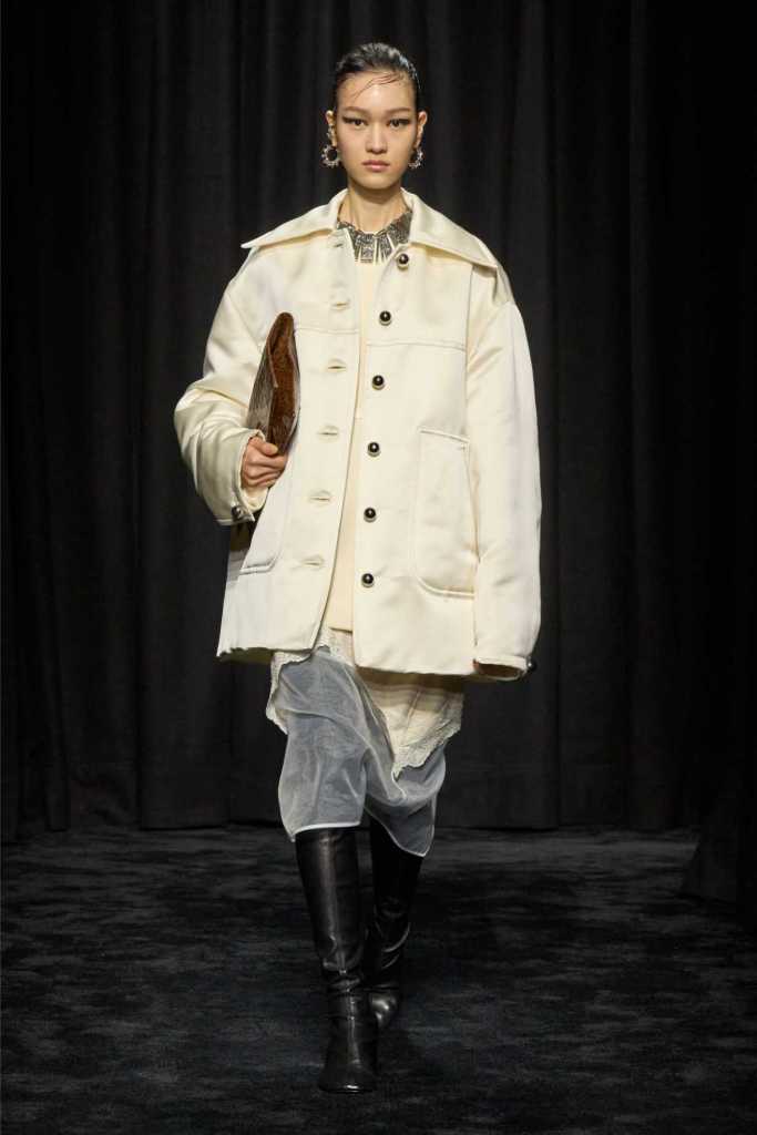 The collection was a reminder of how much the Meiers have evolved at Jil Sander. What began as a study in minimalism and quiet femininity has transformed into something far edgier—punk, yet still elegant. Their gender-fluid approach to tailoring also reflected a broader industry shift.
