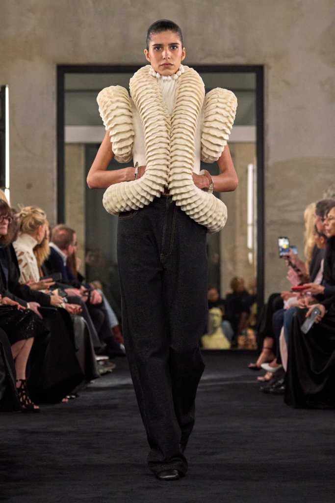 Set in the brand’s Paris atelier, the collection was a tribute to the goddess Venus, a timeless symbol of beauty, femininity, and power. Pieter Mulier, the brand’s creative director, took these themes and transformed them into a striking display of form, texture, and movement.