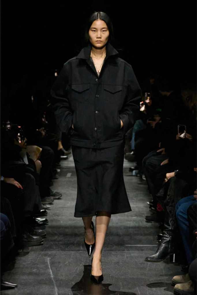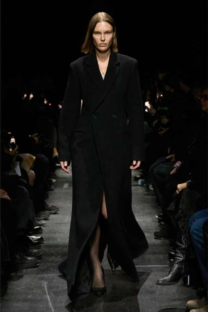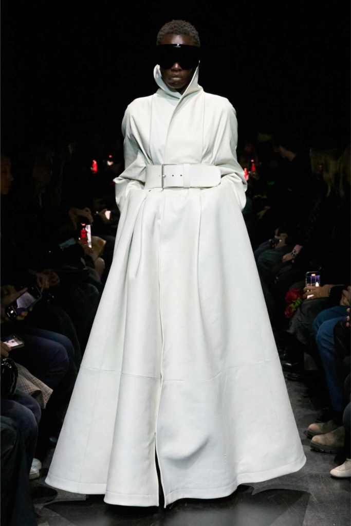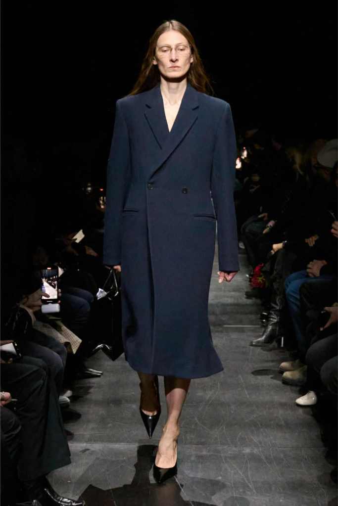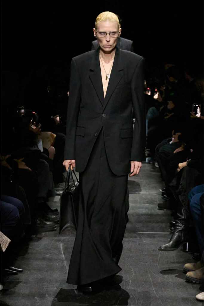 Demna called this collection “Standard,” a study of basic wardrobe pieces reinterpreted through his lens. But if anything, it highlighted how much he’s boxed himself into his own aesthetic. The show notes talked about garments being subtly twisted into a “fashion context,” but at this point, does that even mean anything? The most striking pieces—sculpted coats, a corseted white shirt—were overshadowed by the rest.
