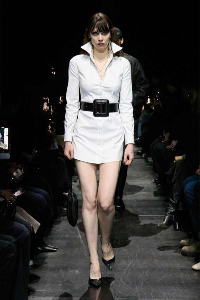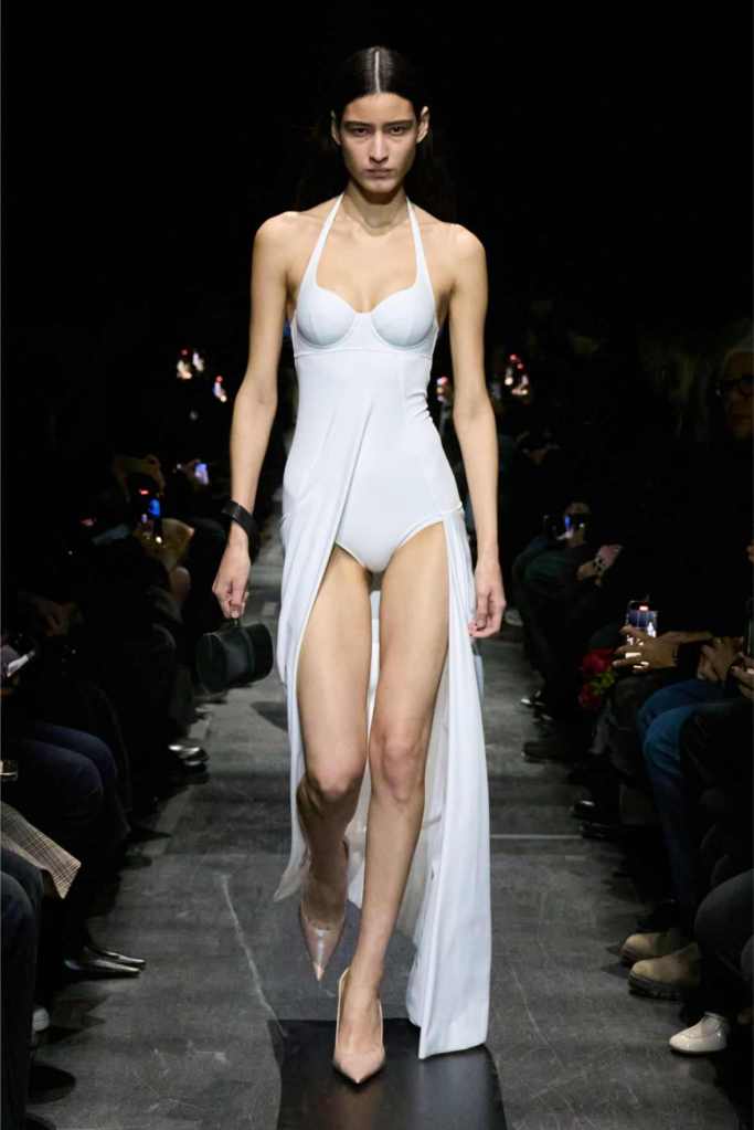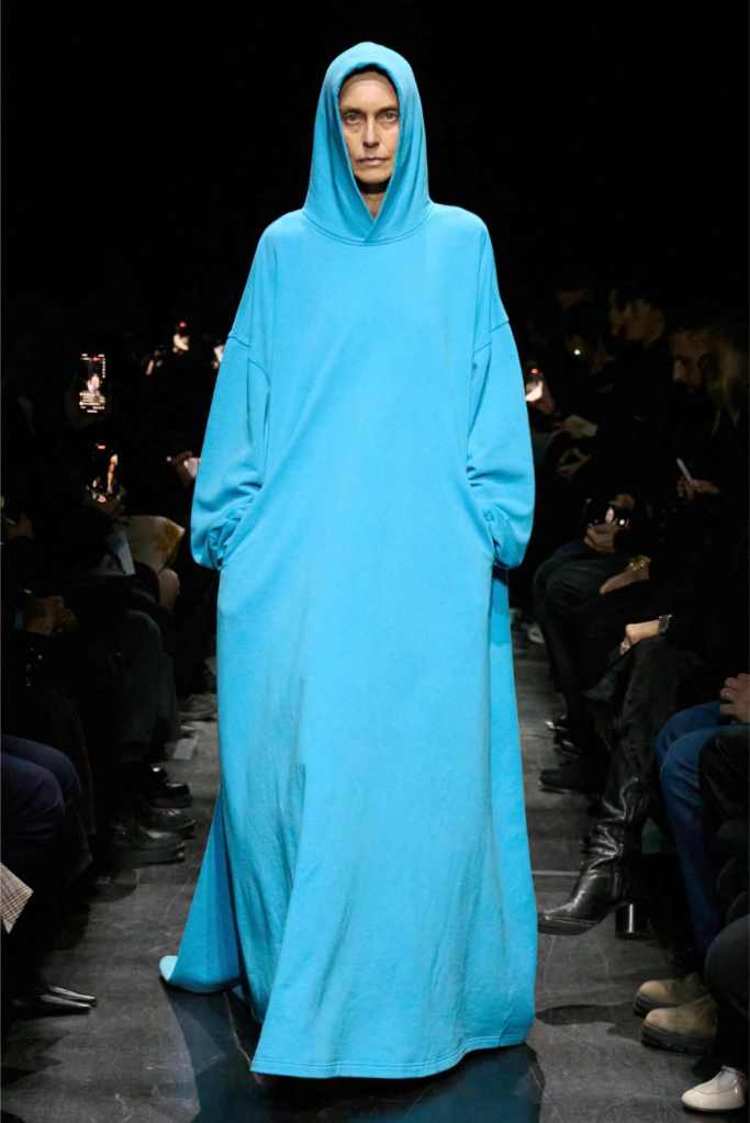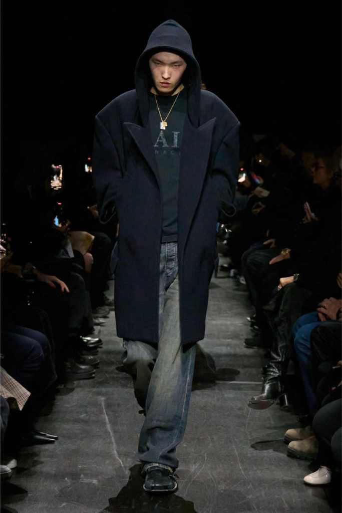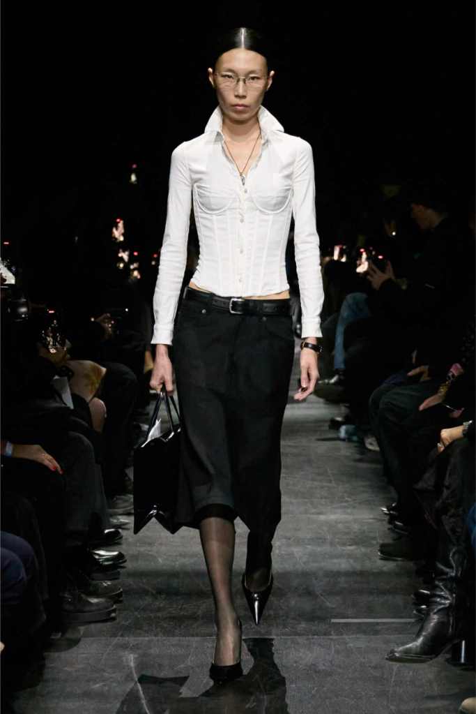 Demna called this collection “Standard,” a study of basic wardrobe pieces reinterpreted through his lens. But if anything, it highlighted how much he’s boxed himself into his own aesthetic. The show notes talked about garments being subtly twisted into a “fashion context,” but at this point, does that even mean anything? The most striking pieces—sculpted coats, a corseted white shirt—were overshadowed by the rest.