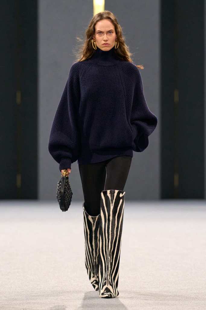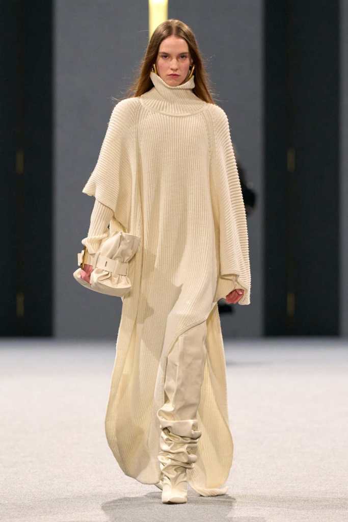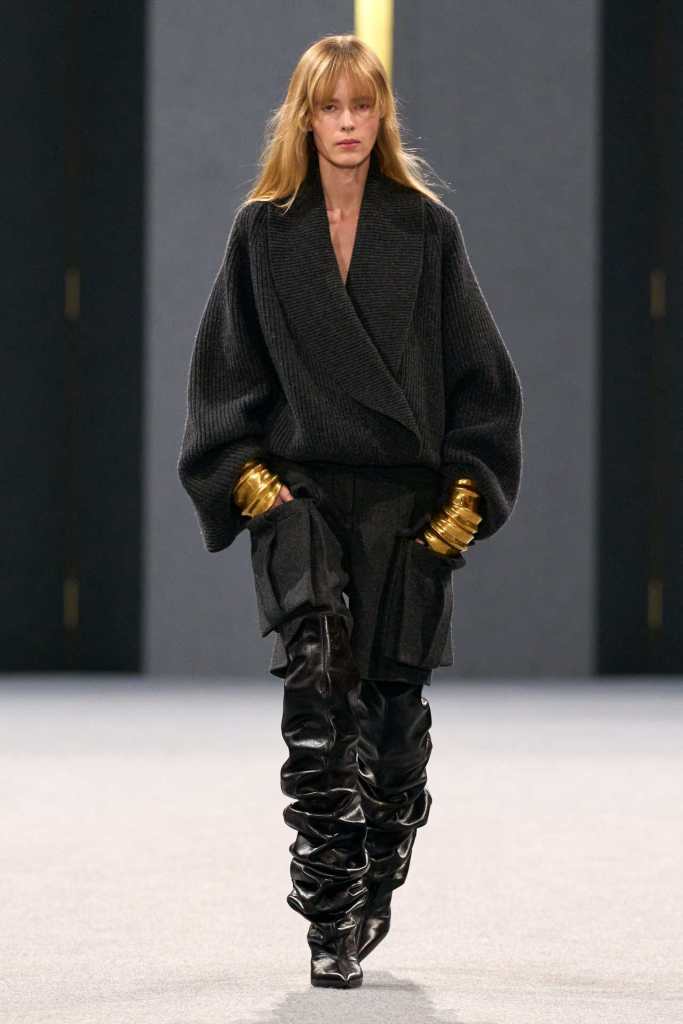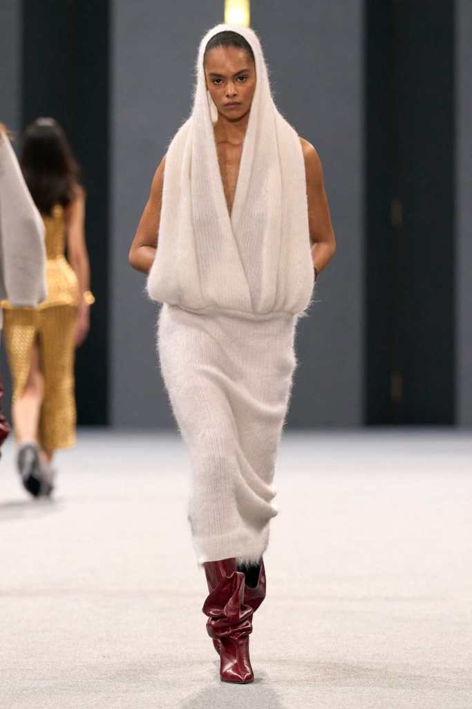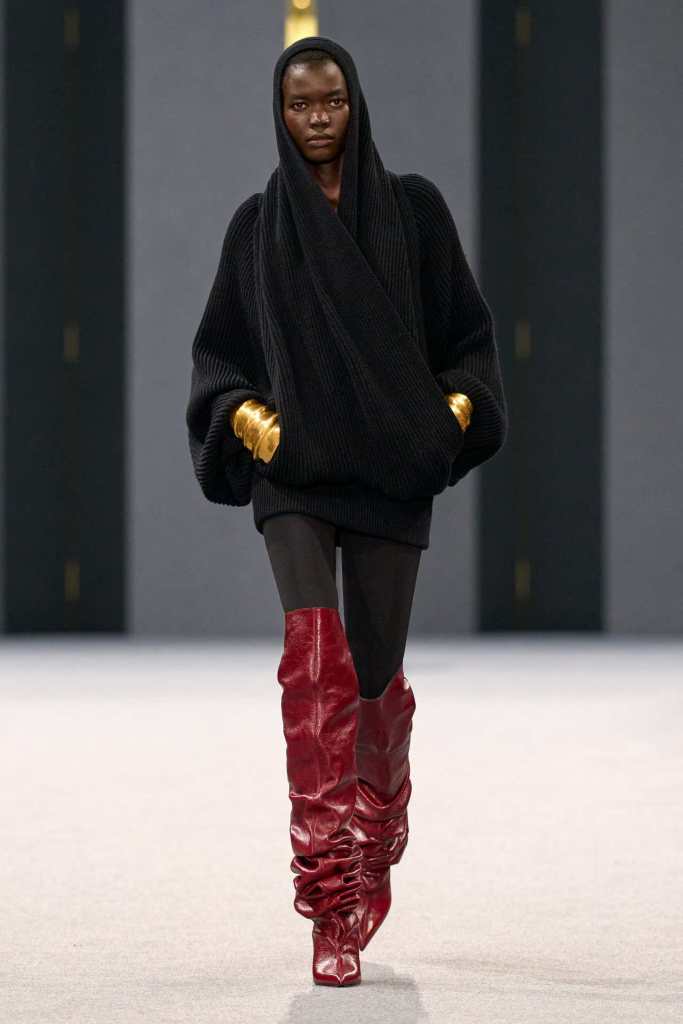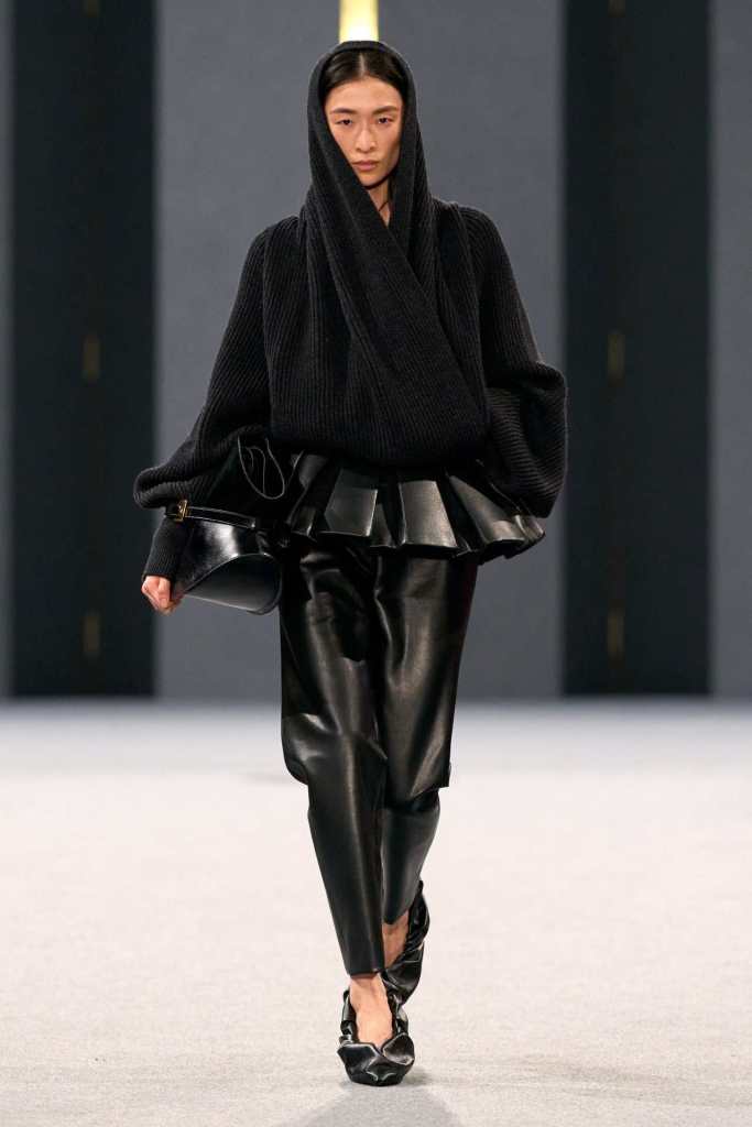 Of course, not everything landed perfectly. The footwear, particularly the slouchy leather pumps, felt awkward and clunky rather than chic. And while the knitwear was undeniably luxurious, some pieces risked swallowing the models whole with their oversized cuts.