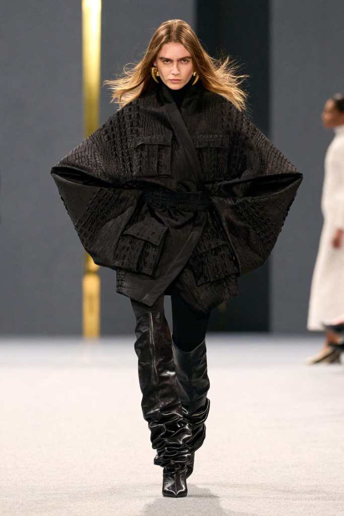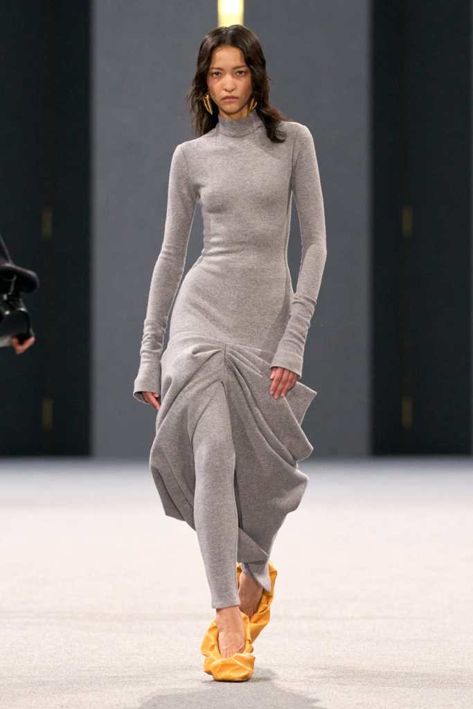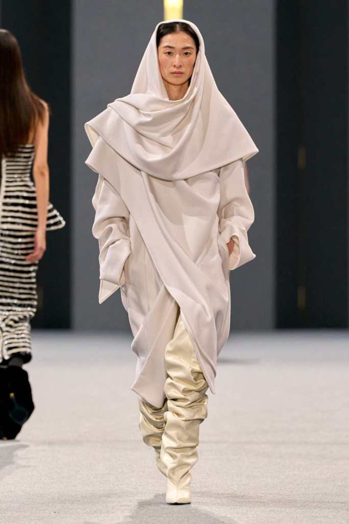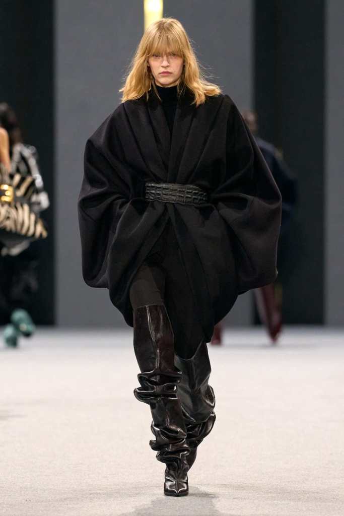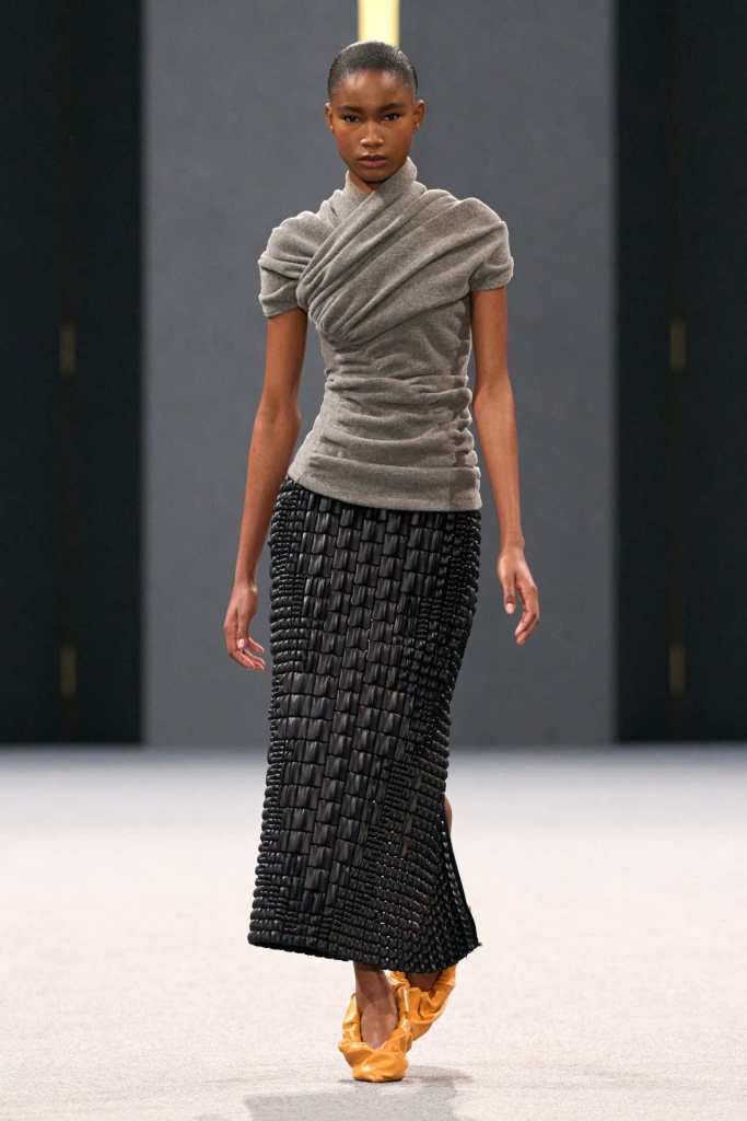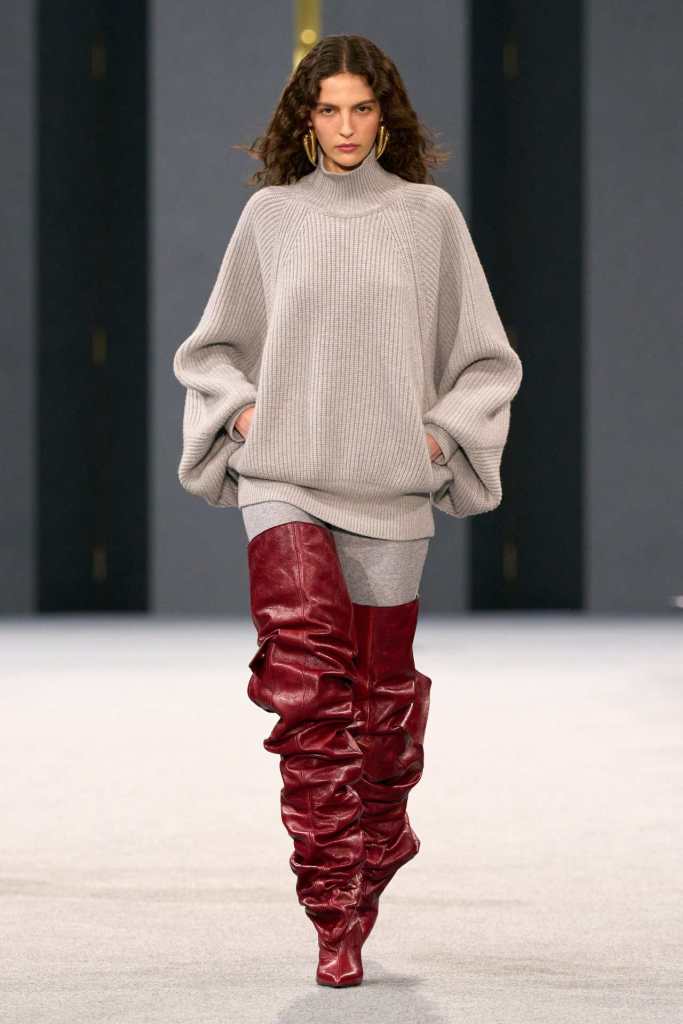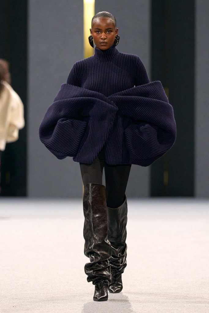 Of course, not everything landed perfectly. The footwear, particularly the slouchy leather pumps, felt awkward and clunky rather than chic. And while the knitwear was undeniably luxurious, some pieces risked swallowing the models whole with their oversized cuts.
