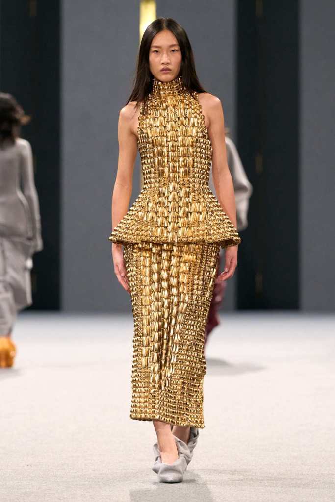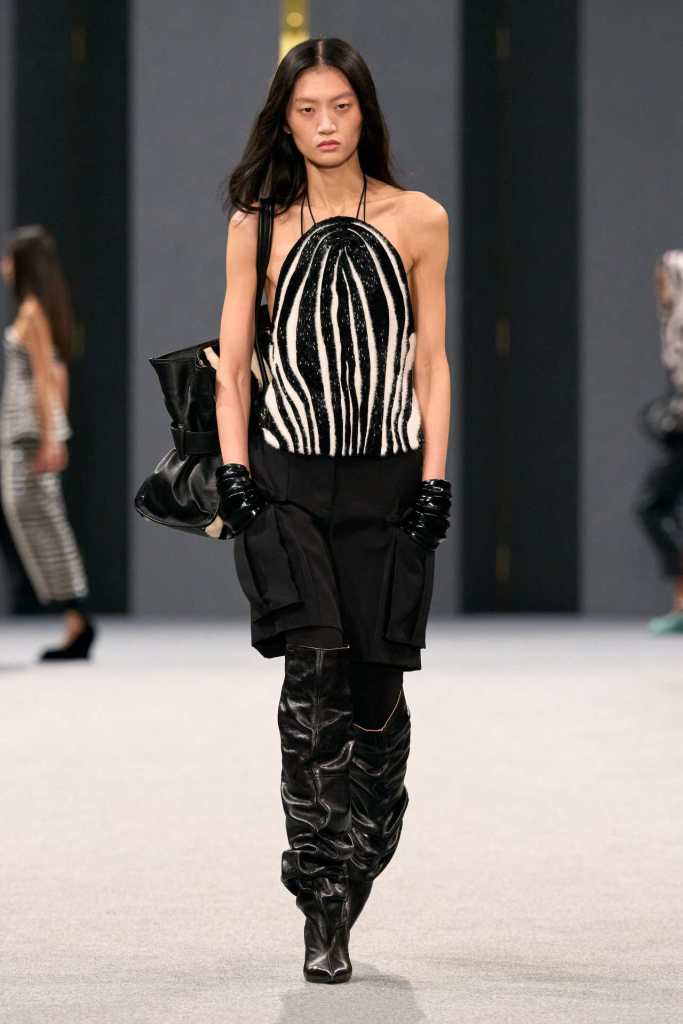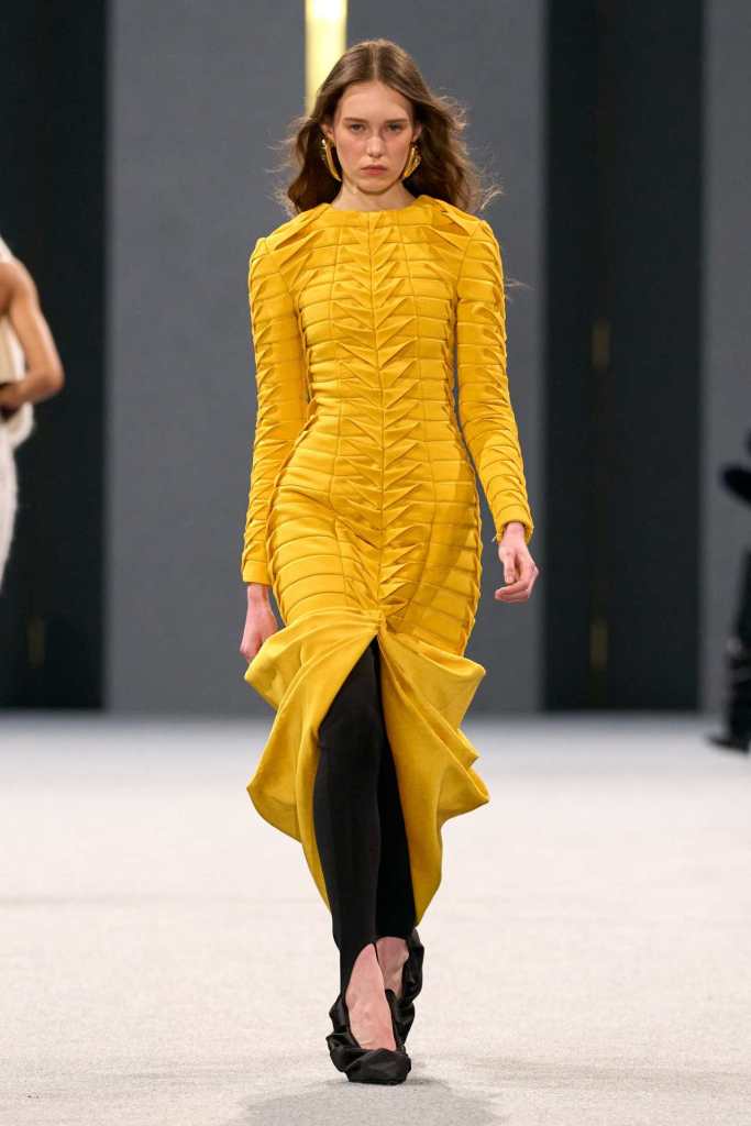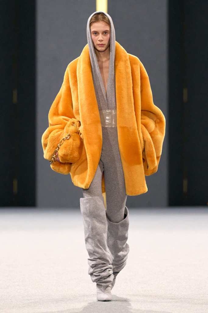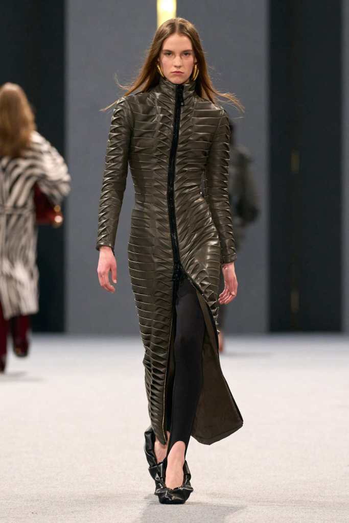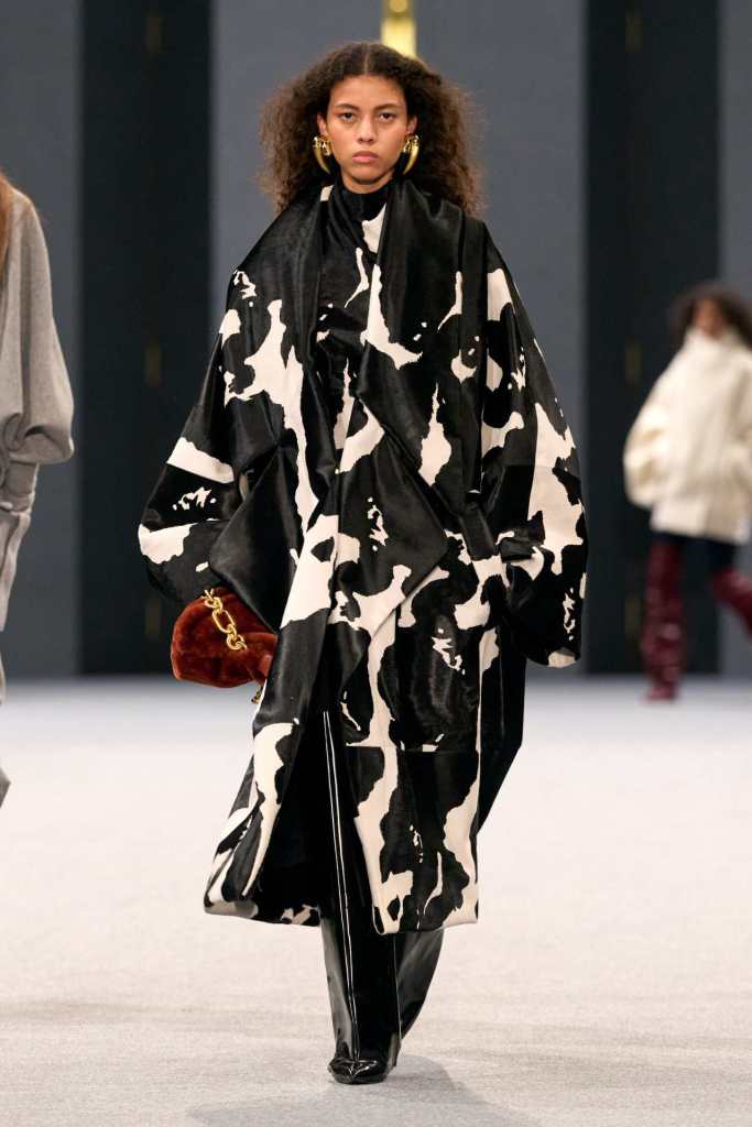 Of course, not everything landed perfectly. The footwear, particularly the slouchy leather pumps, felt awkward and clunky rather than chic. And while the knitwear was undeniably luxurious, some pieces risked swallowing the models whole with their oversized cuts.