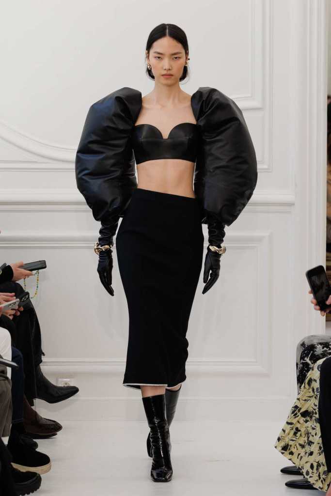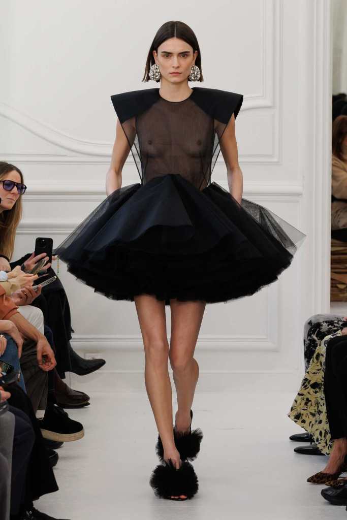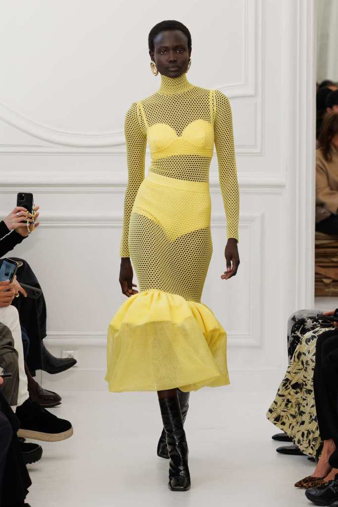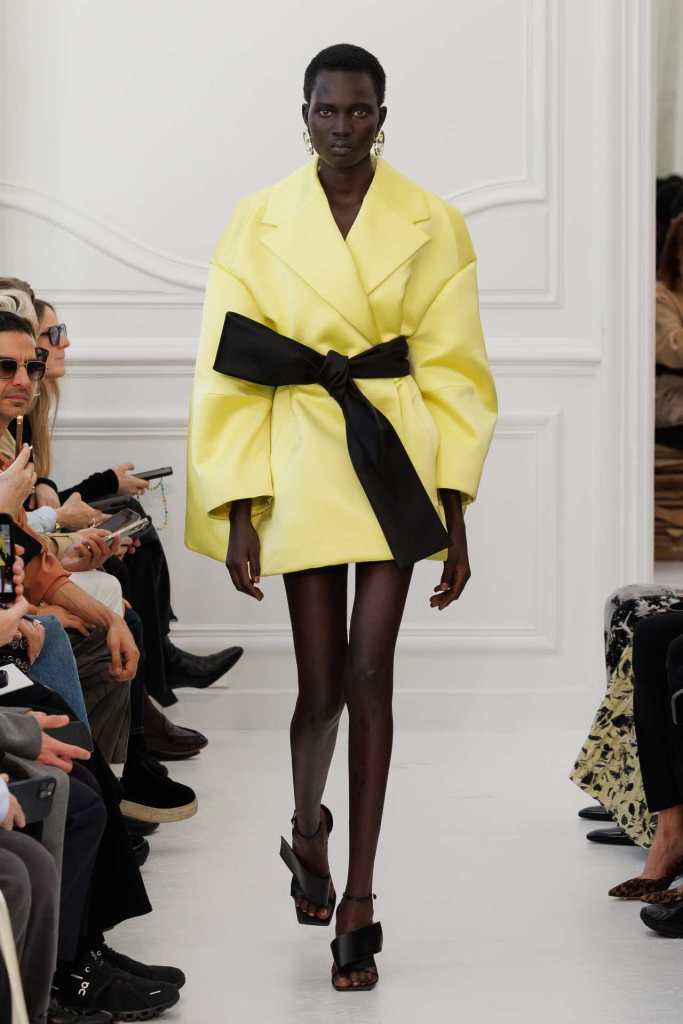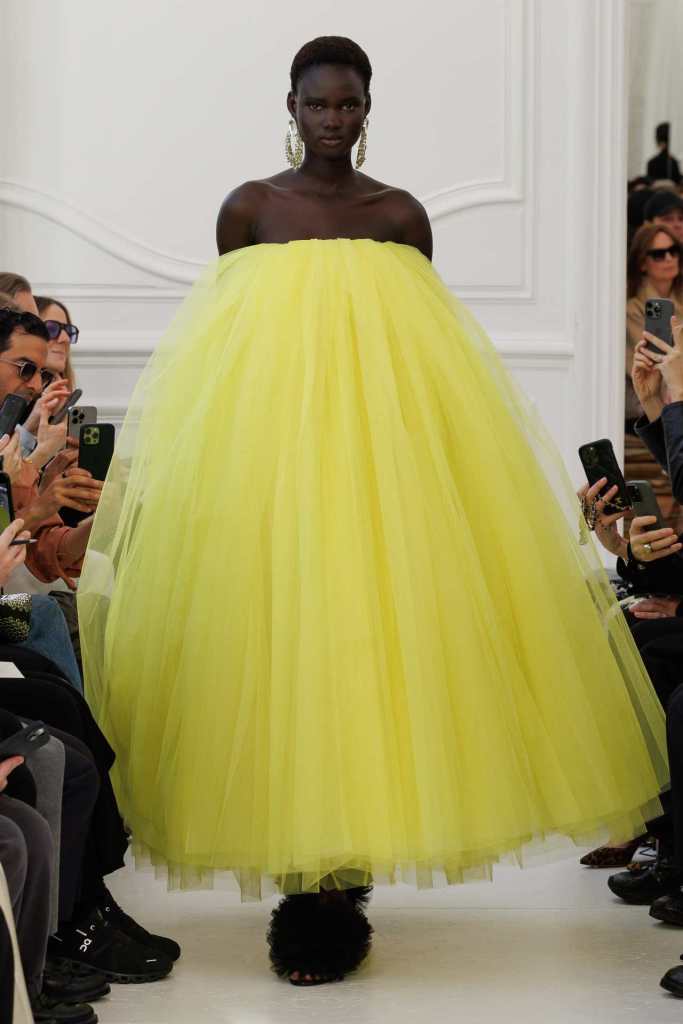 Black dominated, but Burton introduced bursts of lemon yellow and soft floral embroidery to break up the severity. The final look—a stunning tulle gown in a sunshine hue—was a moment of pure joy.