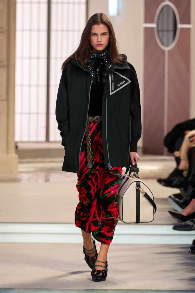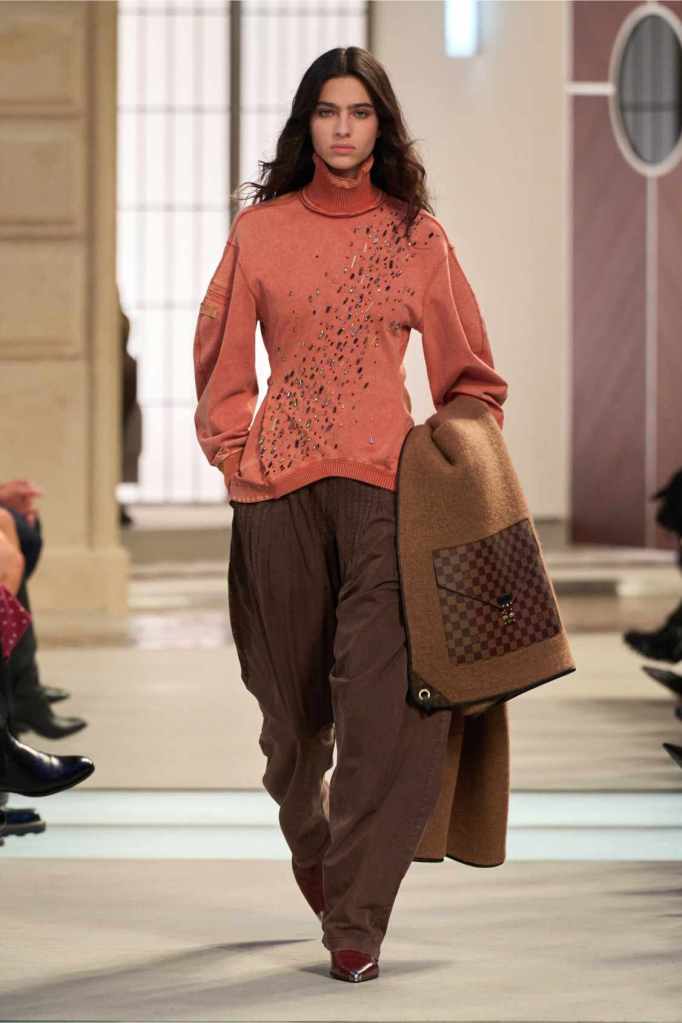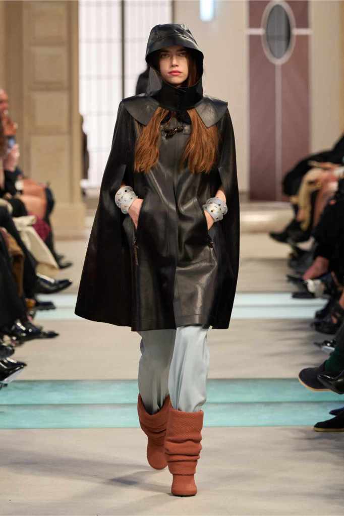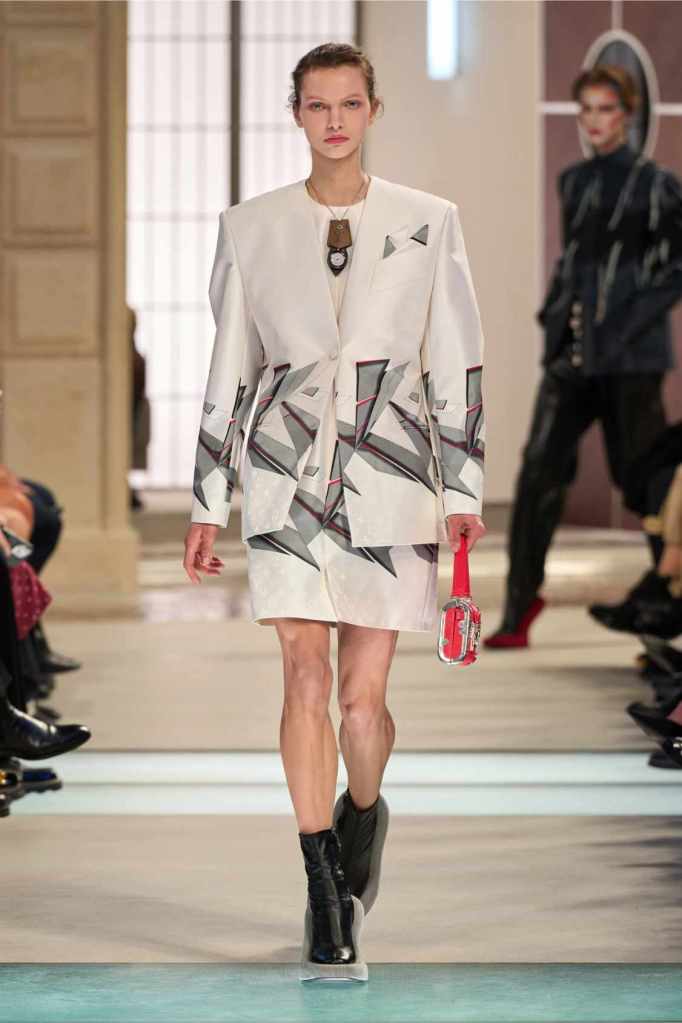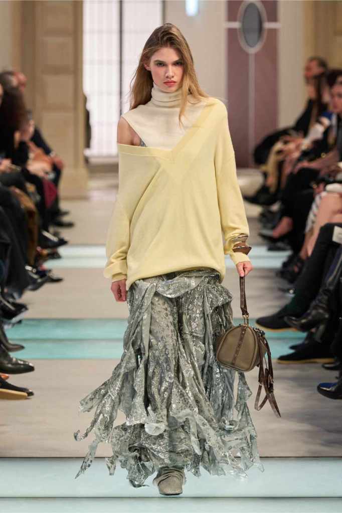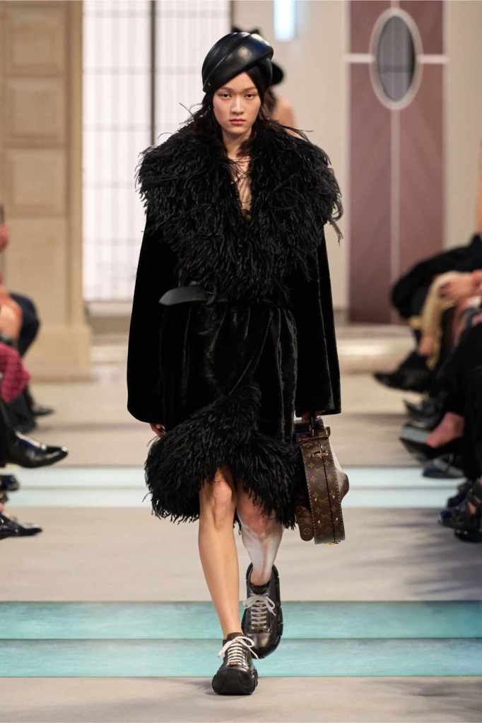 Outerwear took center stage, proving once again that Ghesquière knows how to design a great coat. There were sculptural jackets with defined shoulders, some structured and rigid, others relaxed with cinched waists. A standout brocade coat mixed historical opulence with modern precision, while high-shine metallic trenches added a futuristic edge.