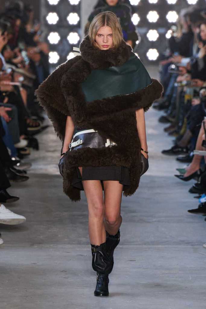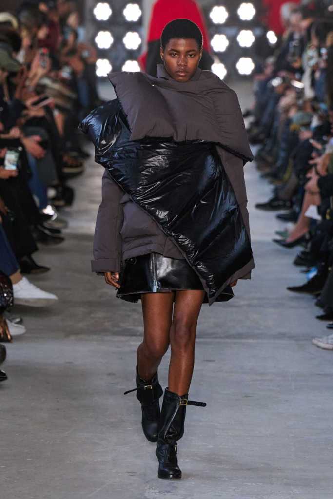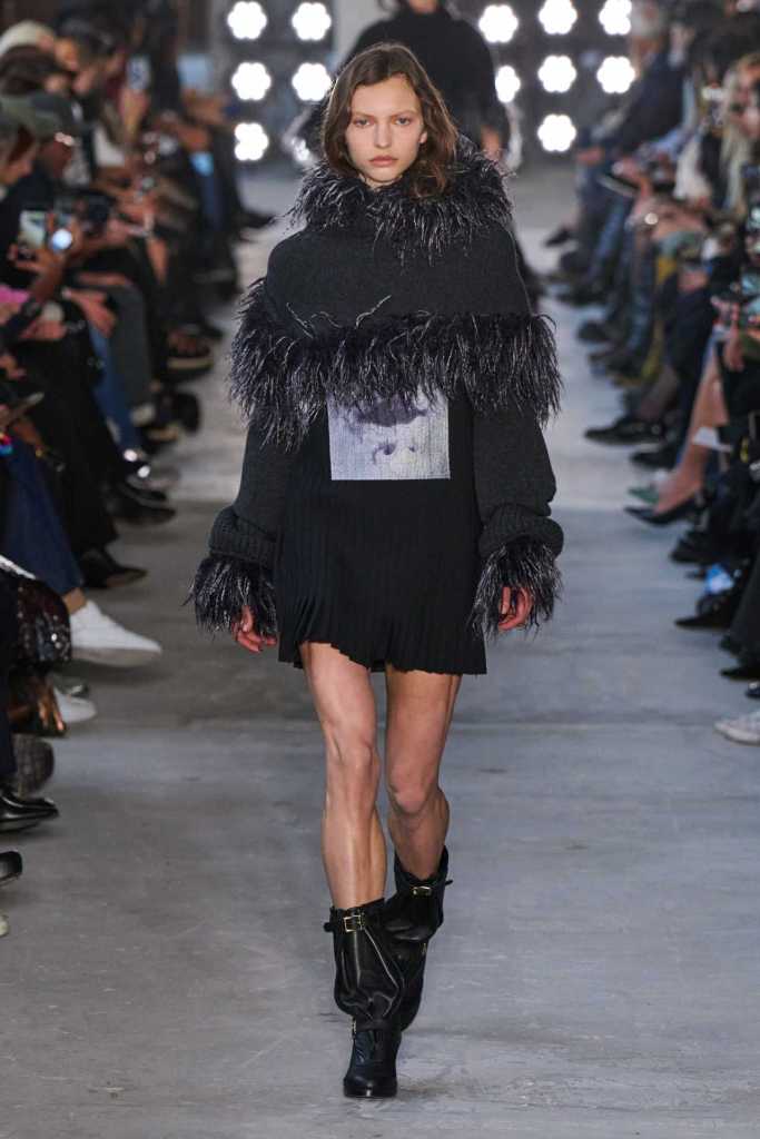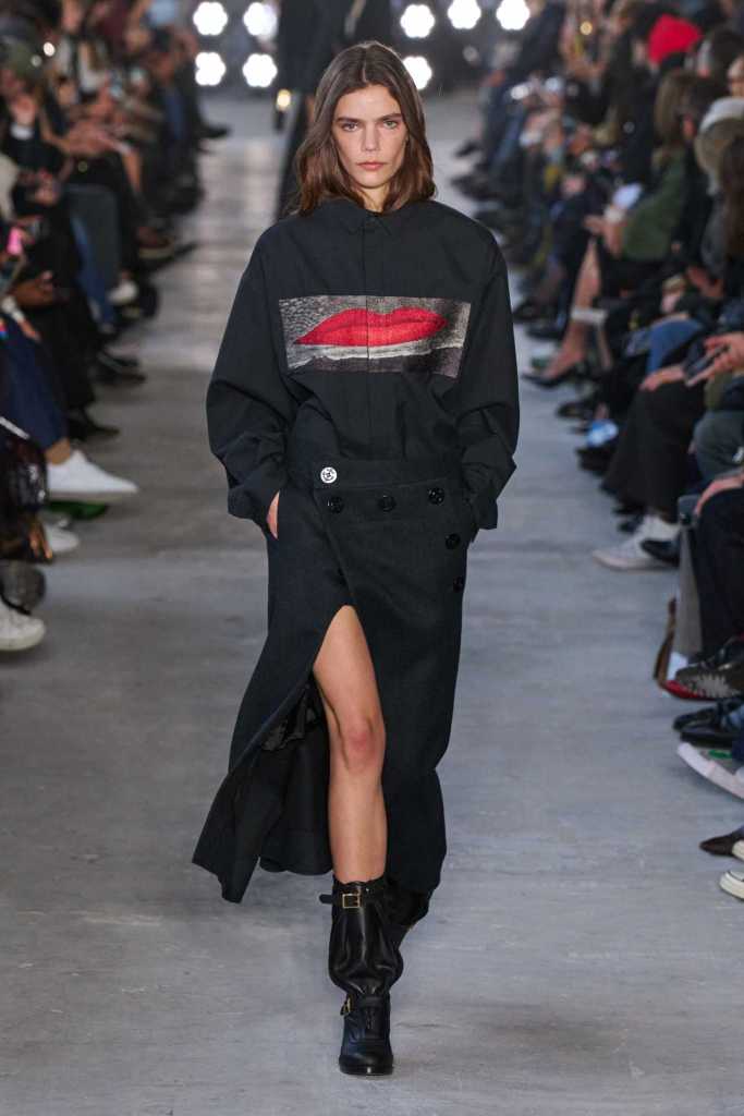 Embellishments added an unexpected touch — sequins along the legs of cargo pants, faux feathers flocked around anoraks, and faux shearling trimmed cocooning dresses and flat shoes. The real standout, however, was the tribute to Man Ray’s iconic photographs. His sensual imagery was transposed onto fur minidresses, button-down shirts, and T-shirts, giving the collection a deeply artistic narrative.